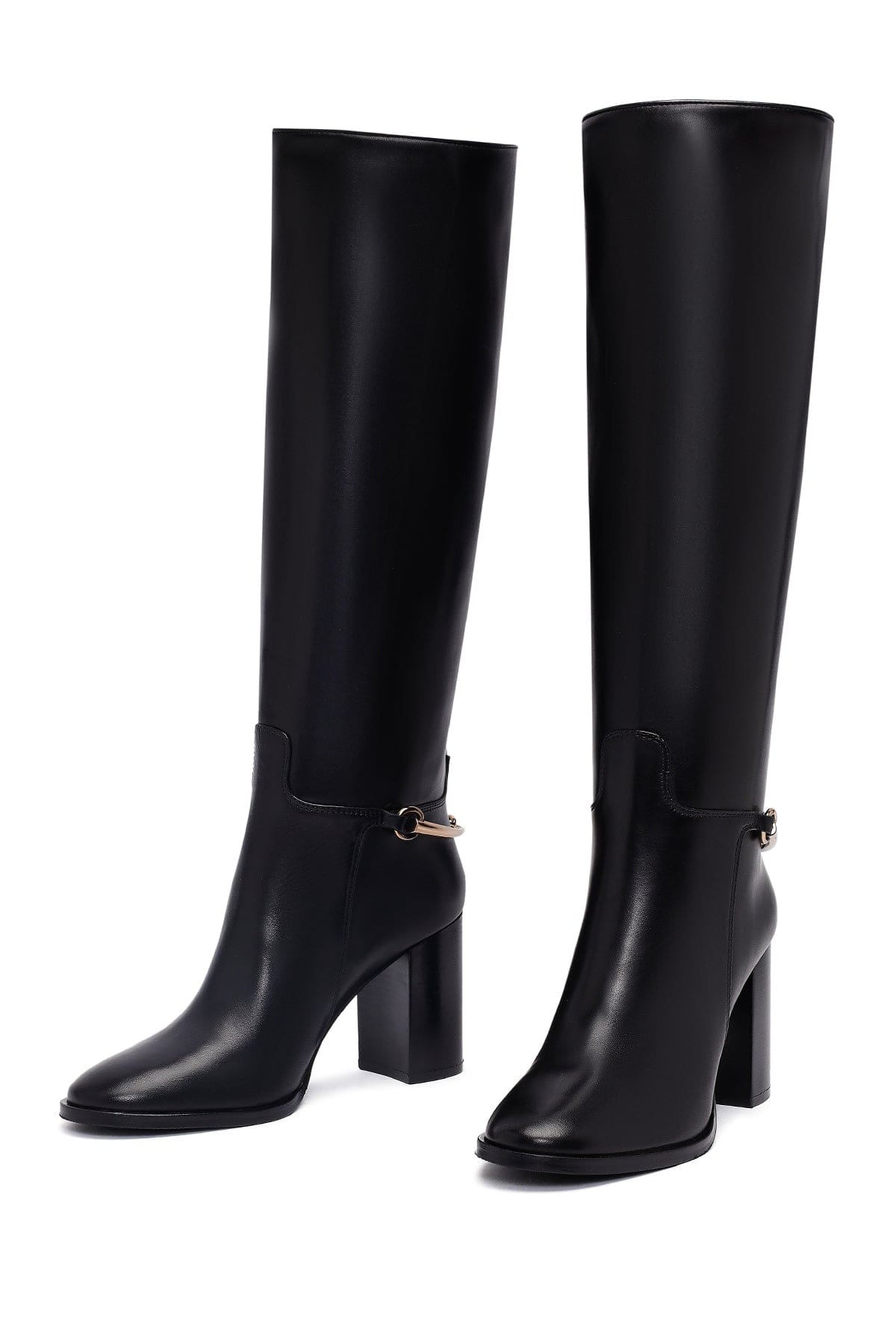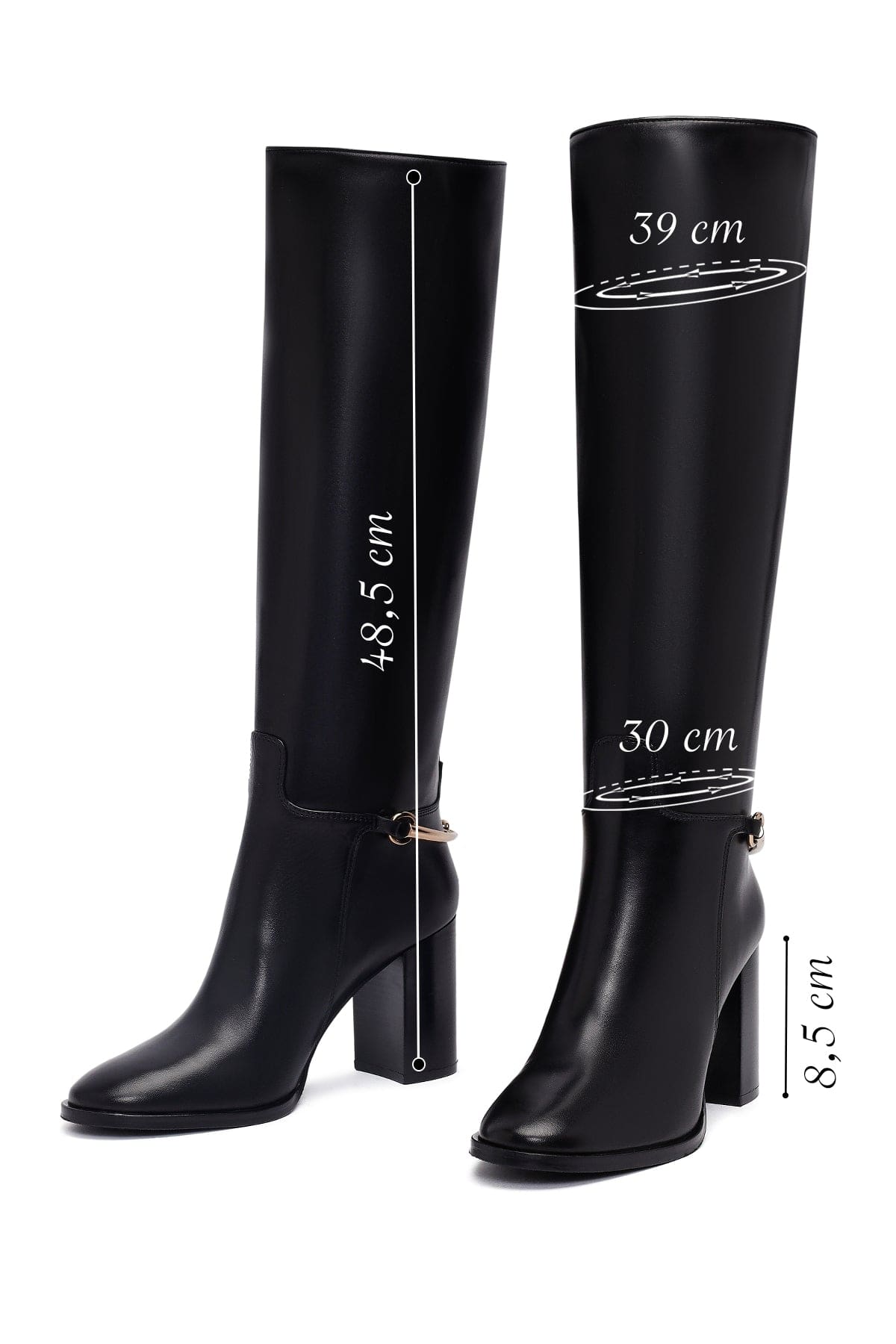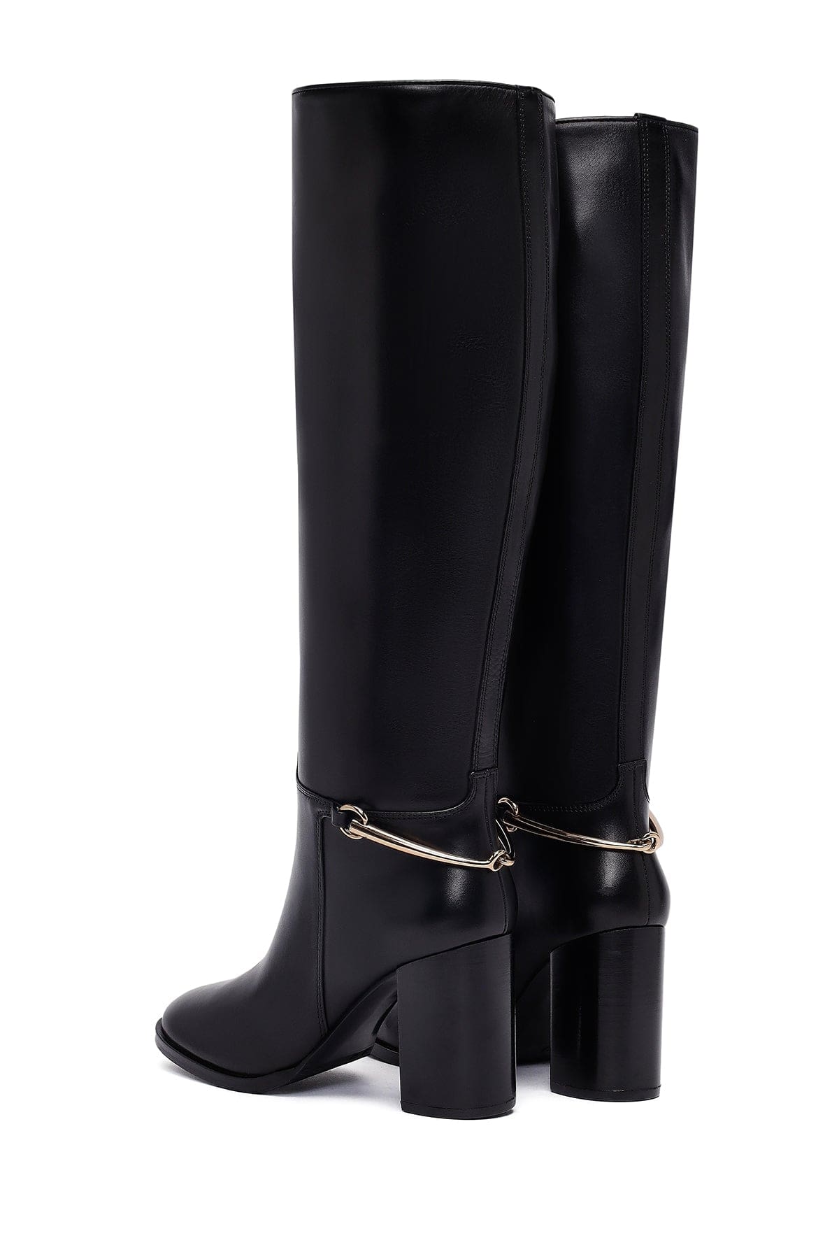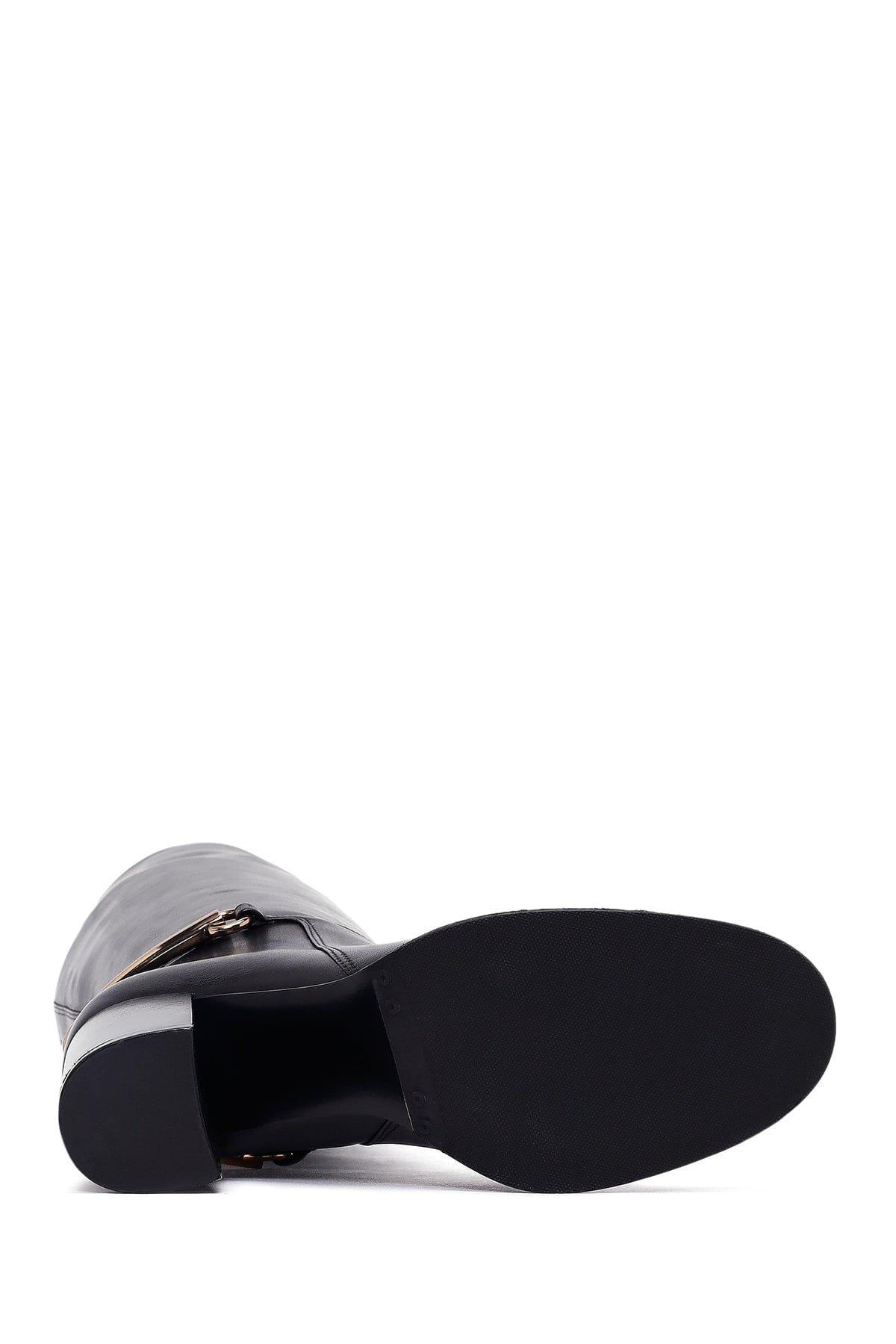Kadın Siyah Kalın Topuklu Deri Çizme