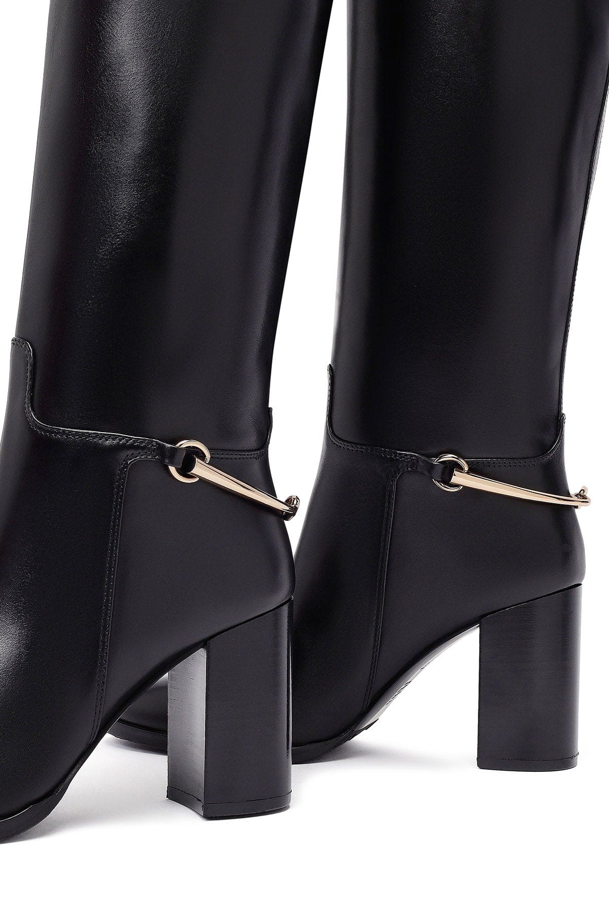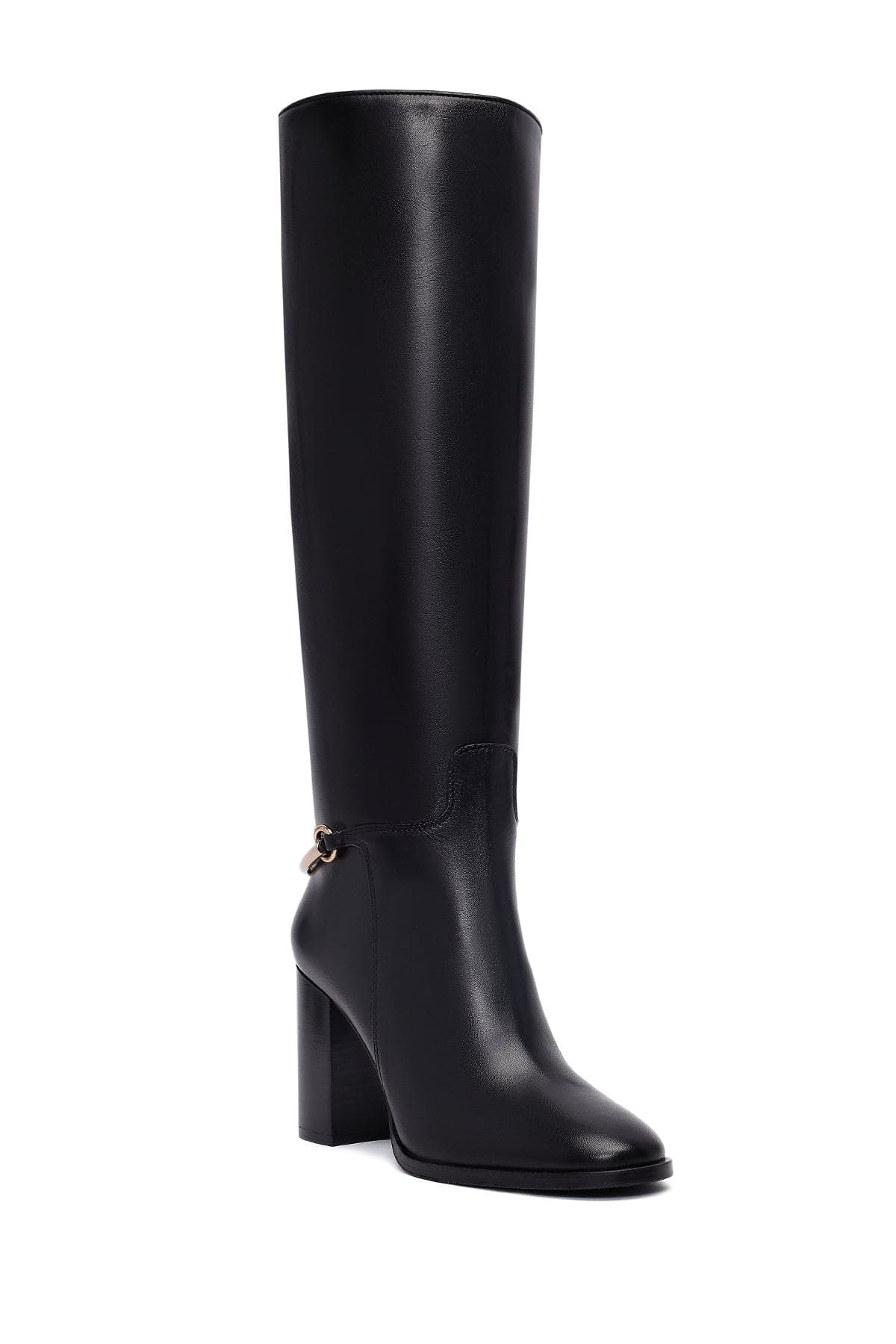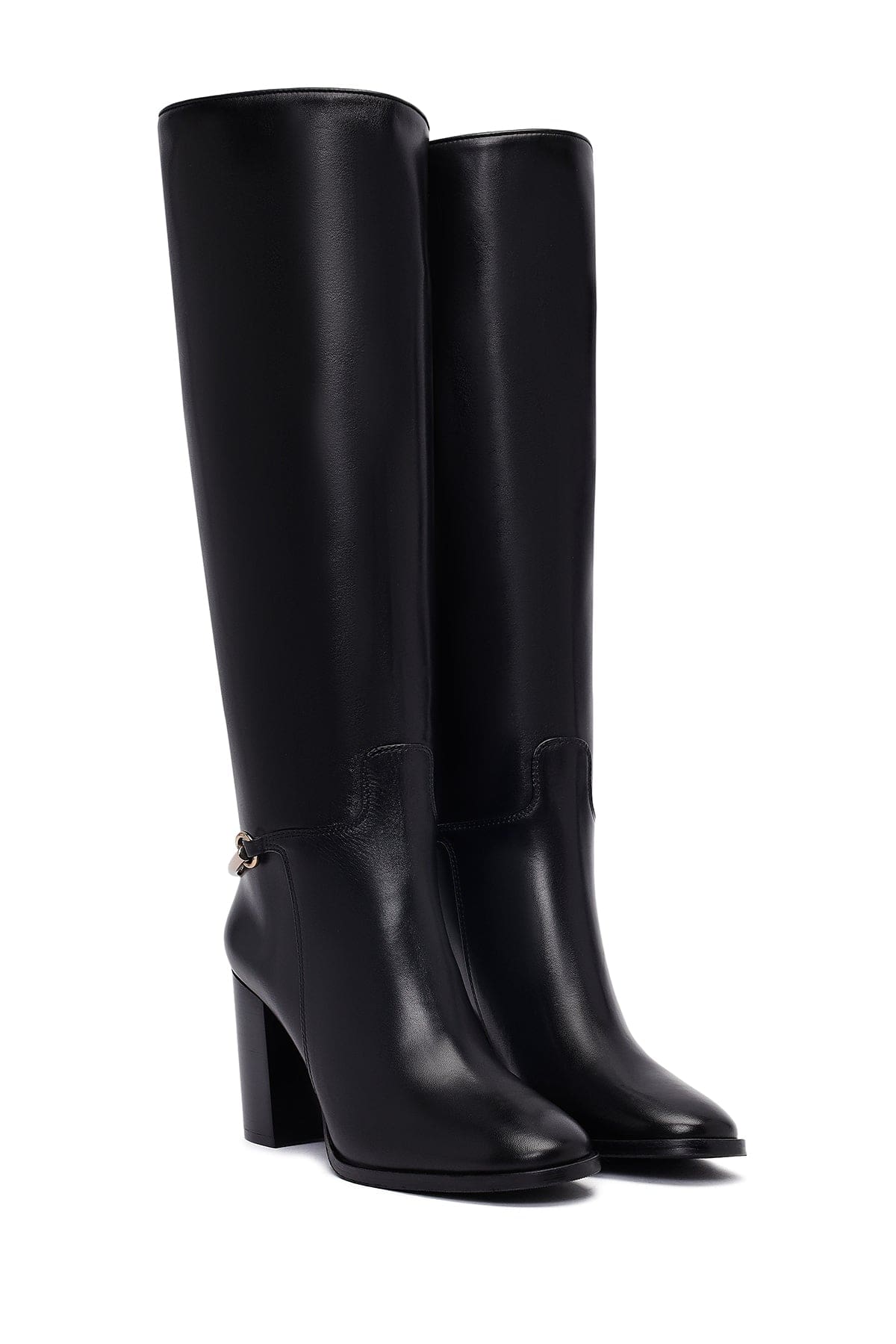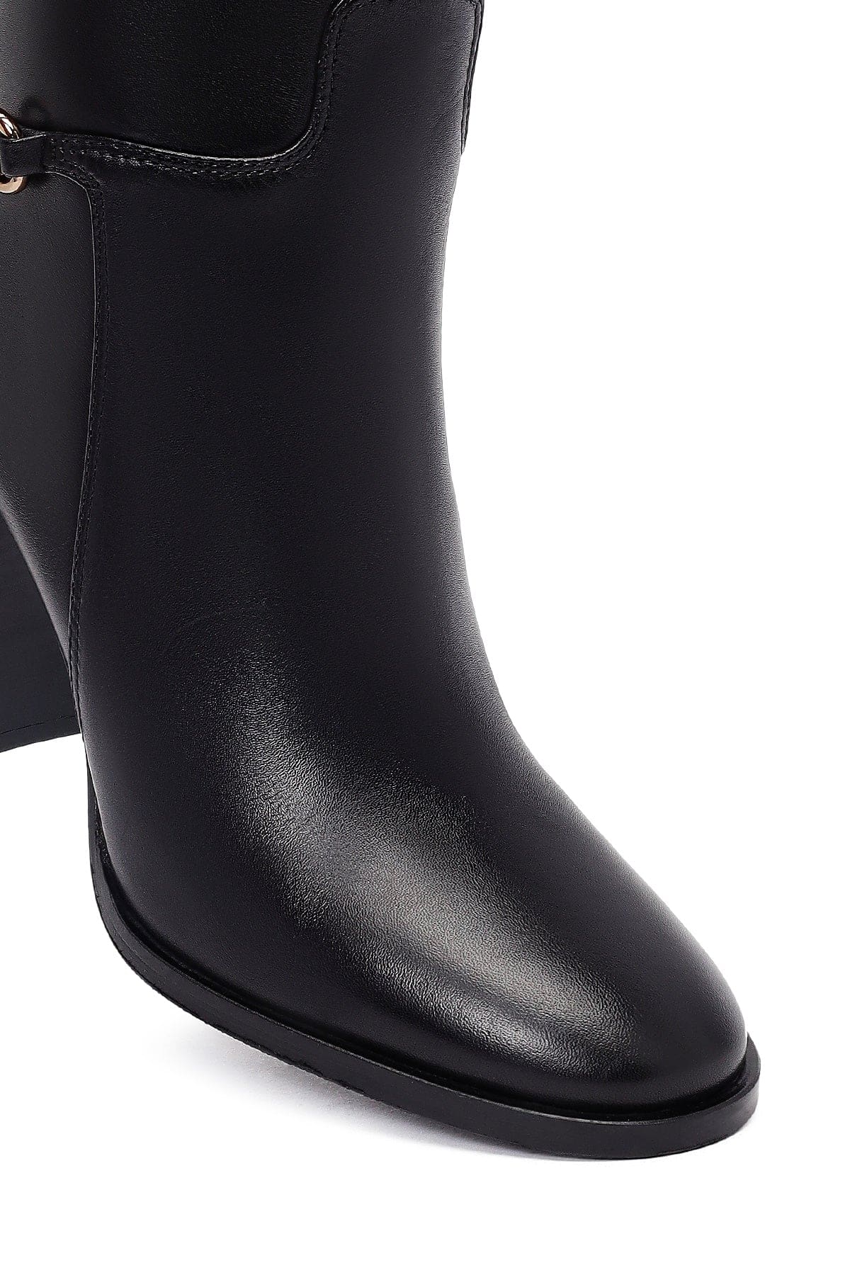 Kadın Siyah Kalın Topuklu Deri Çizme