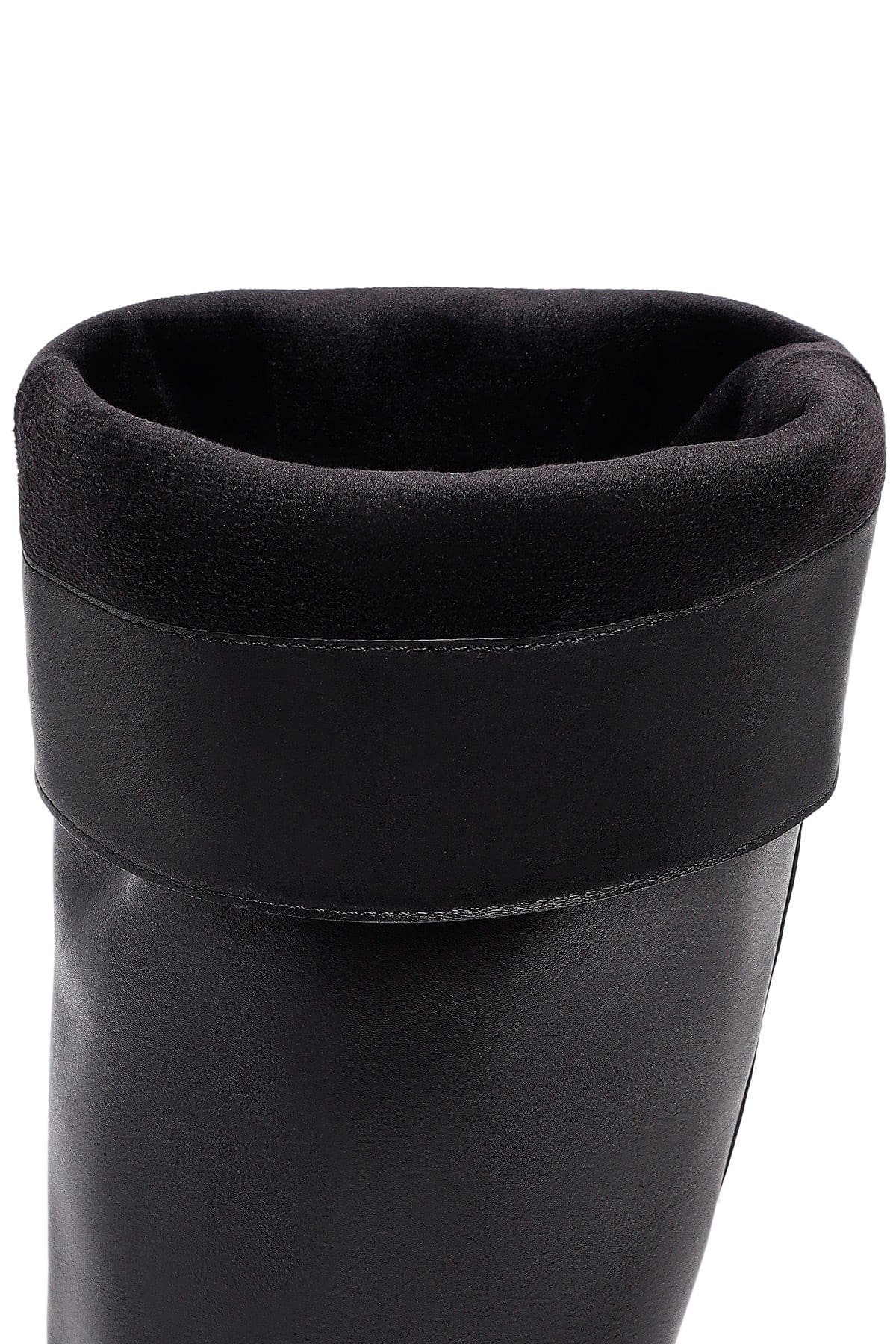 چکمه زنانه مشکی چرمی پاشنه ضخیم دری مد