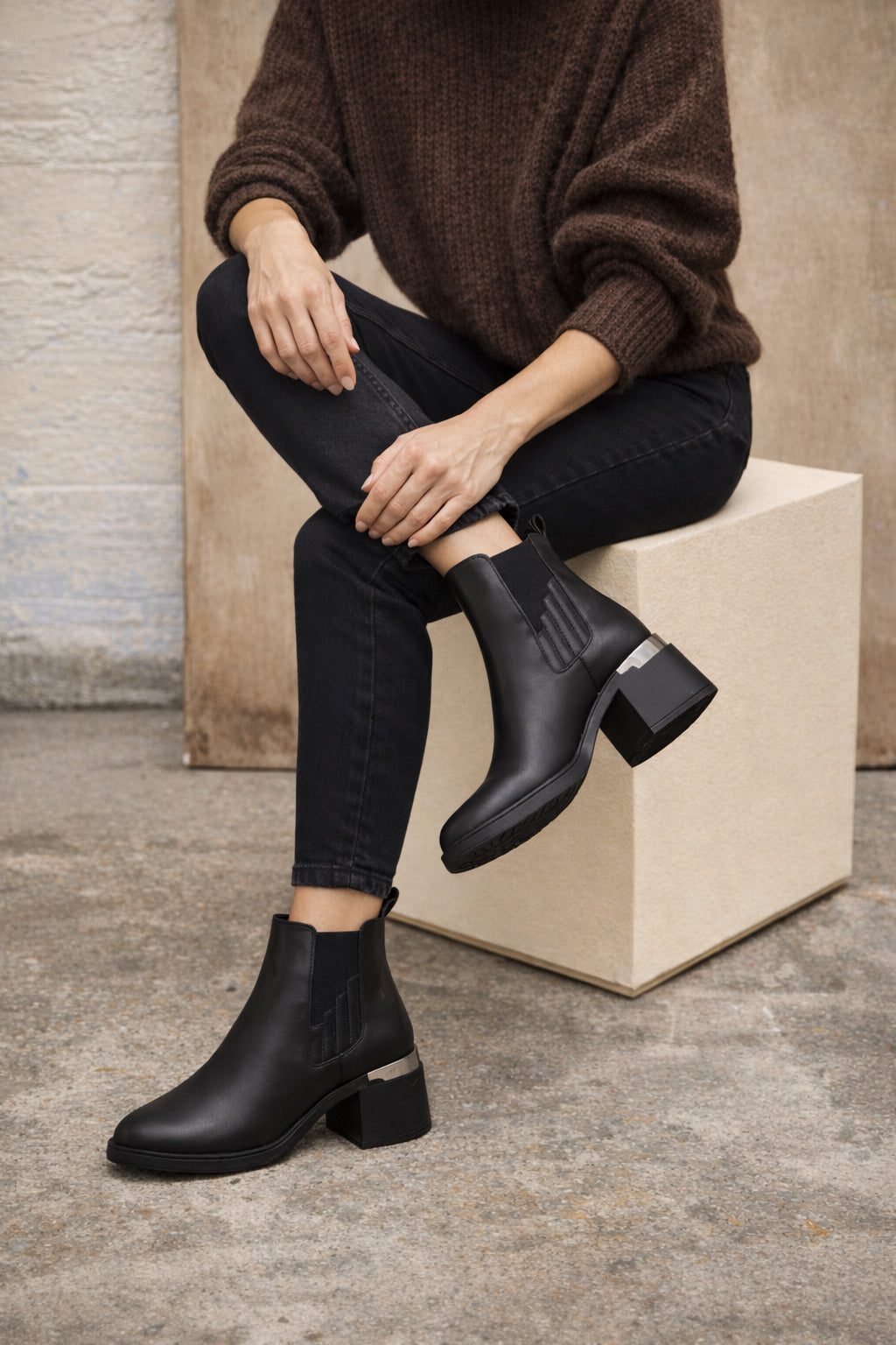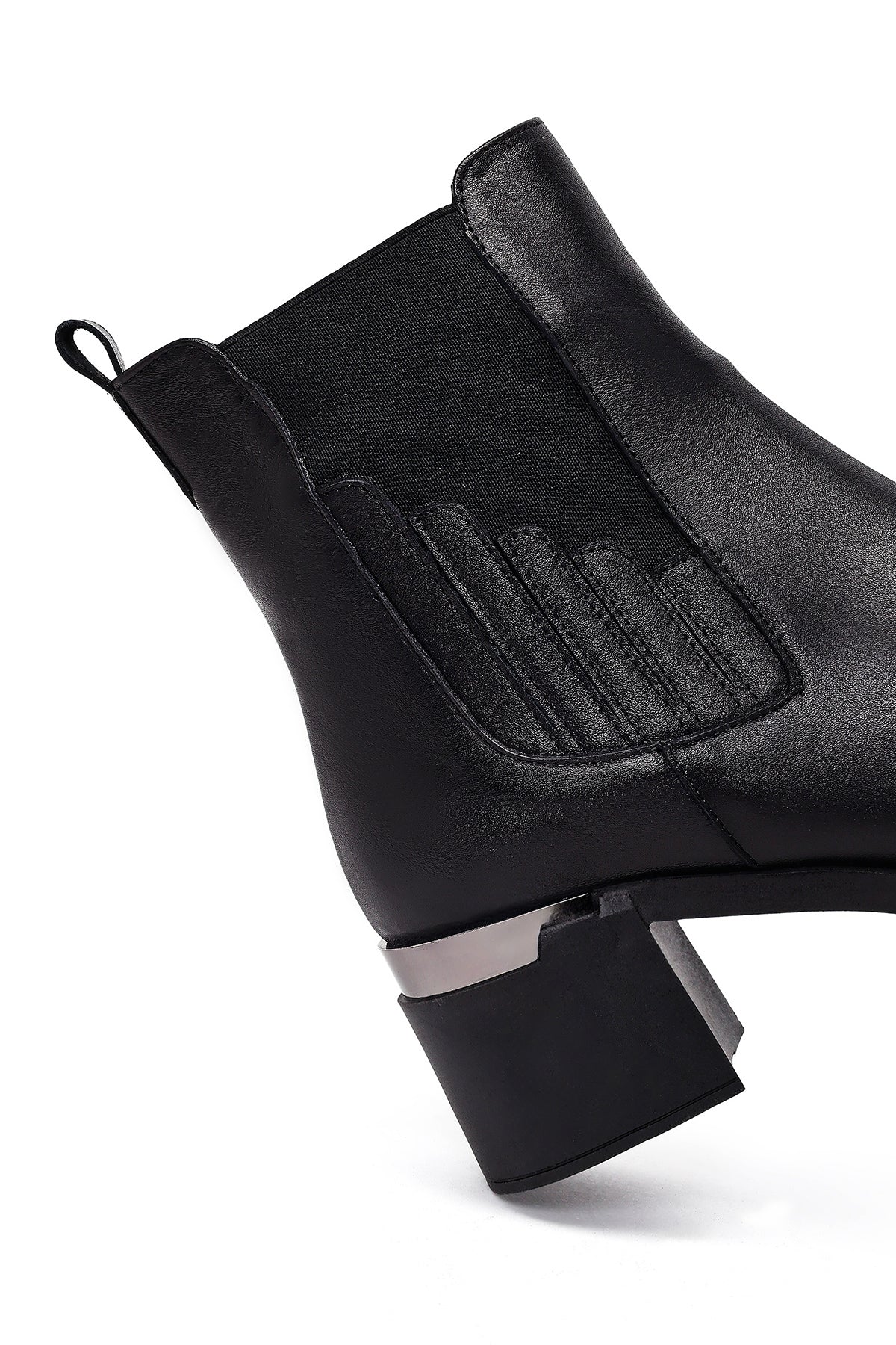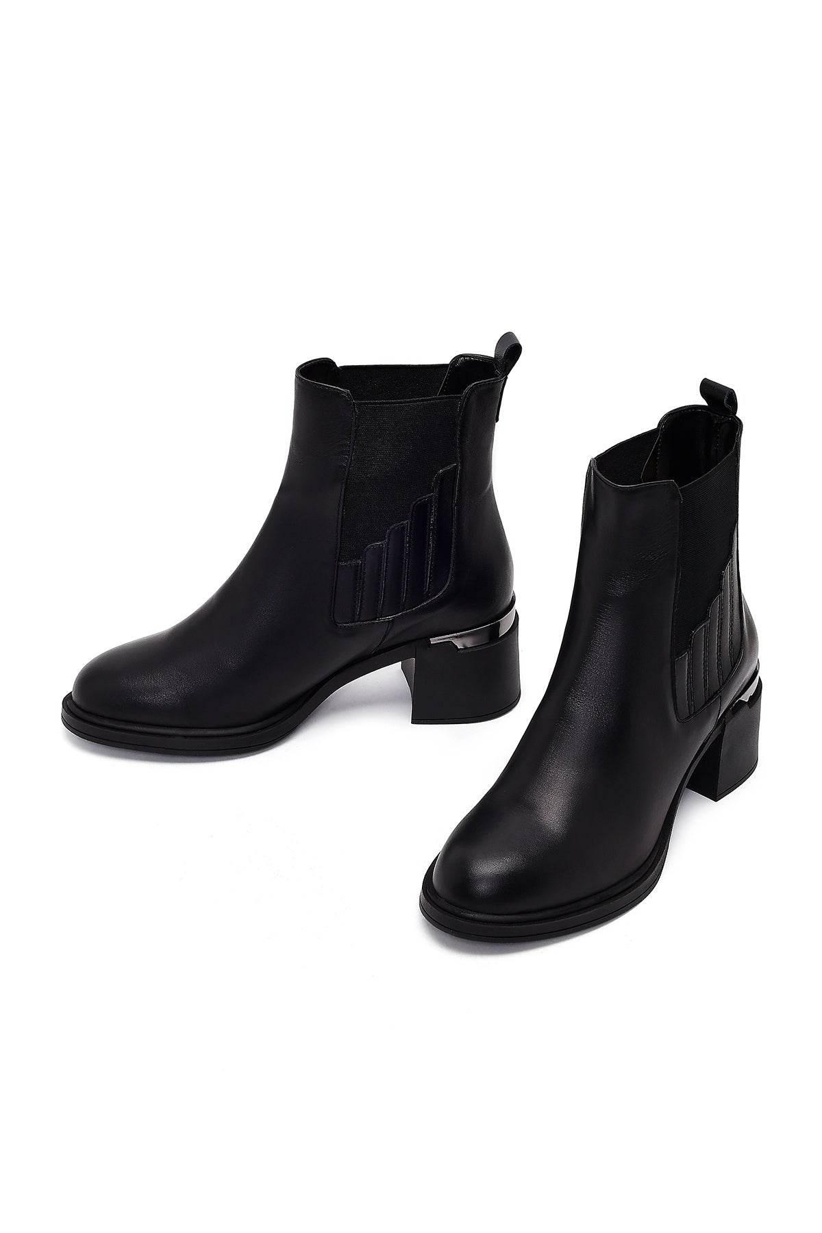 بوت زنانه چرم مشکی چلسی پاشنهبلند ضخیم دری مد