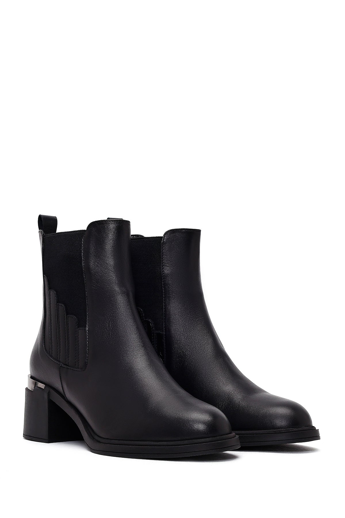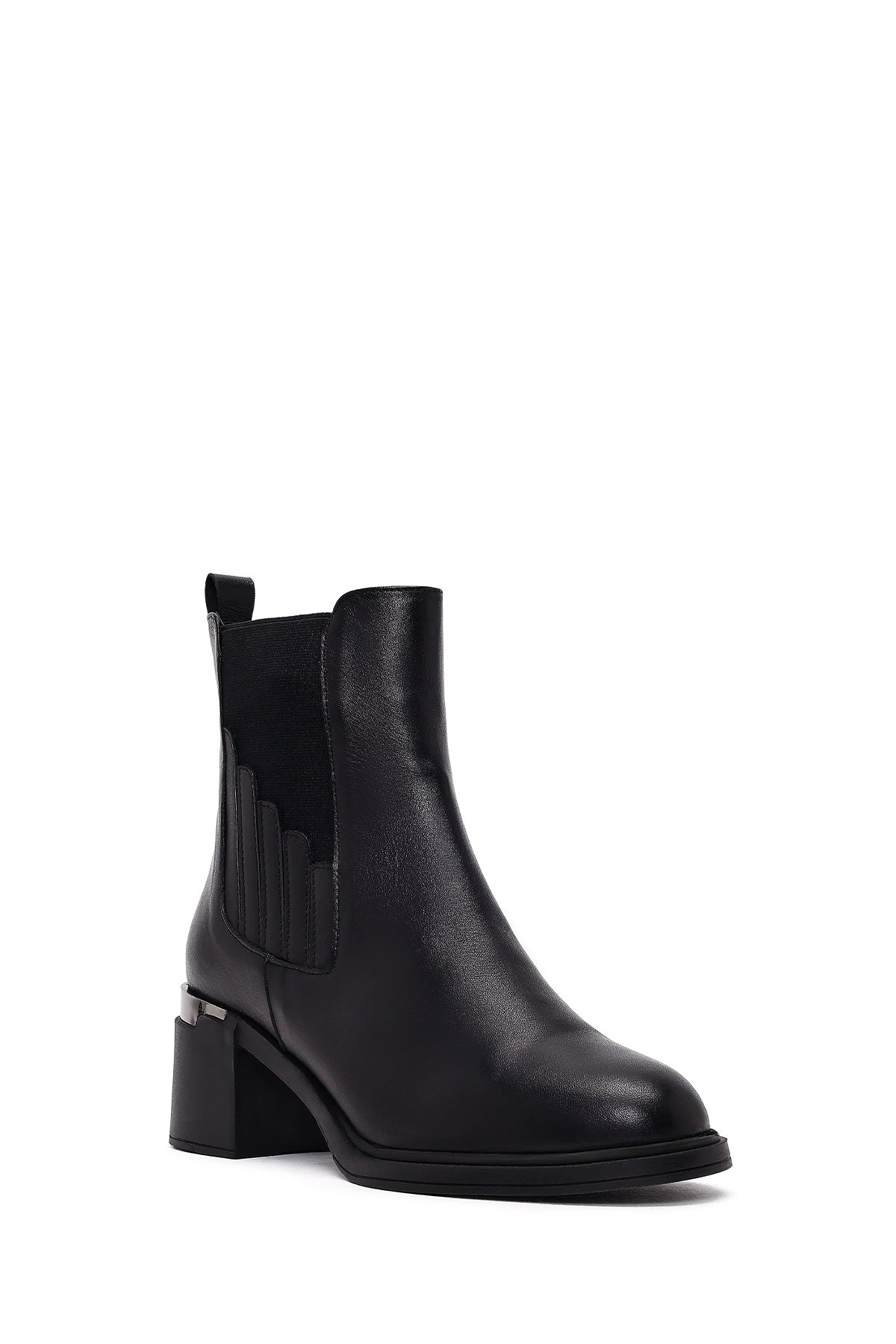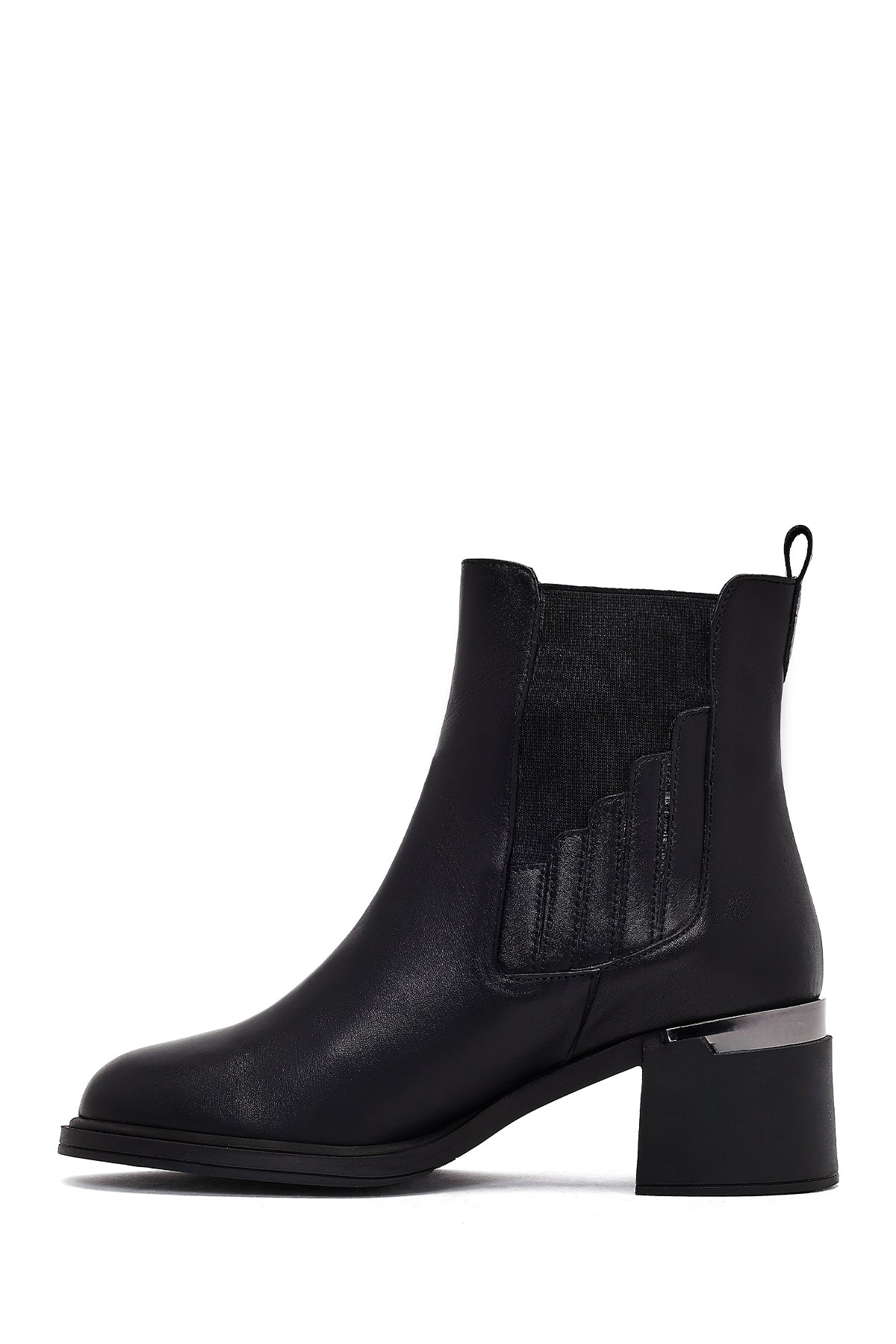 Kadın Siyah Kalın Topuklu Deri Chelsea Bot