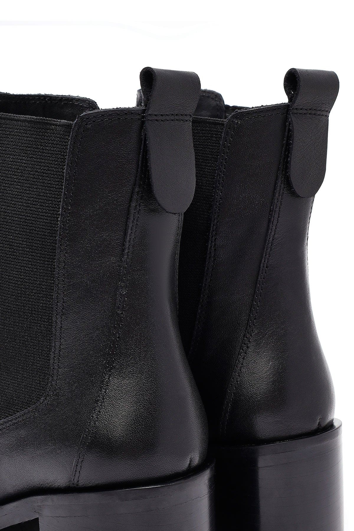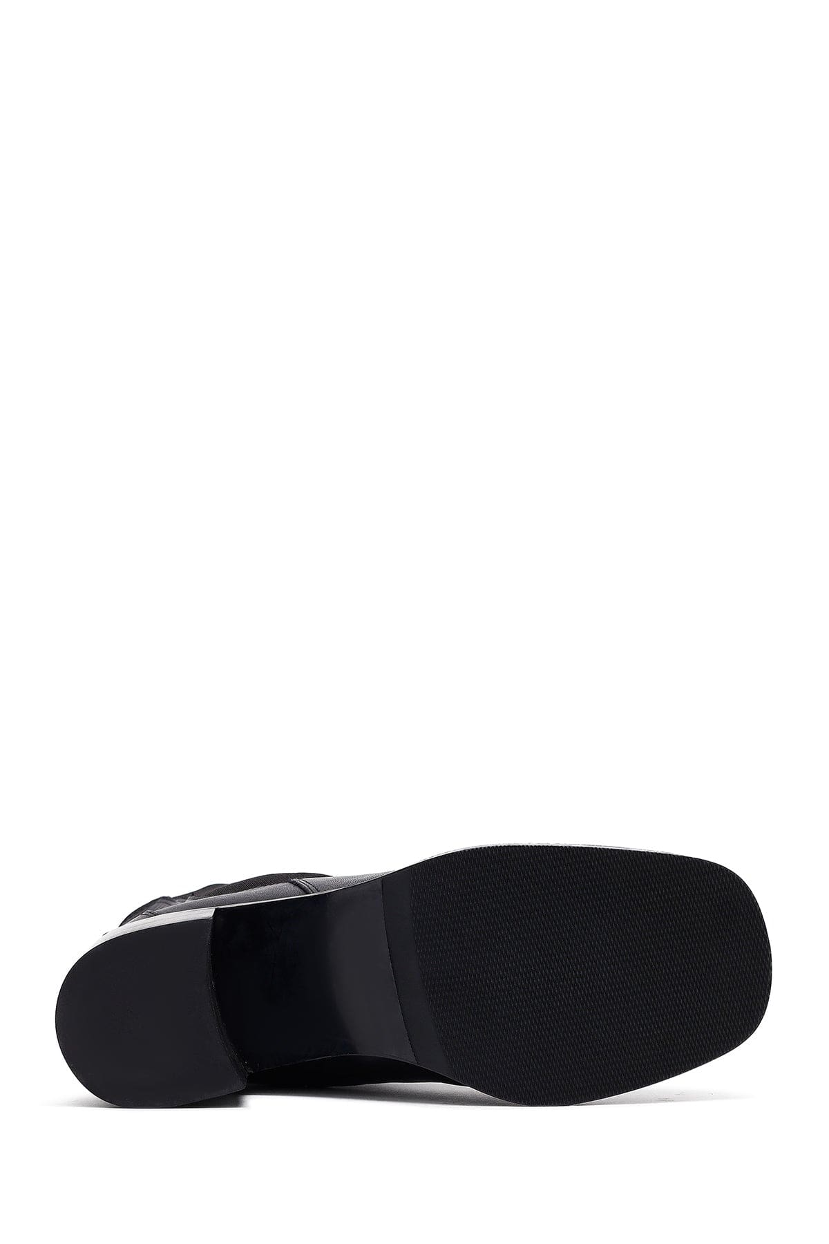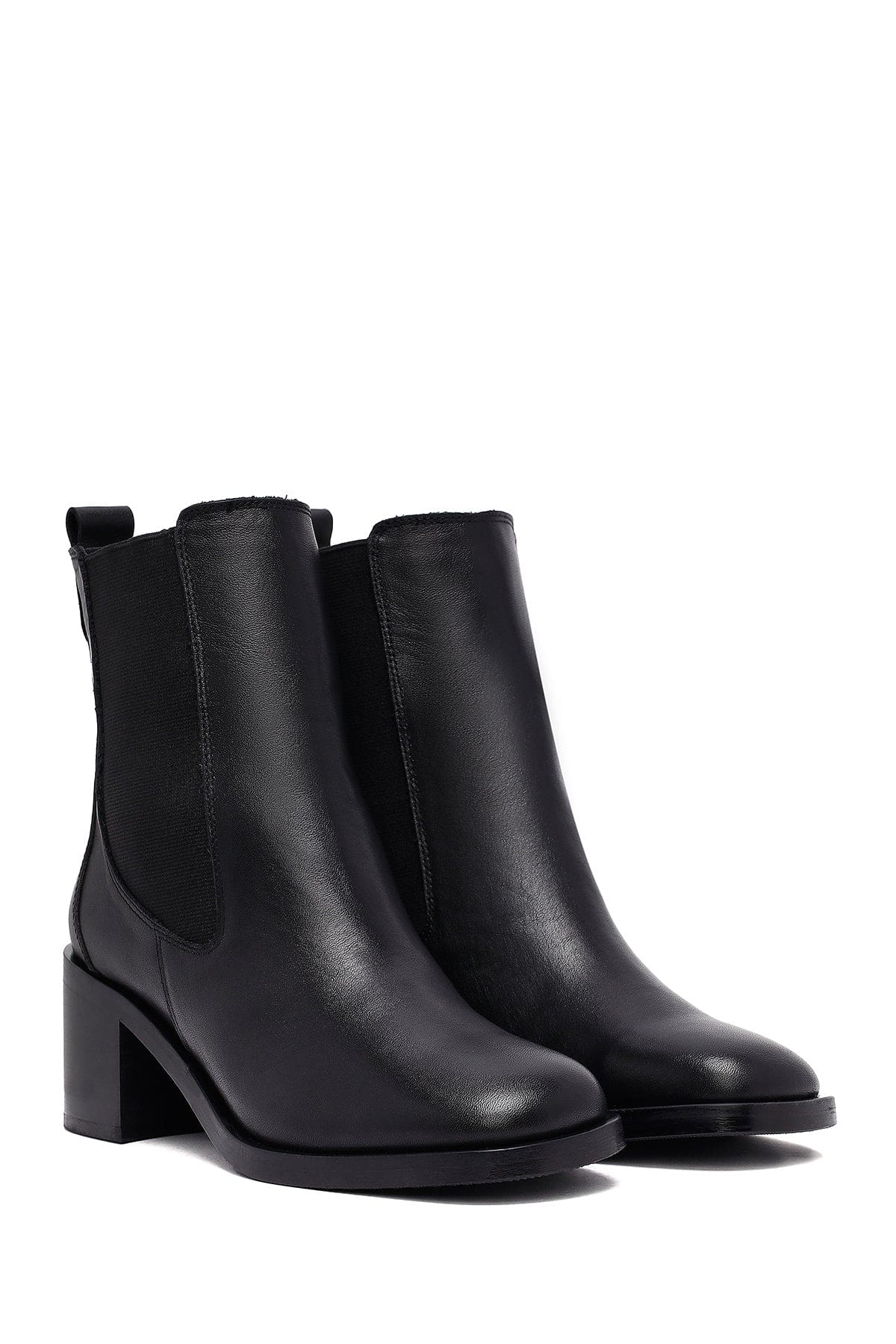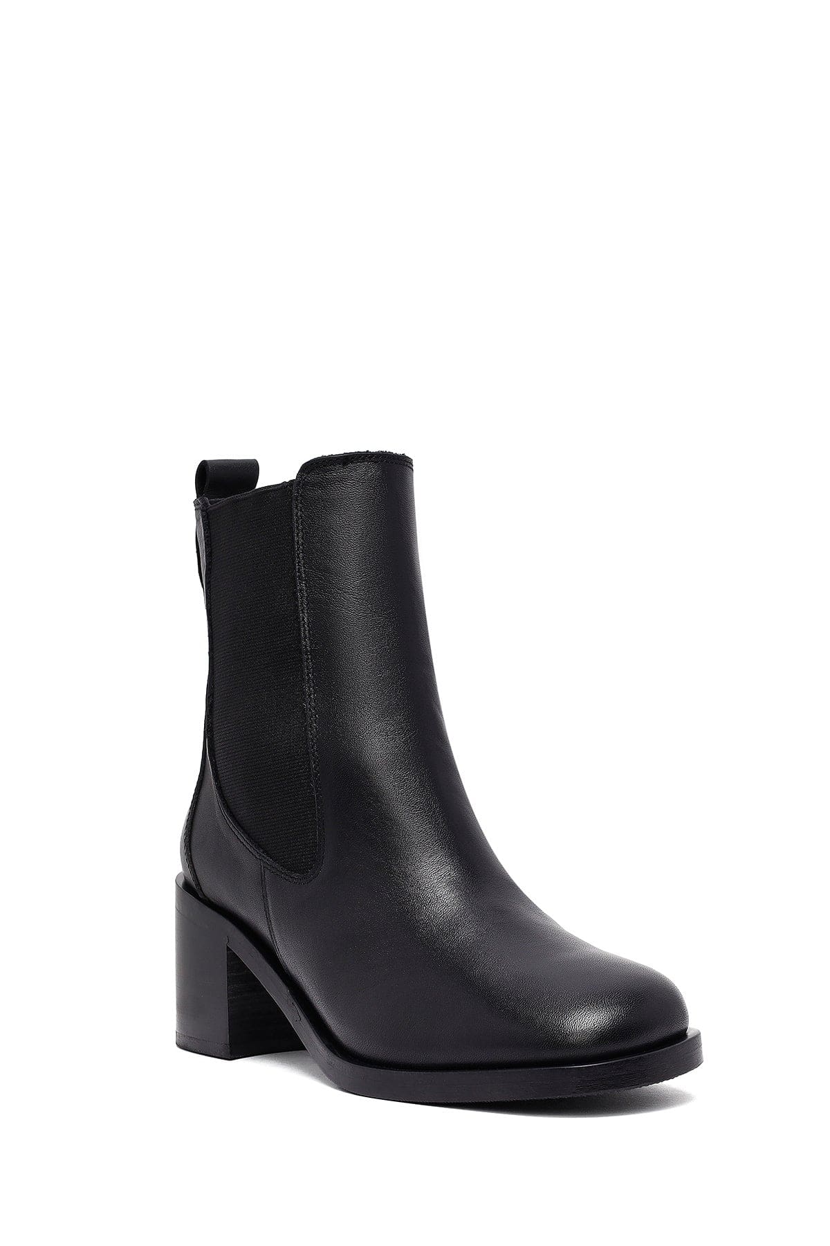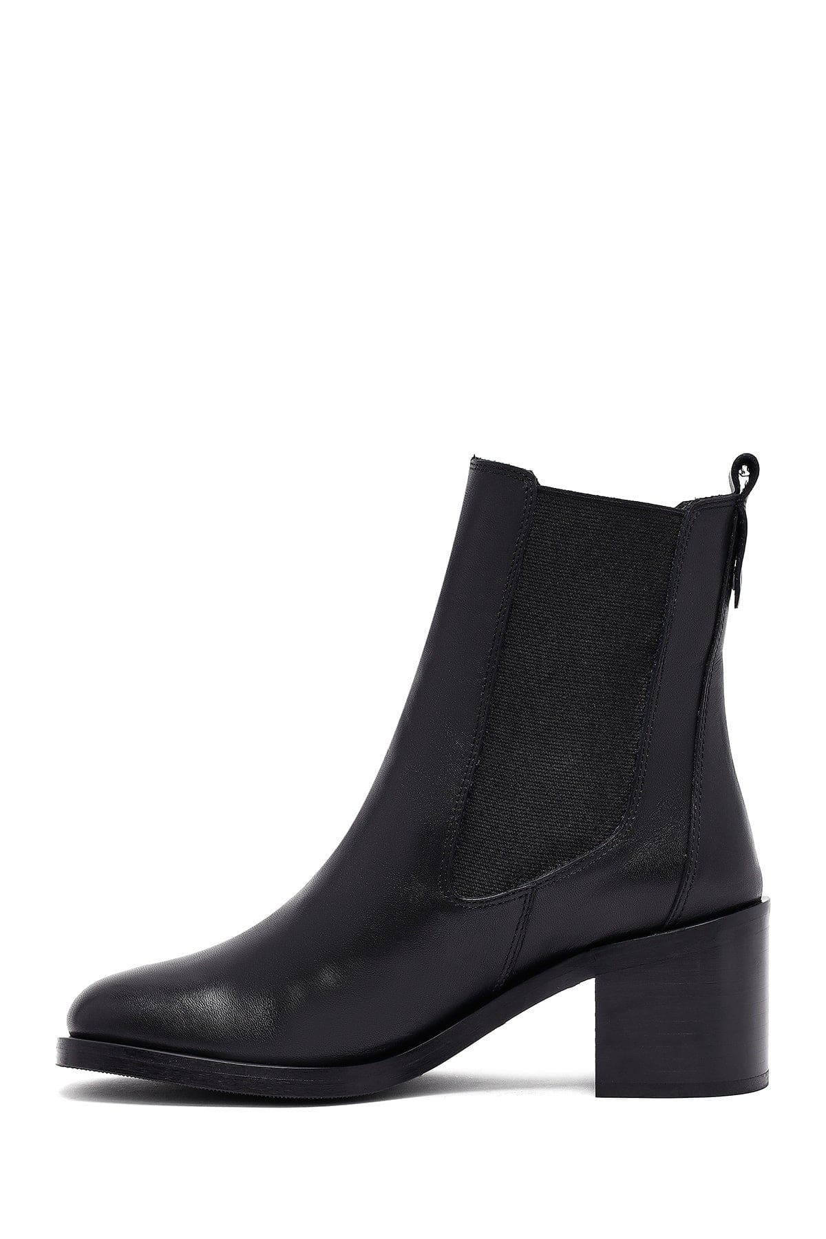 Kadın Siyah Kalın Topuklu Deri Chelsea Bot
