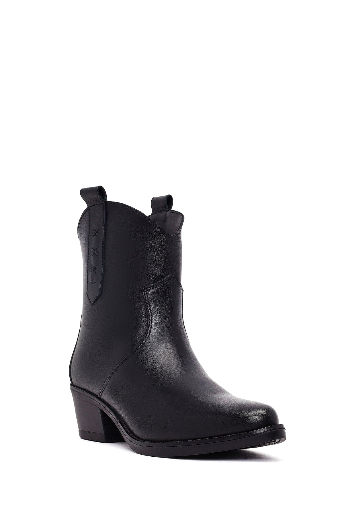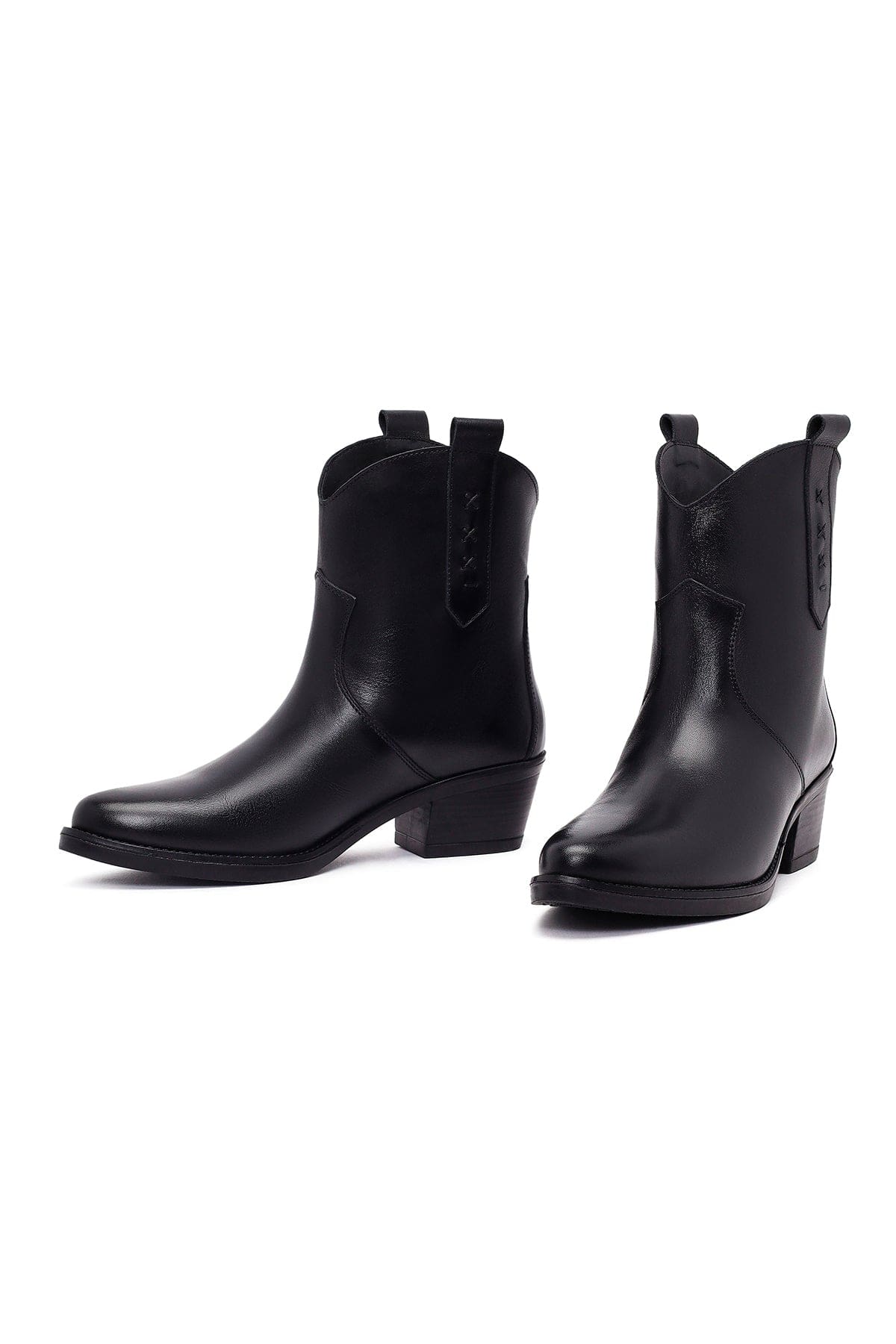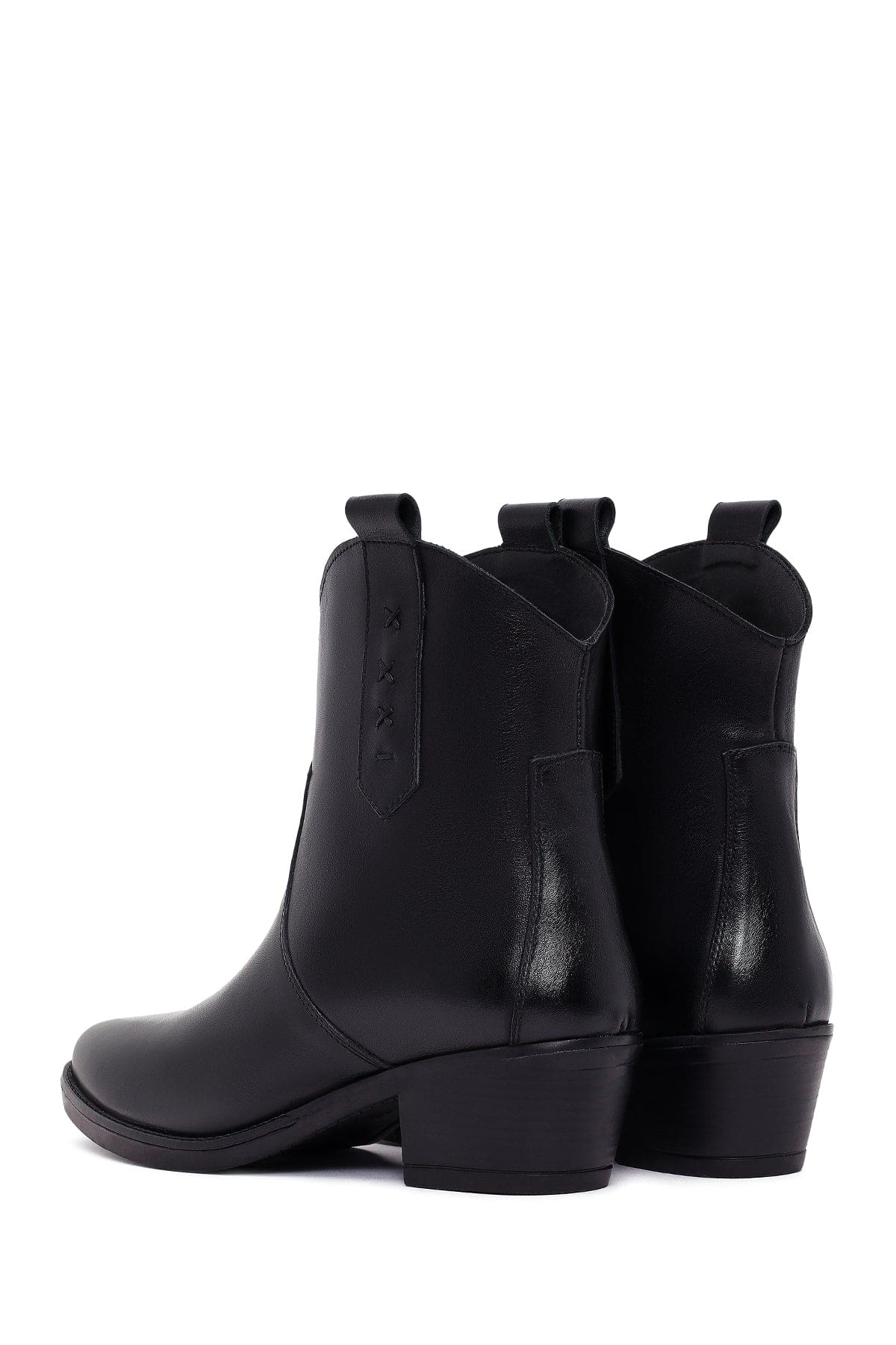 Kadın Siyah Kalın Topuklu Deri Kovboy Bot