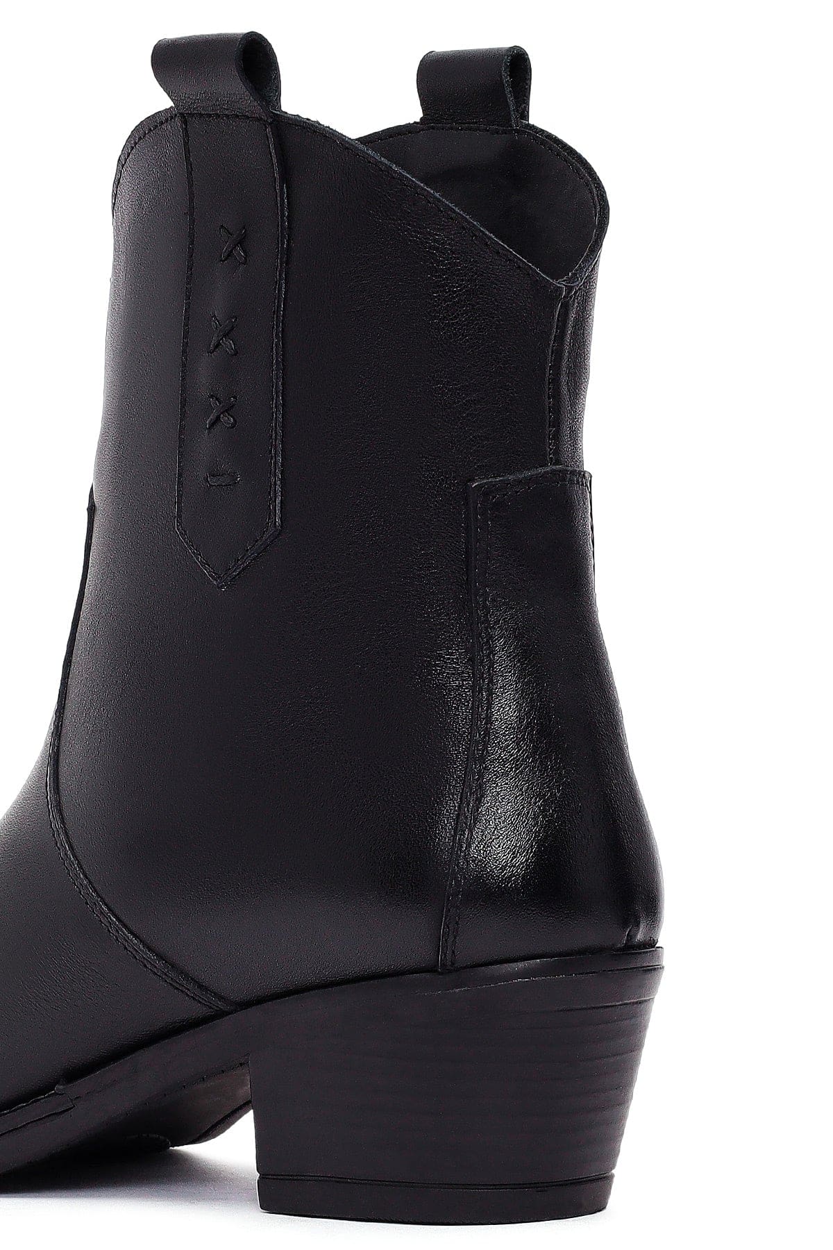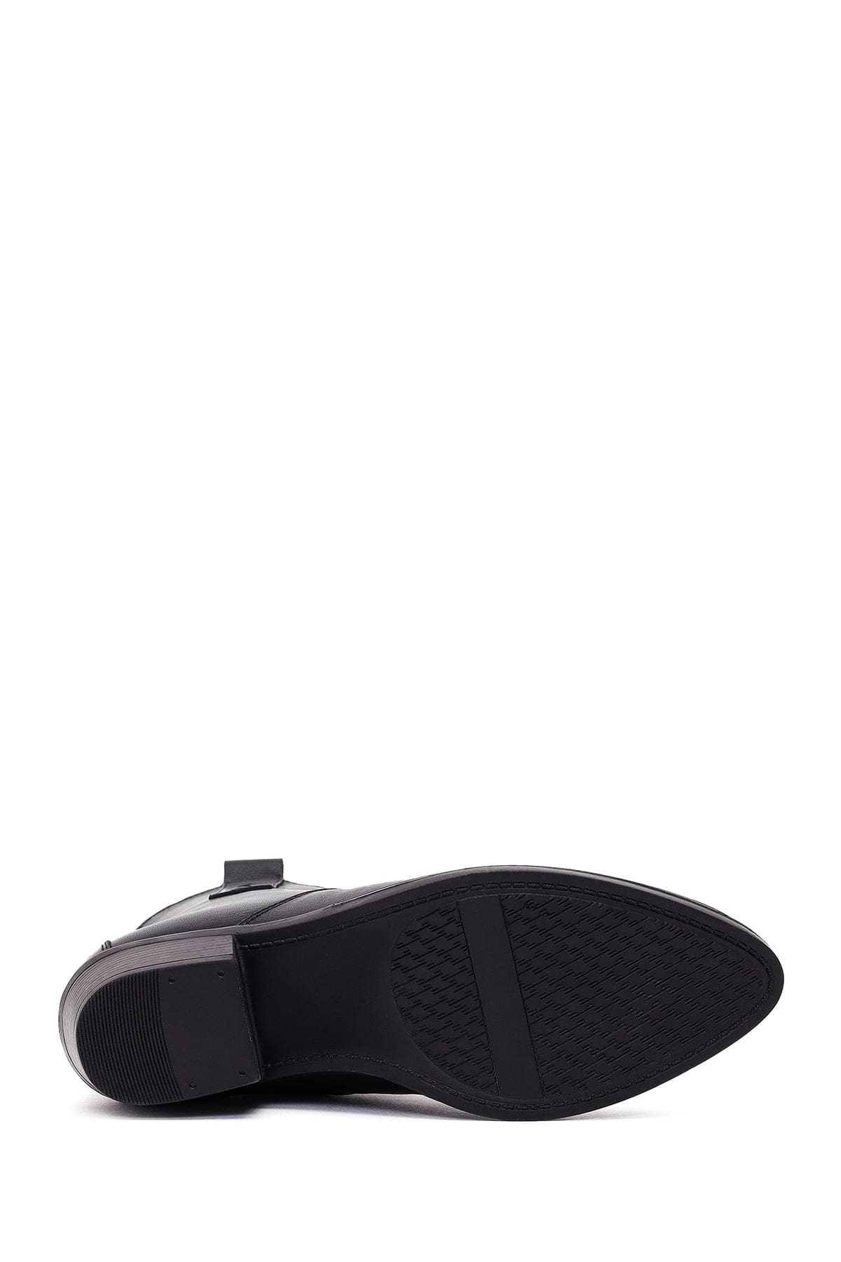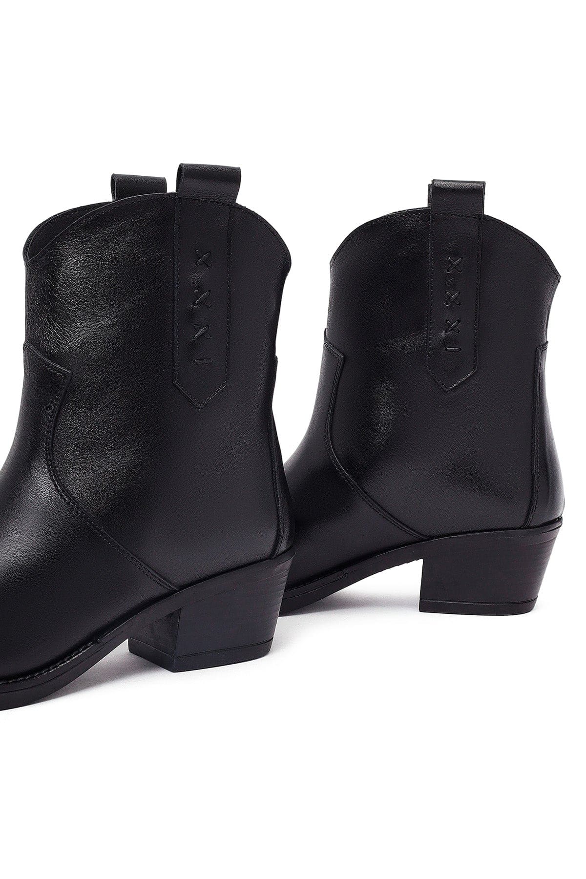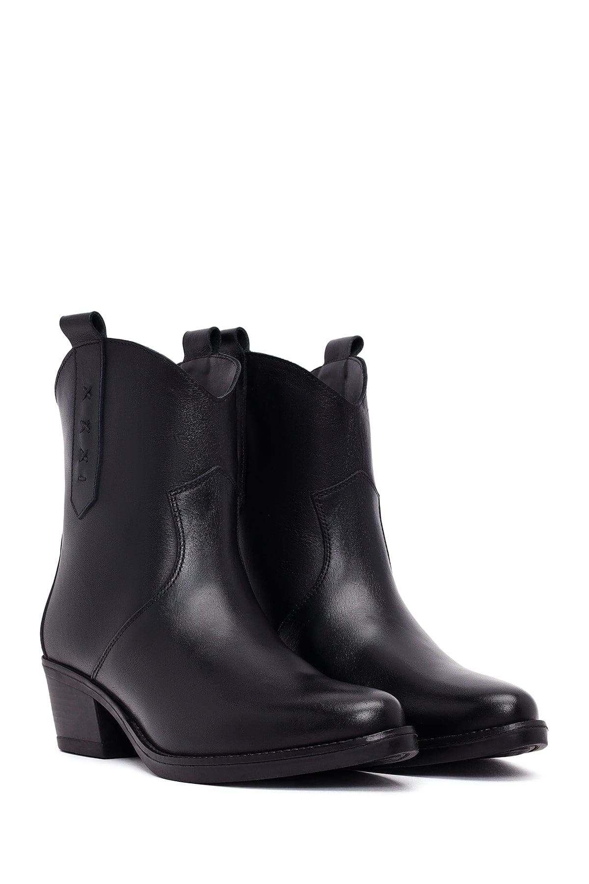Kadın Siyah Kalın Topuklu Deri Kovboy Bot