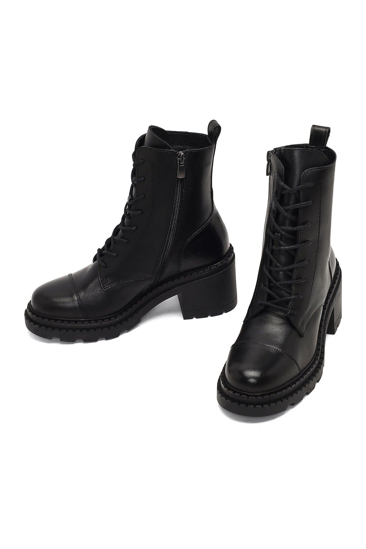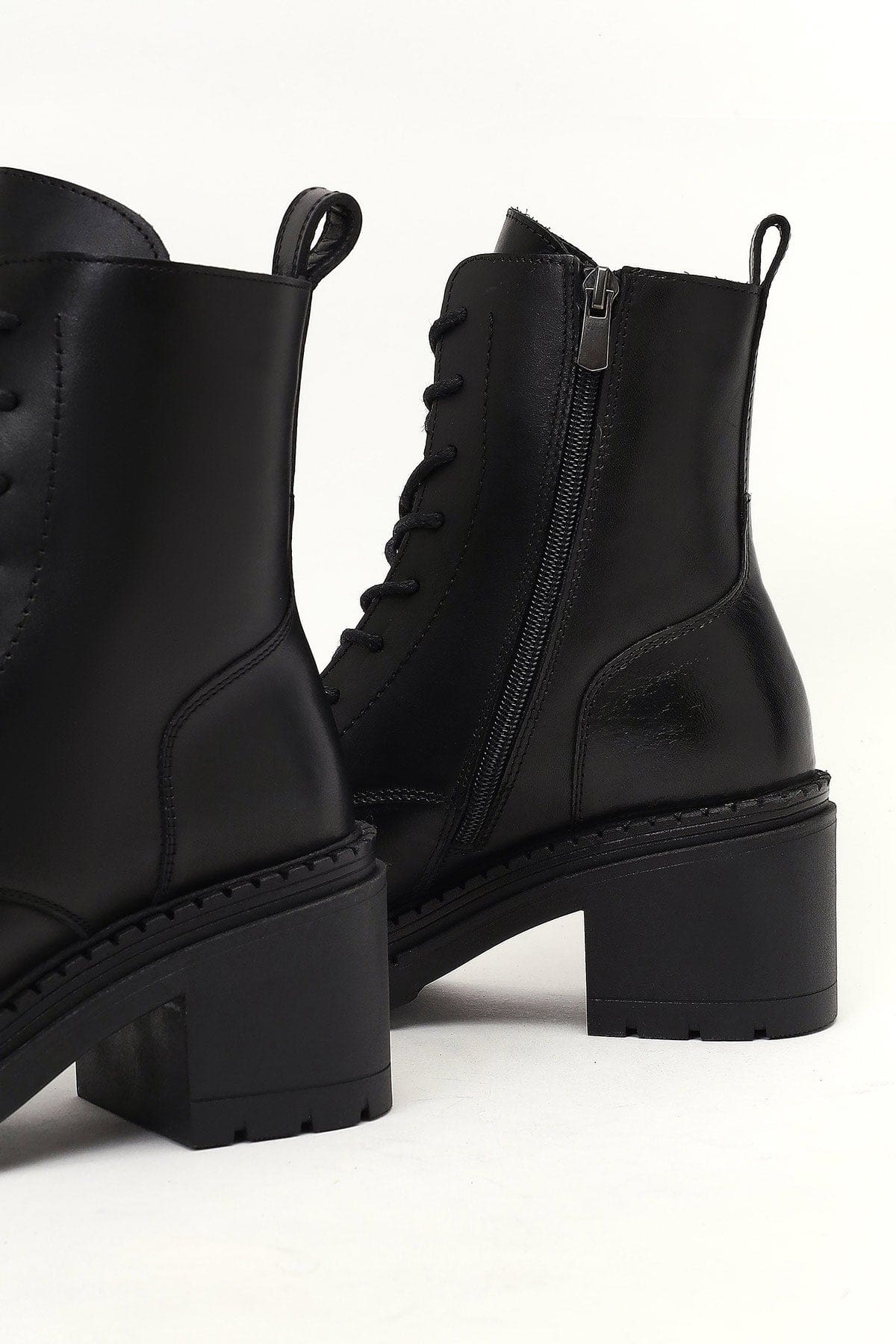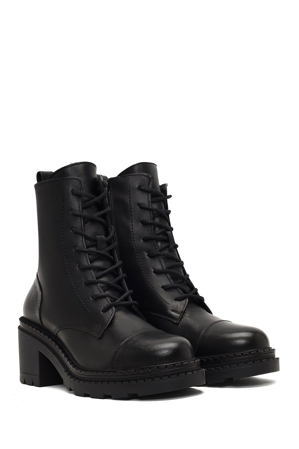 Kadın Siyah Fermuarlı Kalın Topuklu Deri Postal Bot