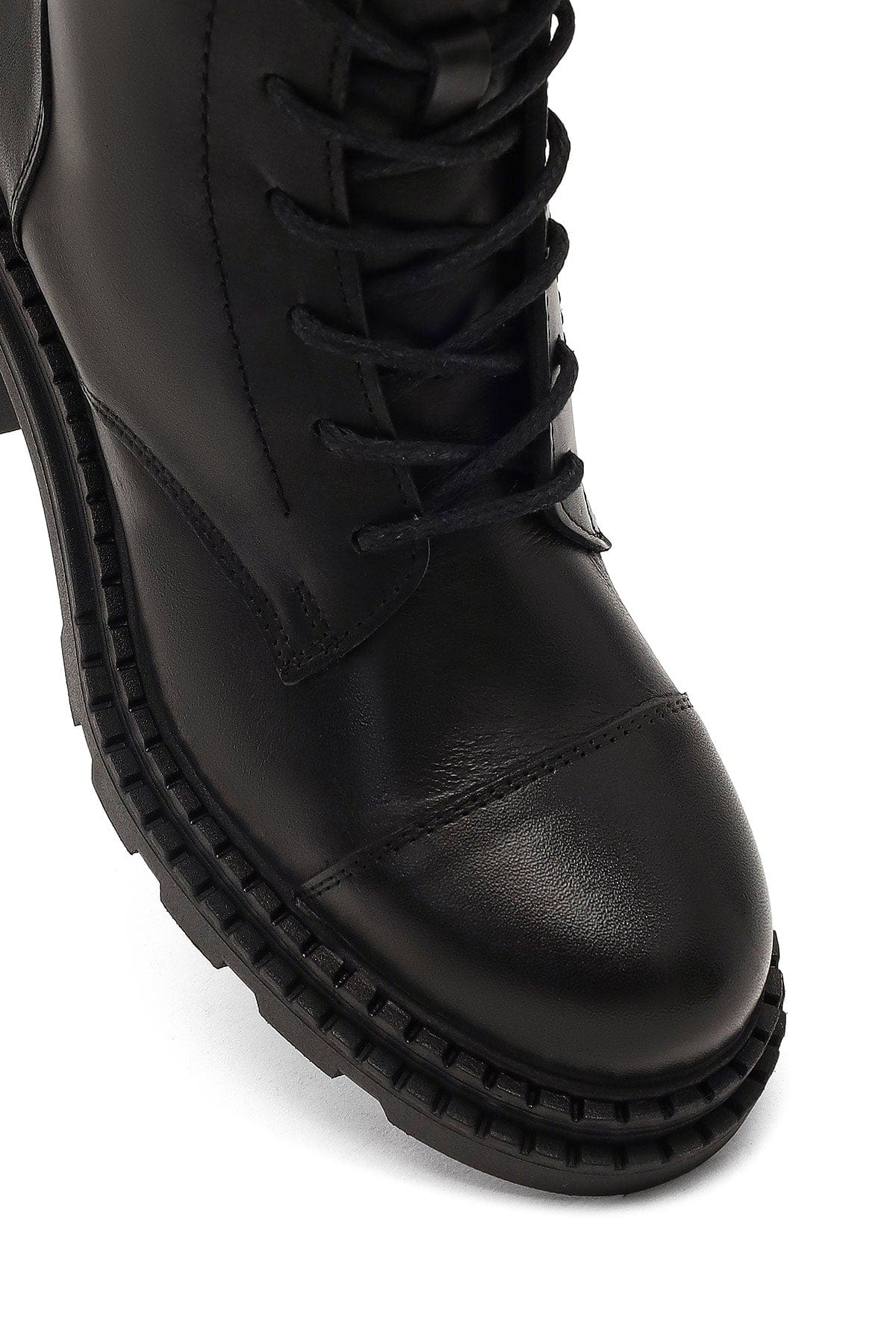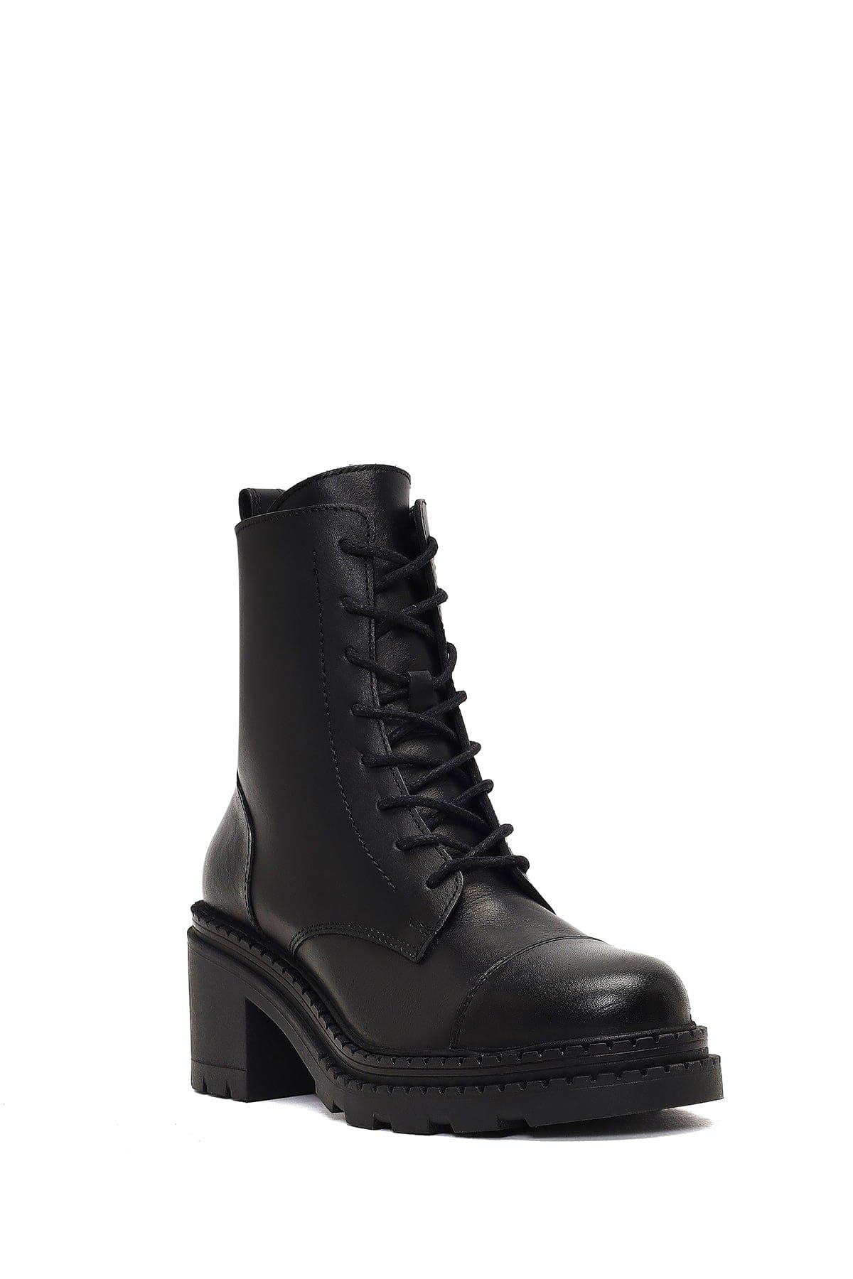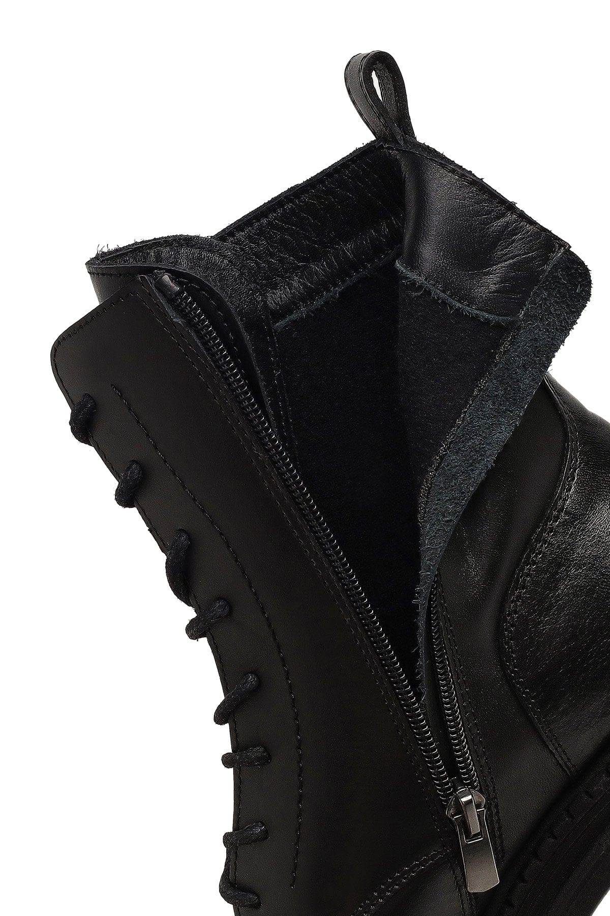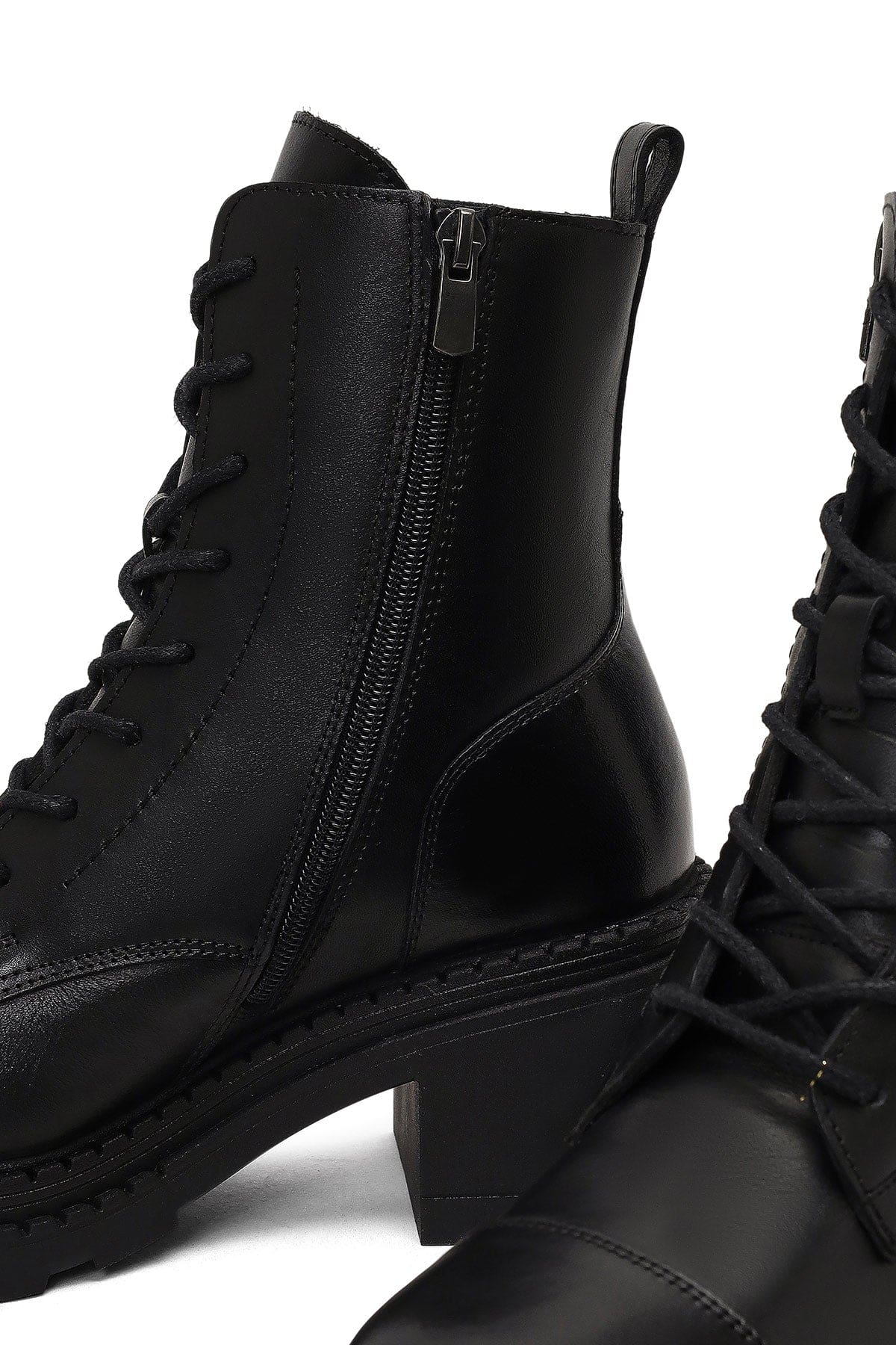 Kadın Siyah Fermuarlı Kalın Topuklu Deri Postal Bot