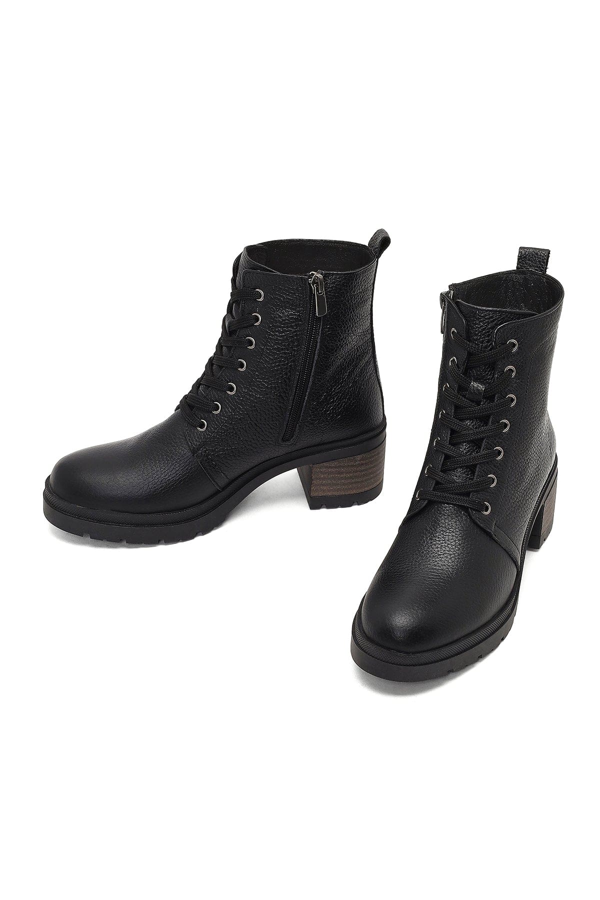 بوت زنانه چرم مشکی زیپدار پاشنهضخیم بنددار دری مد