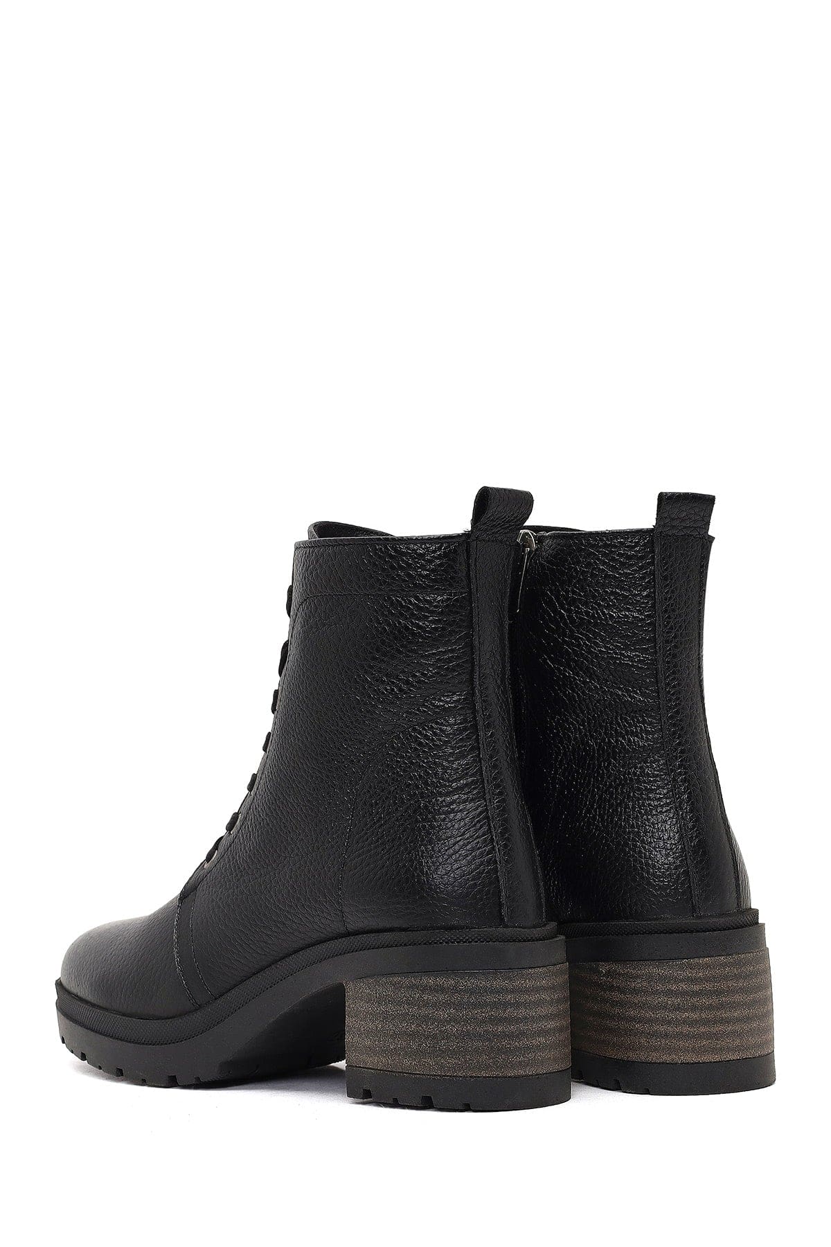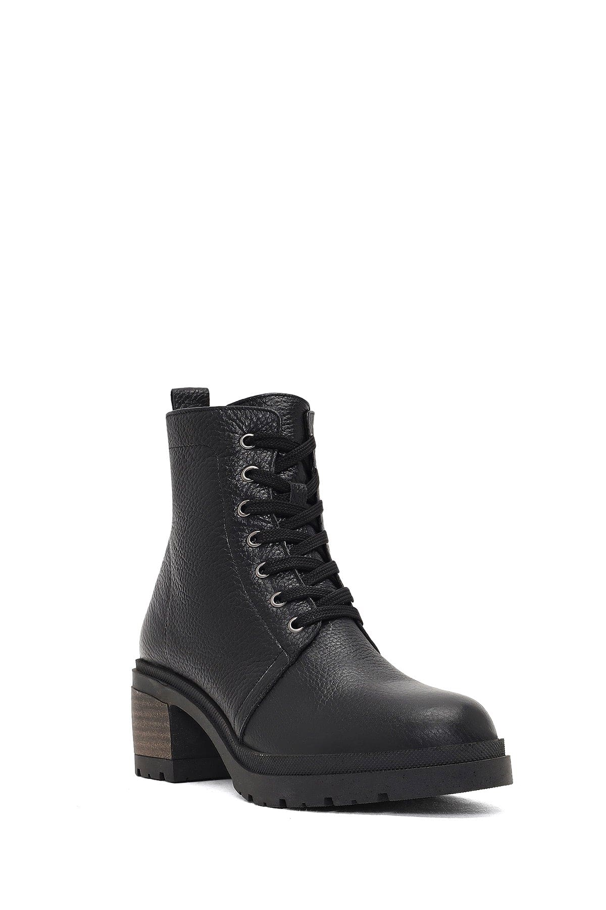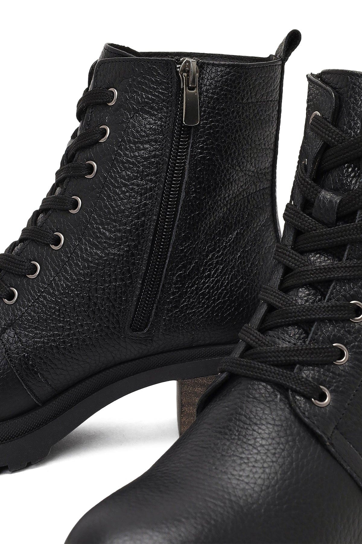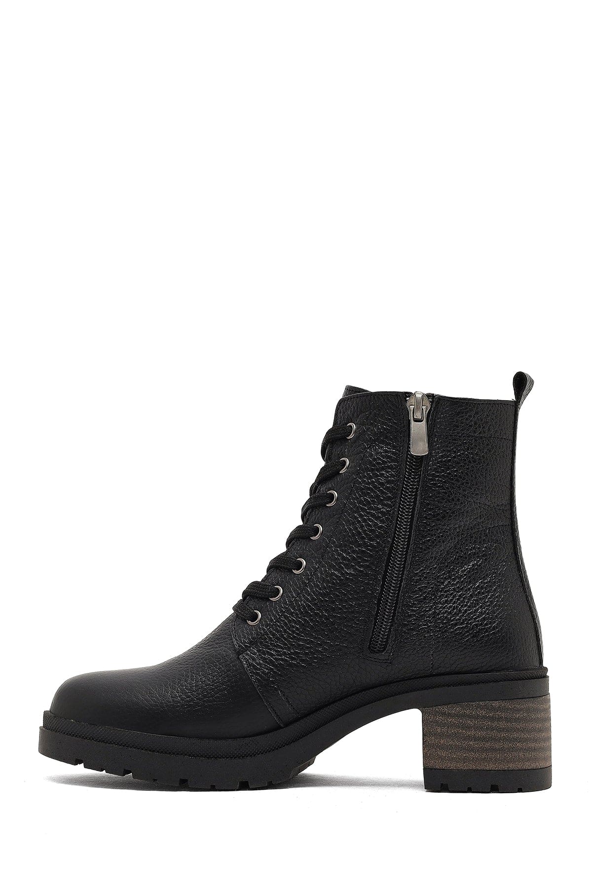 Kadın Siyah Fermuarlı Kalın Topuklu Deri Postal Bot