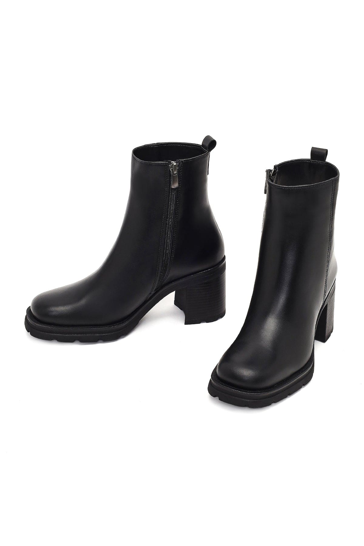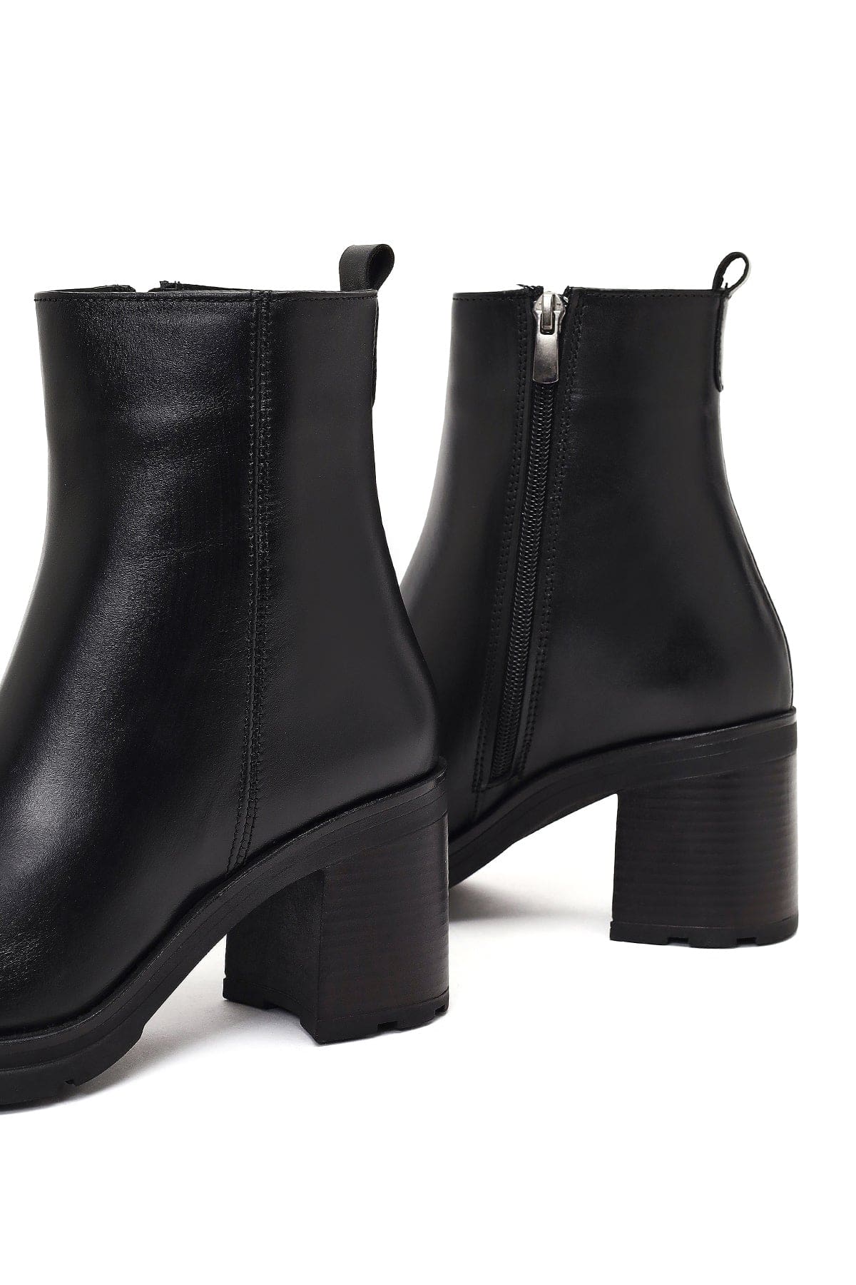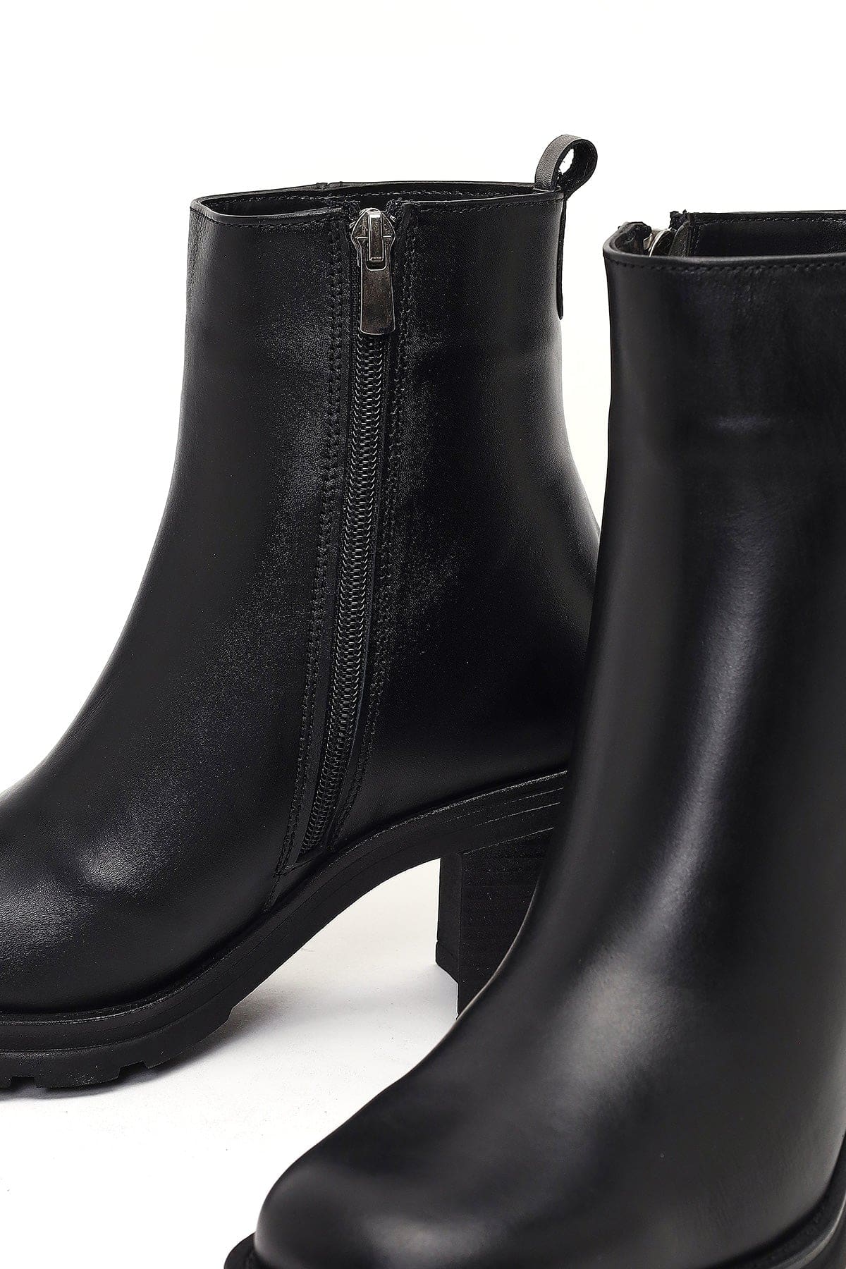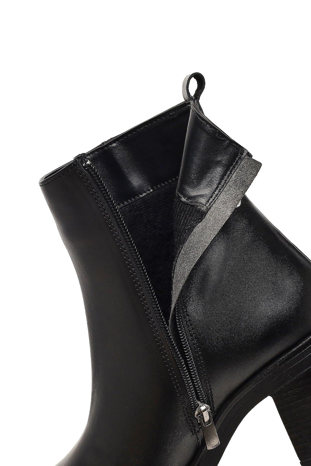 Kadın Siyah Fermuarlı Kalın Topuklu Deri Bot