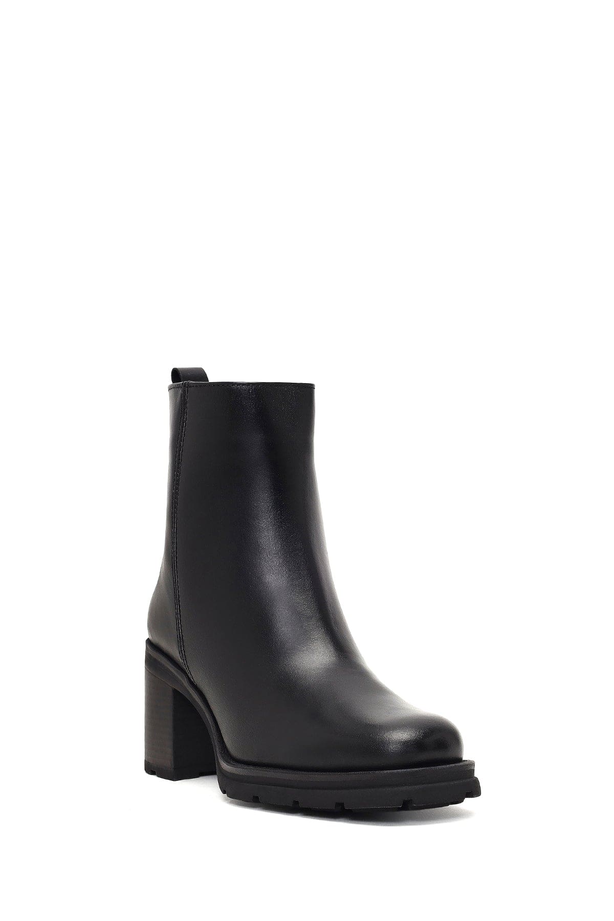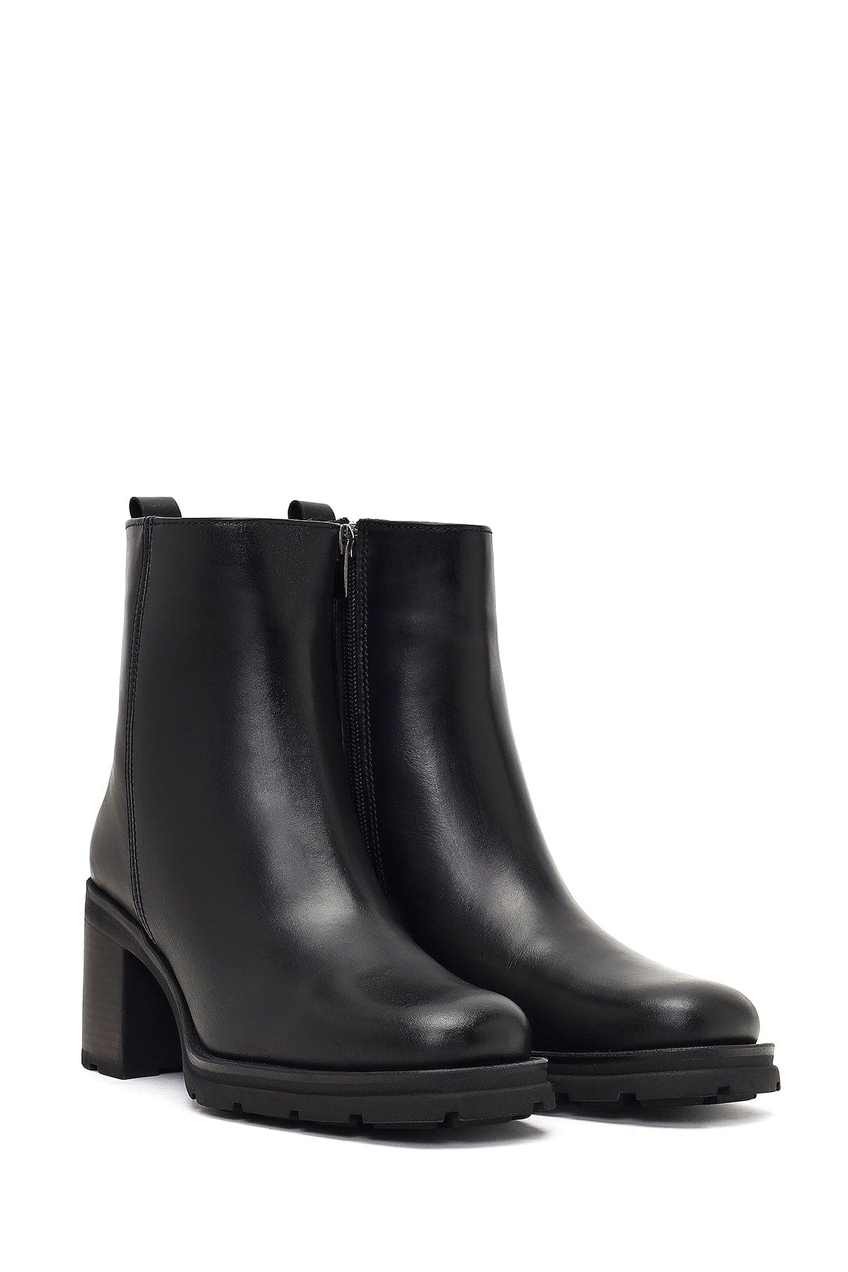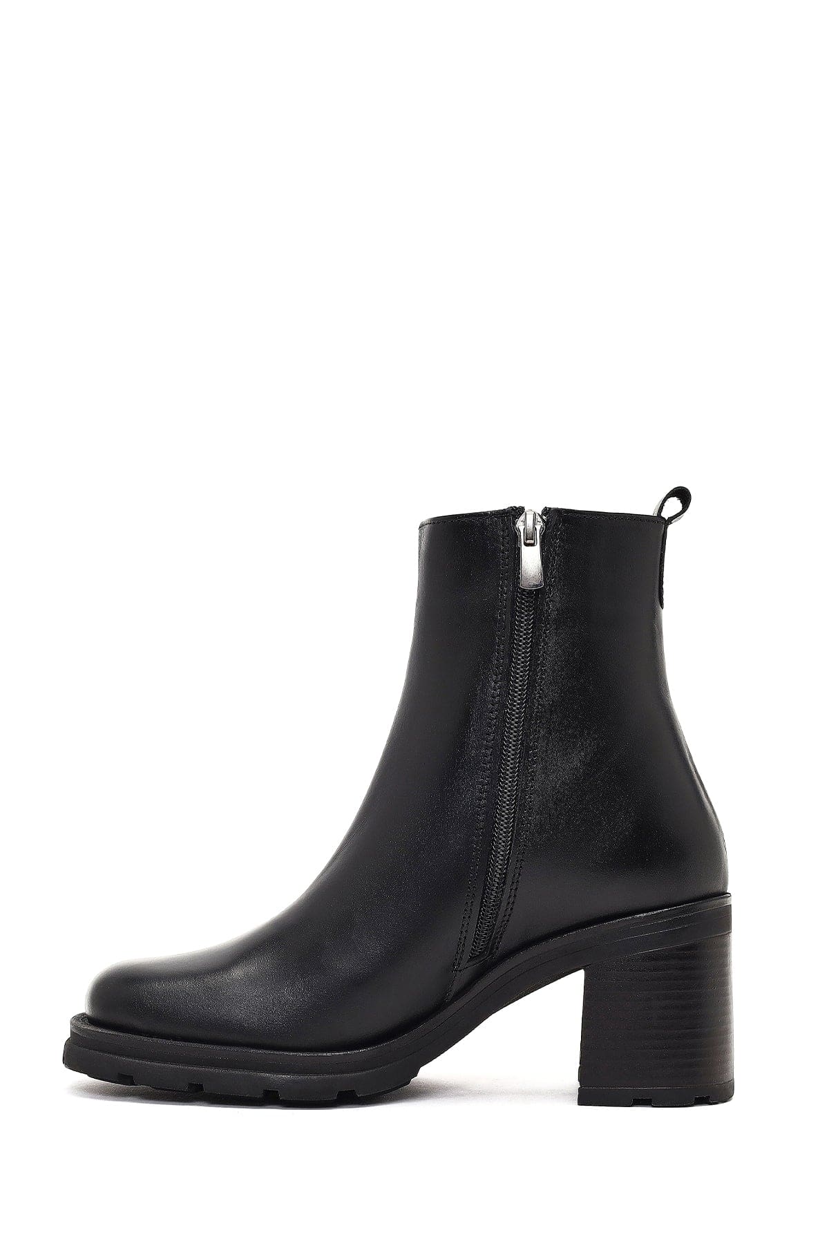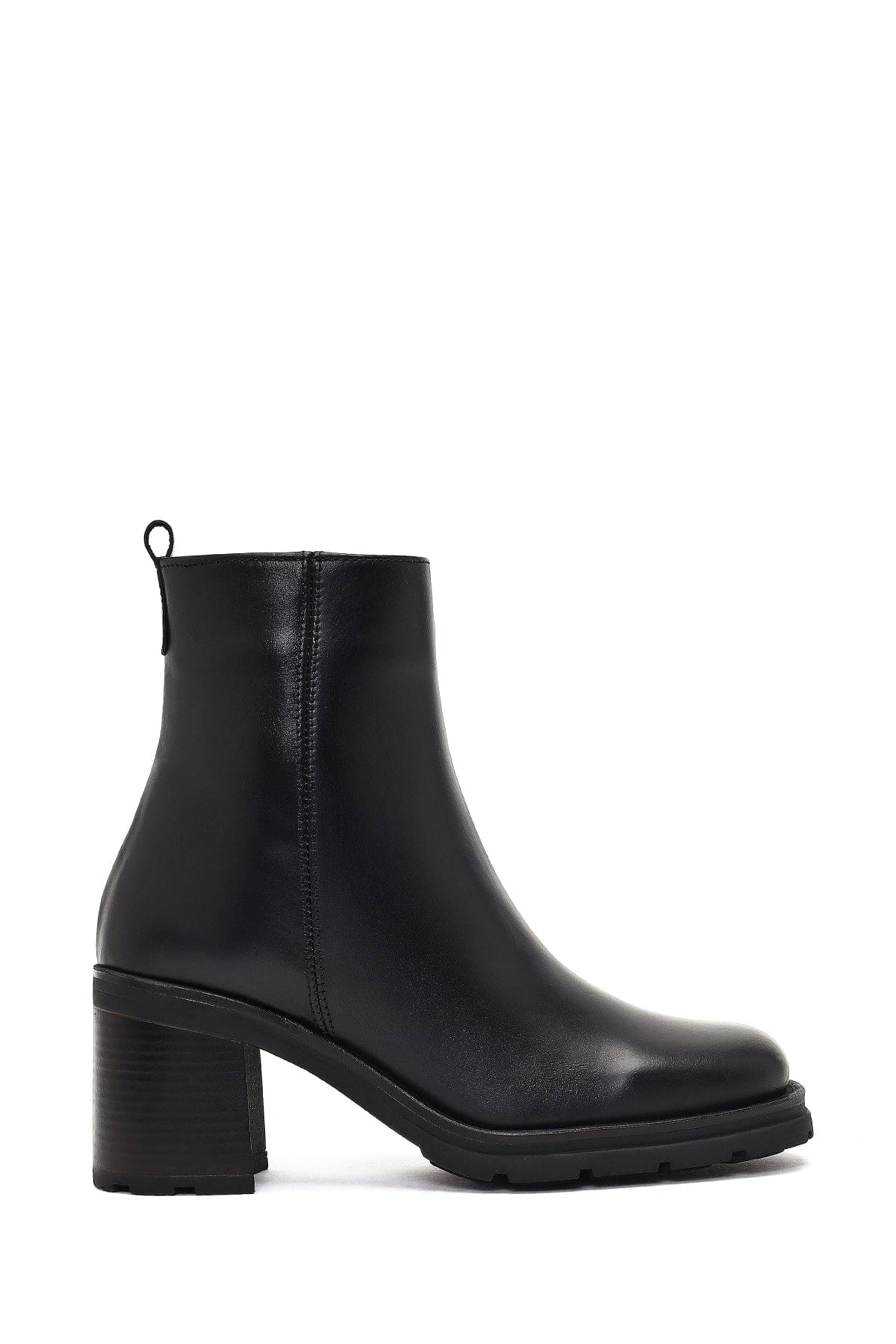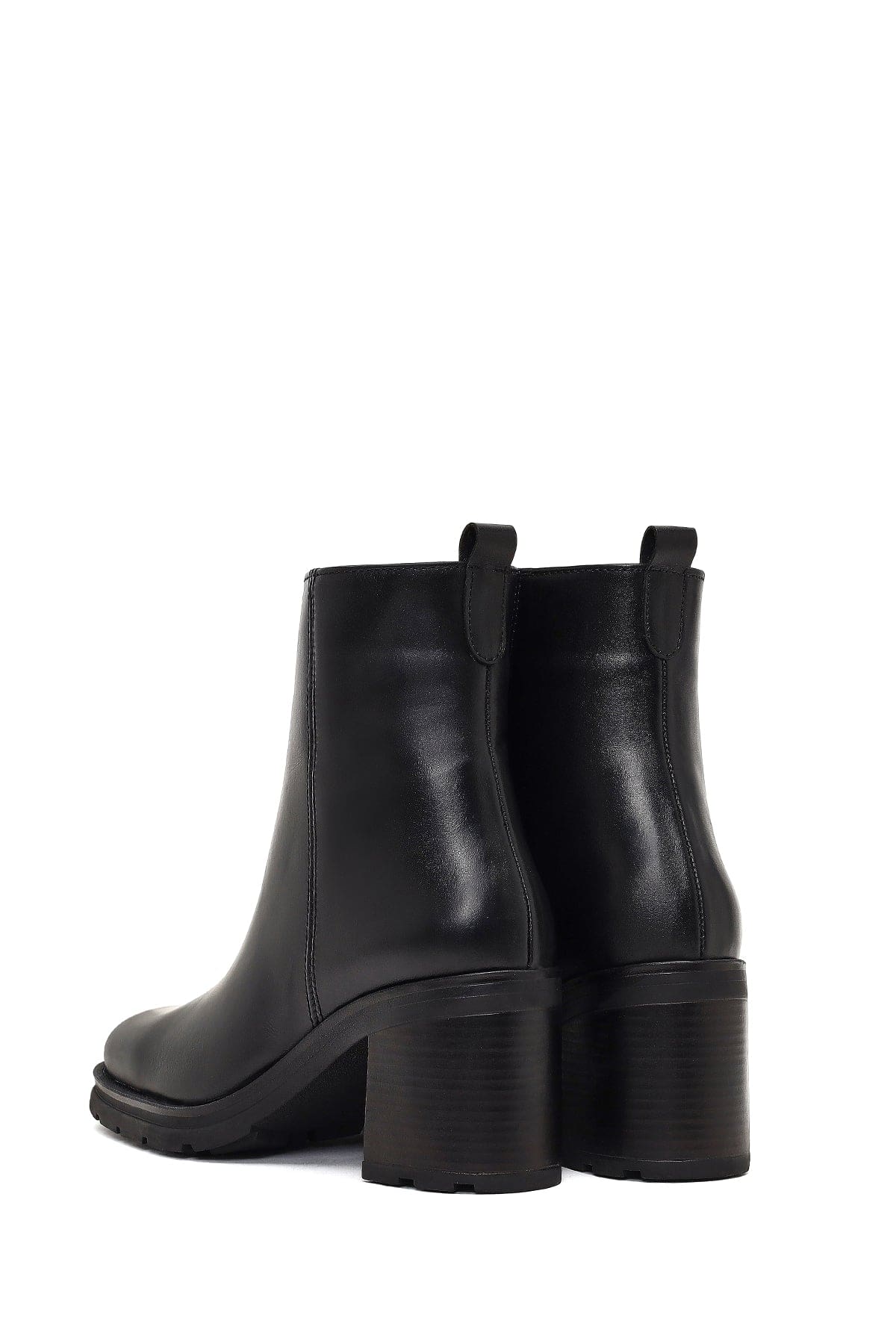 Kadın Siyah Fermuarlı Kalın Topuklu Deri Bot