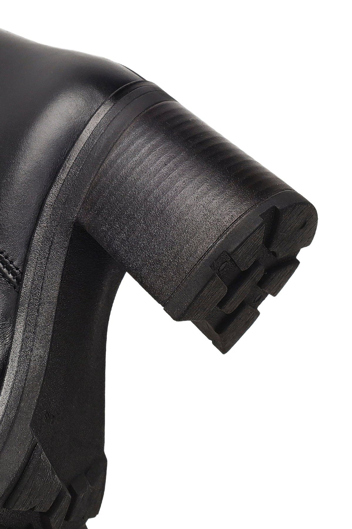 بوت زنانه چرم مشکی زیپدار پاشنهضخیم دری مد