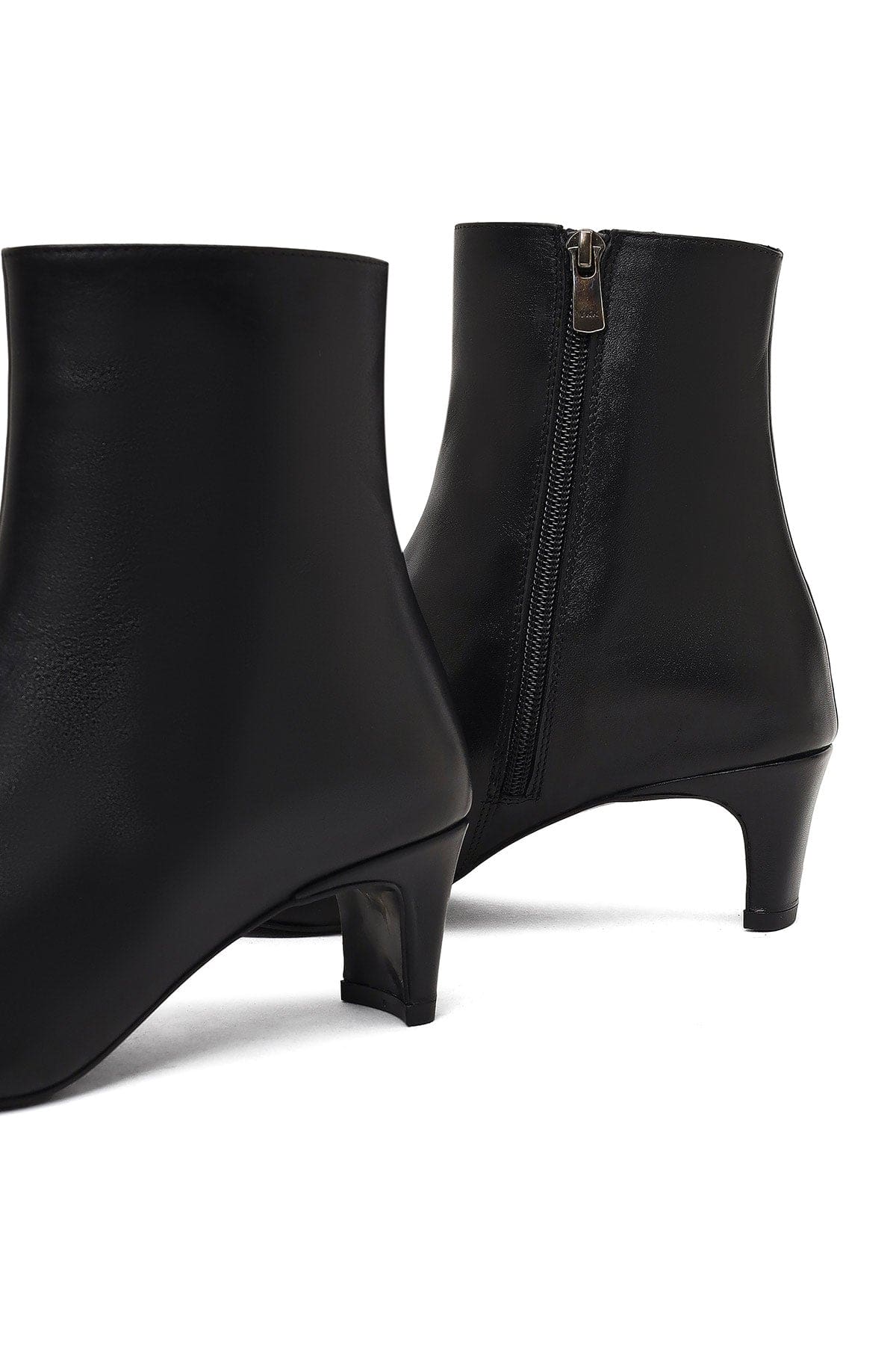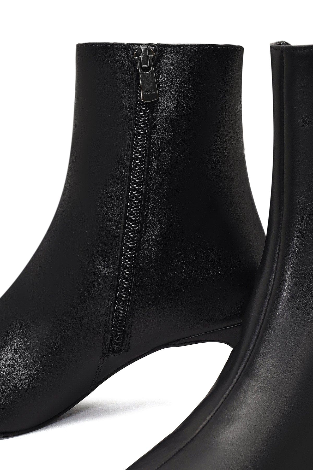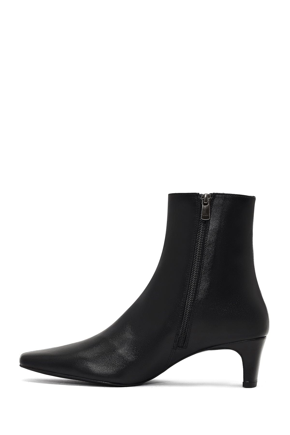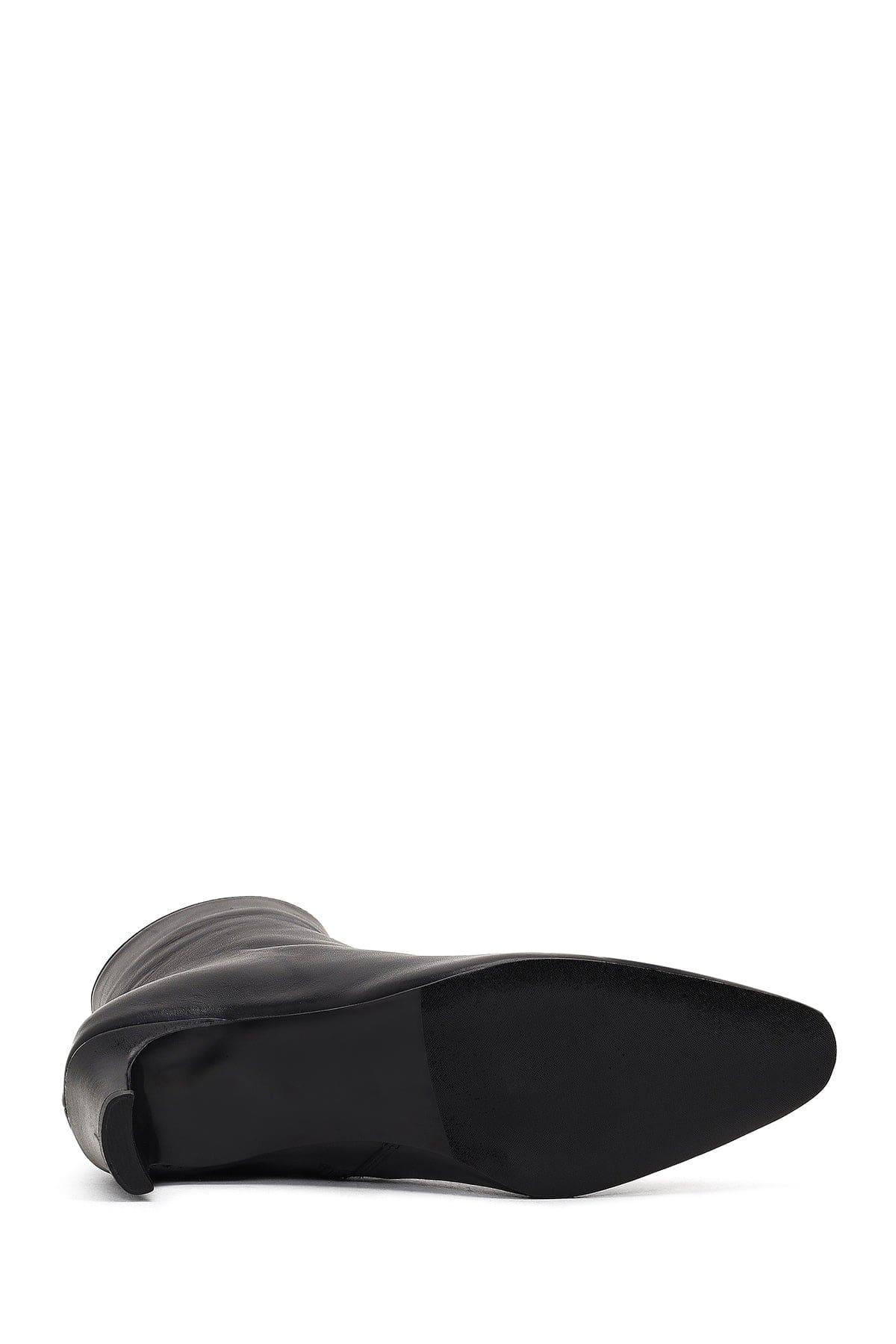 Kadın Siyah Fermuarlı Kalın Topuklu Deri Bot