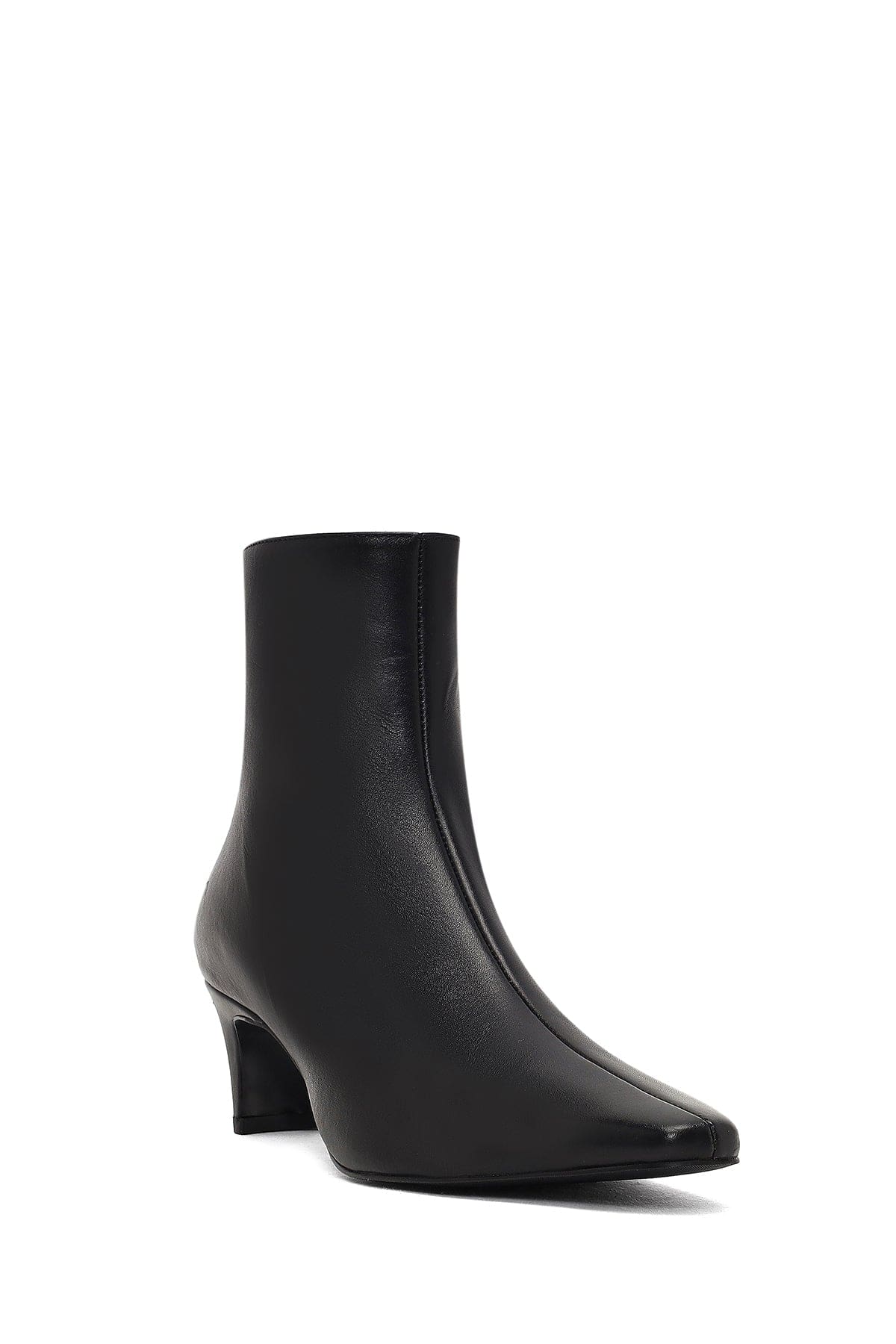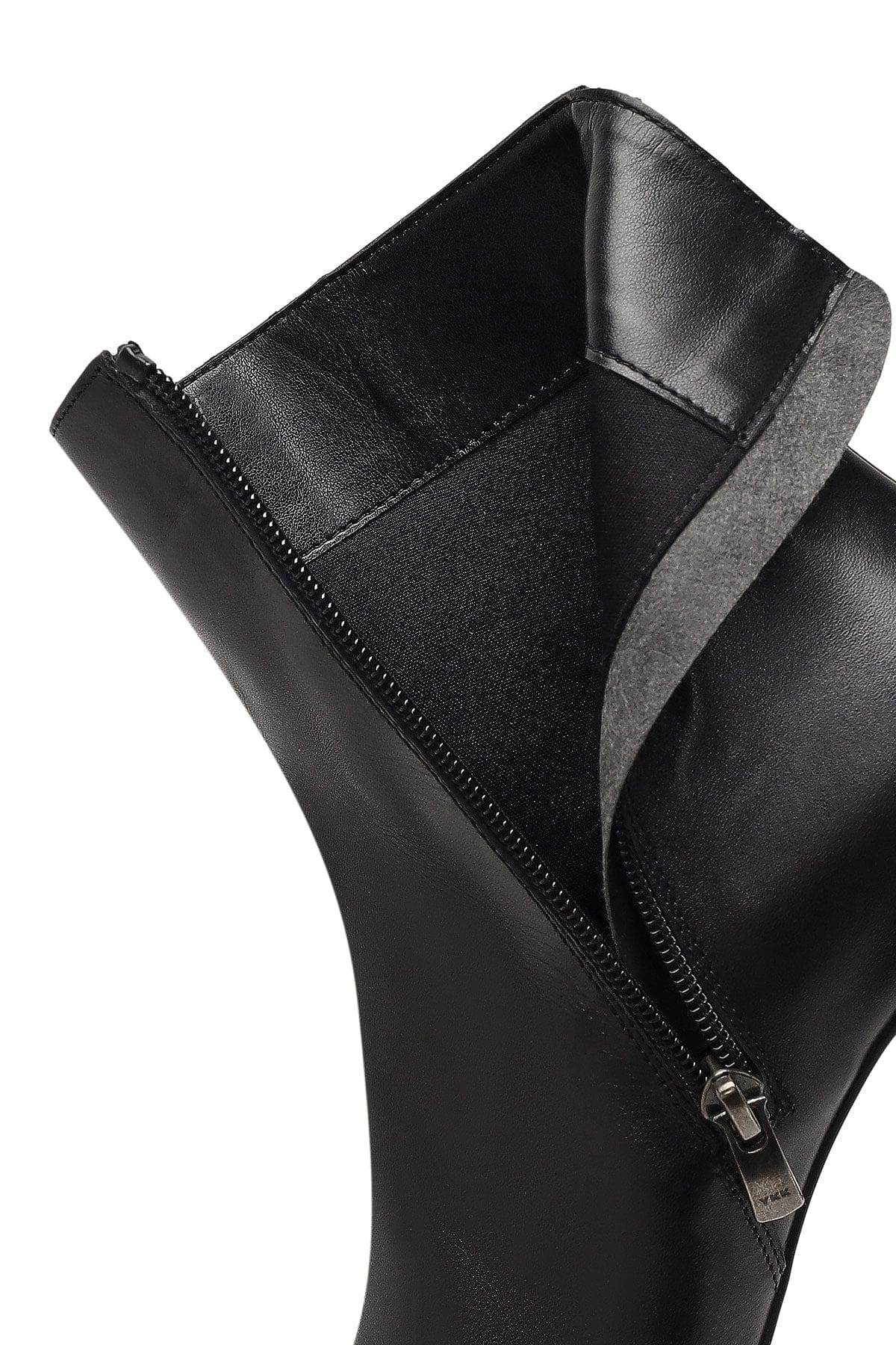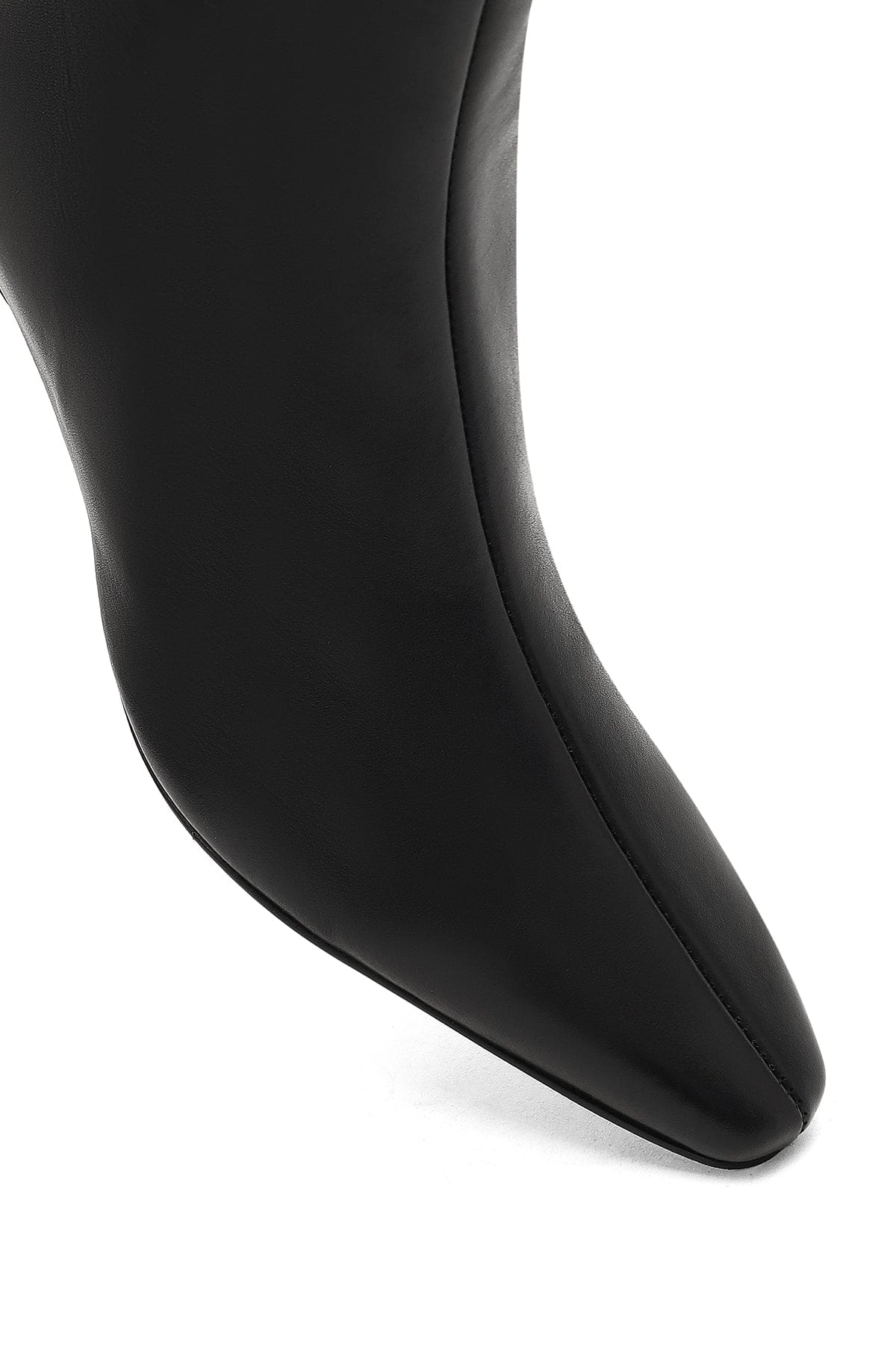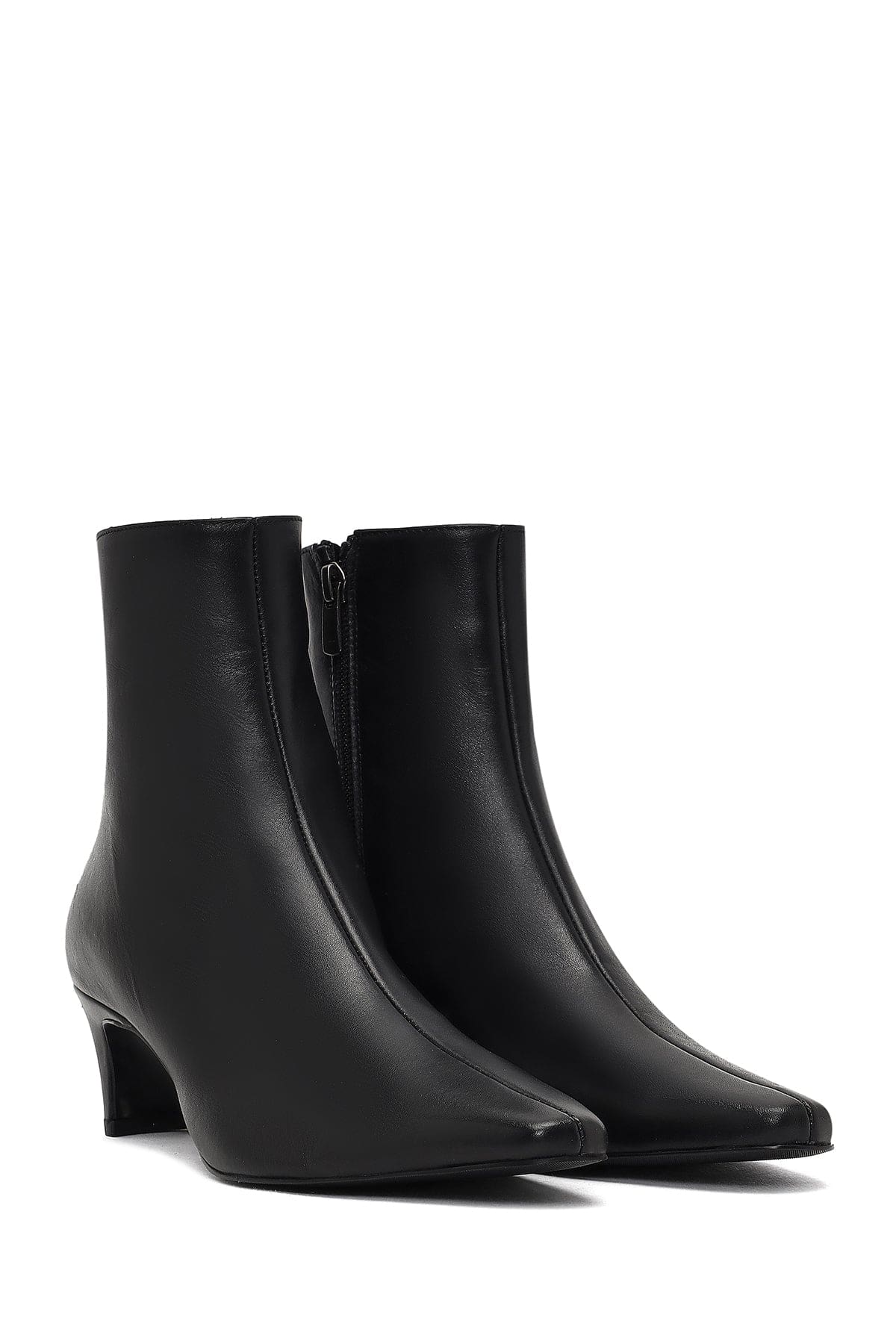 Kadın Siyah Fermuarlı Kalın Topuklu Deri Bot