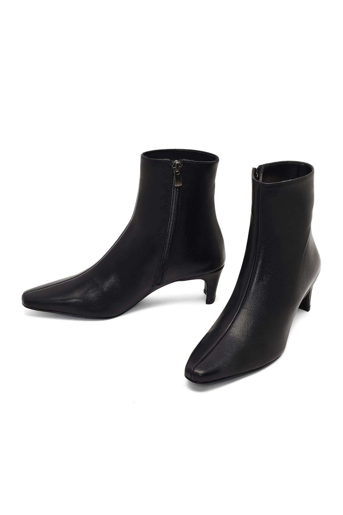 بوت زنانه چرم مشکی زیپدار پاشنهضخیم دری مد