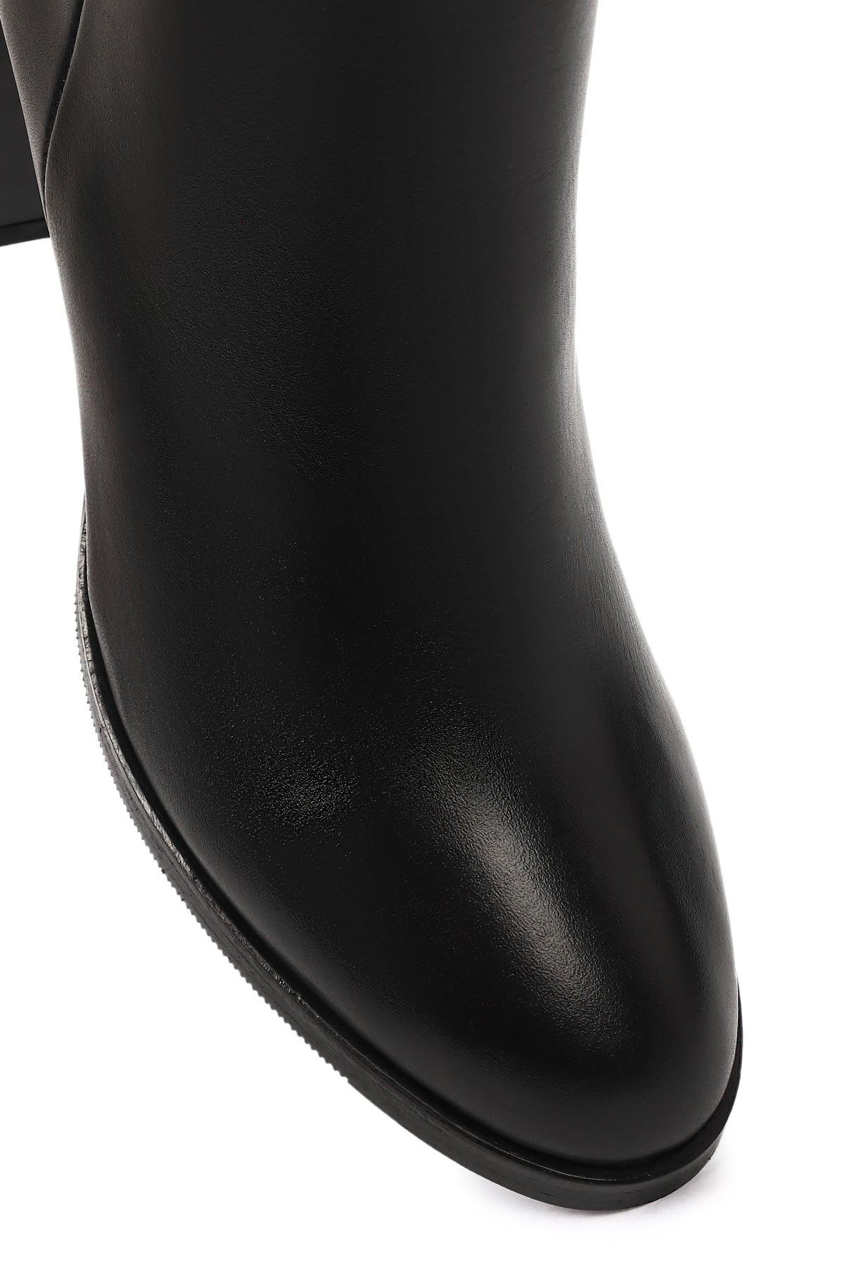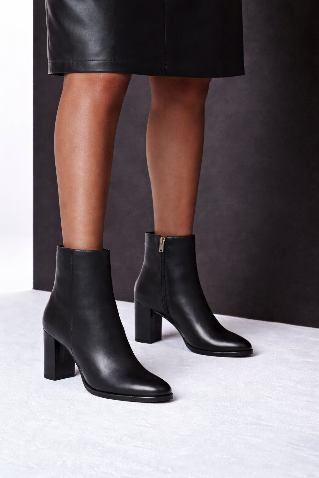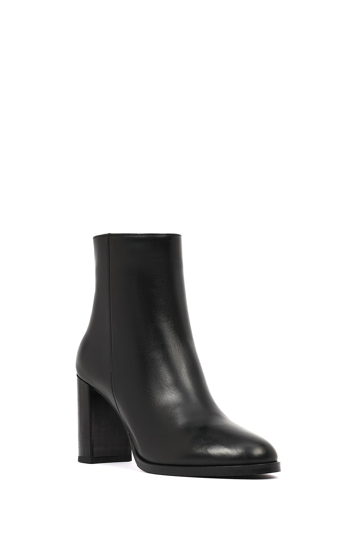 Kadın Siyah Fermuarlı Kalın Topuklu Deri Bot