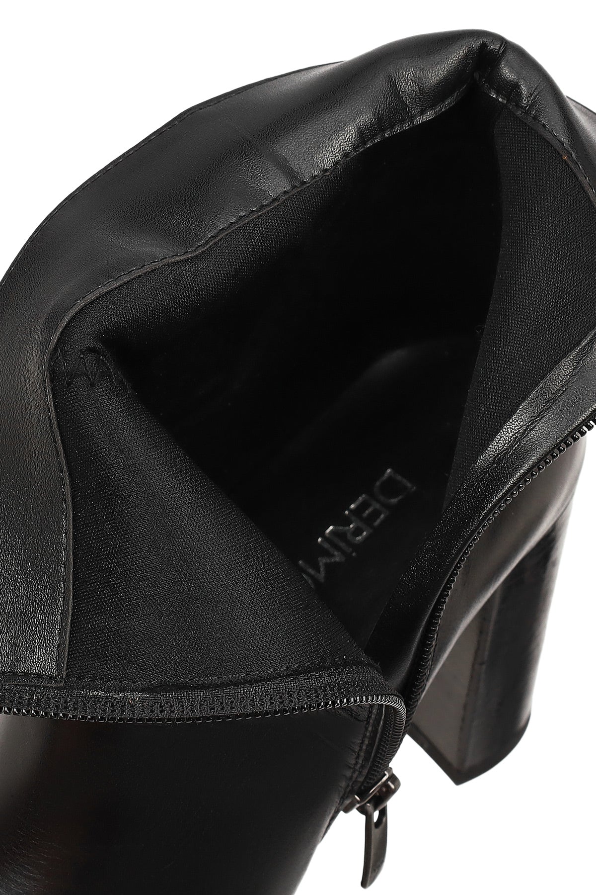 بوت زنانه چرم مشکی پاشنهبلند ضخیم زیپدار دری مد