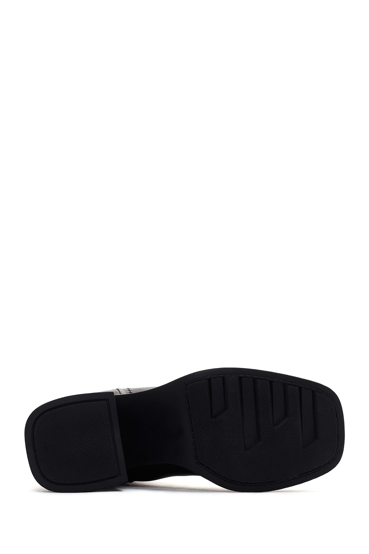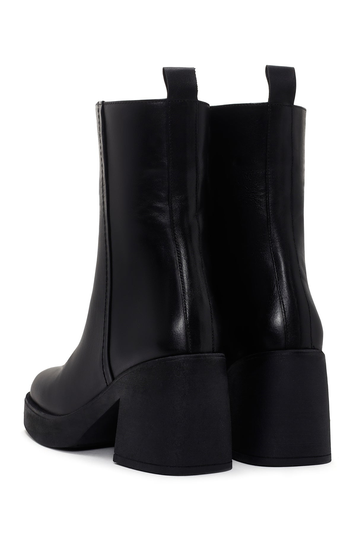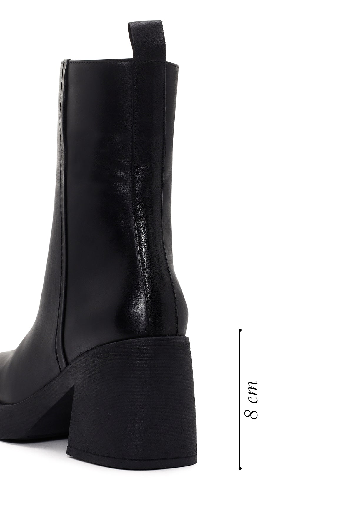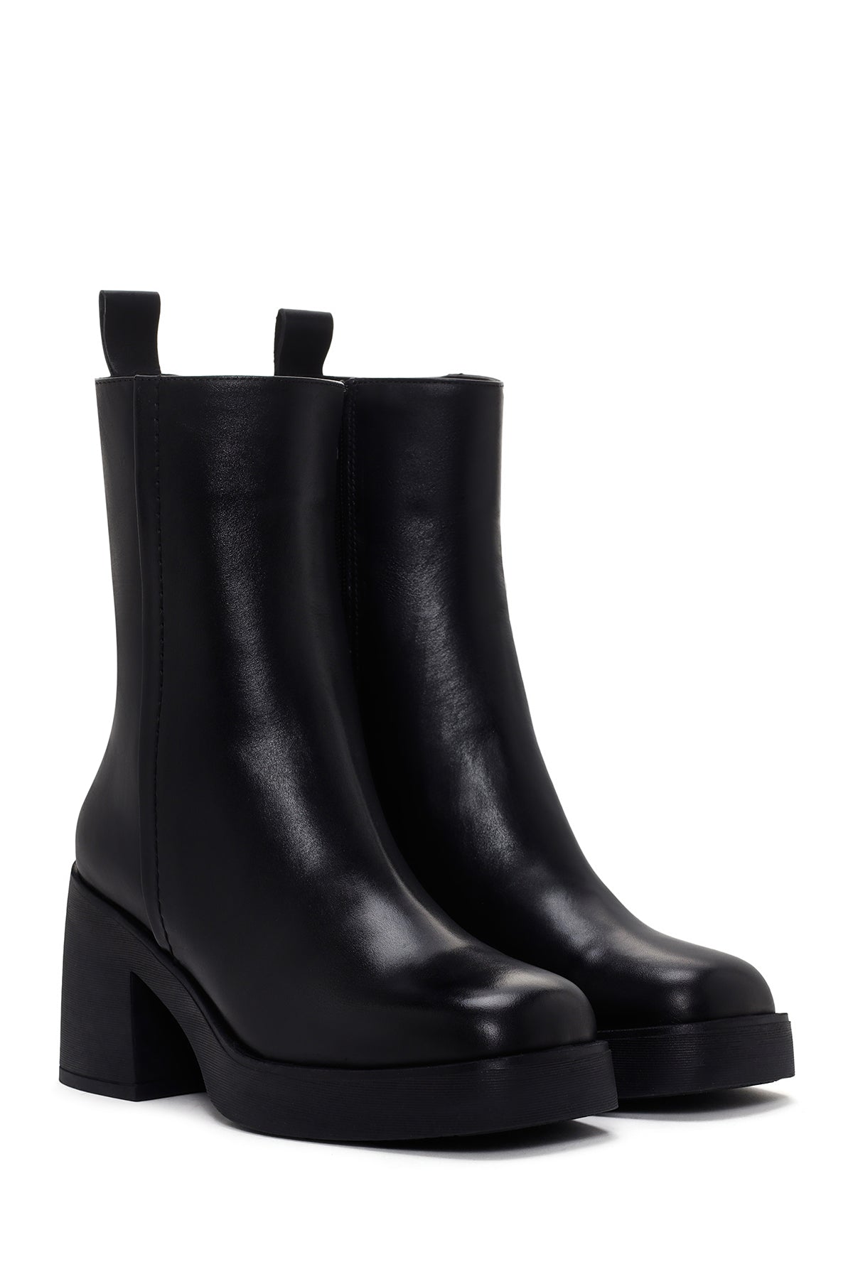Kadın Siyah Kalın Topuklu Fermuarlı Deri Bot