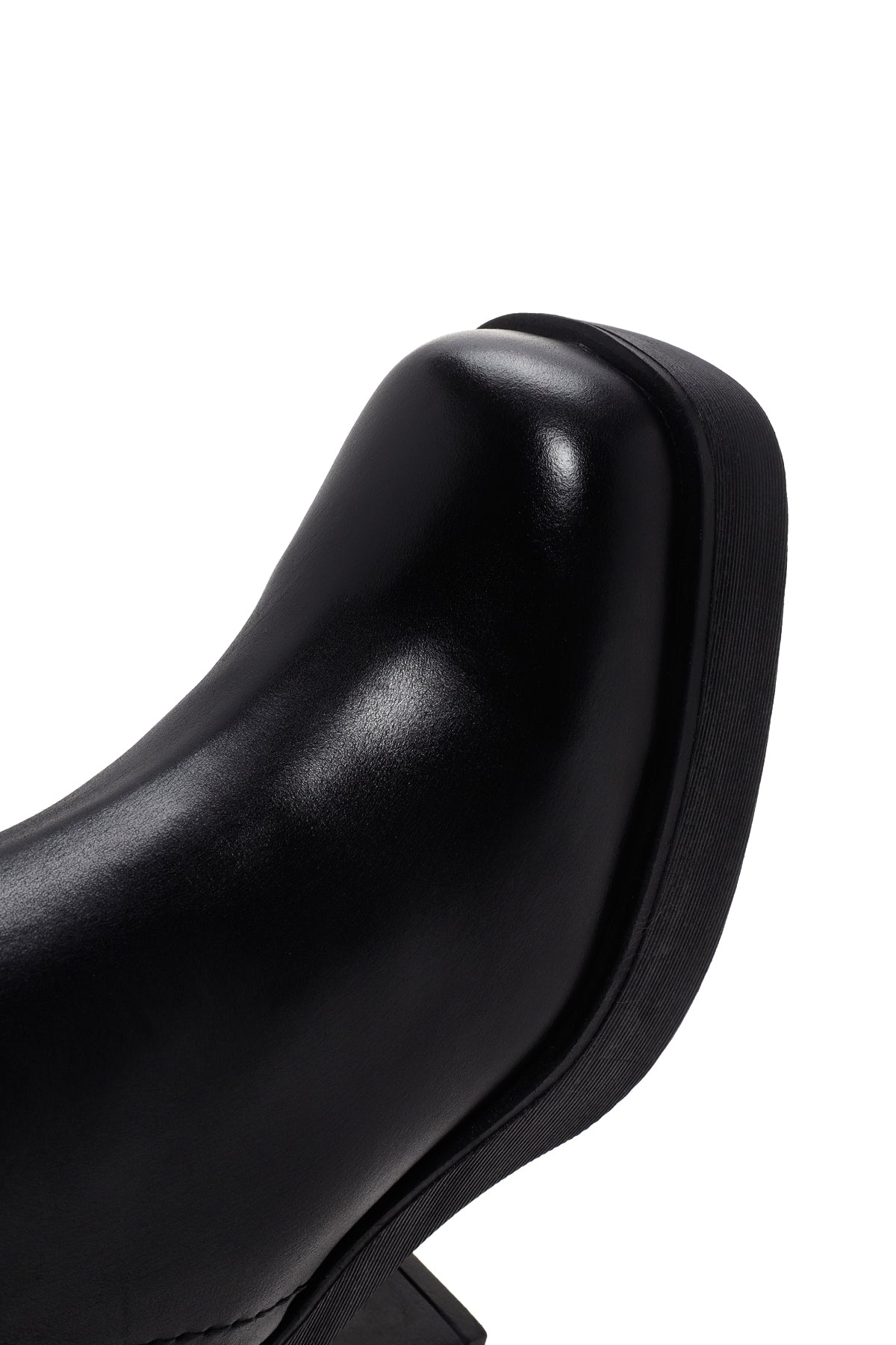 بوت زنانه چرم مشکی پاشنهبلند ضخیم زیپدار دری مد
