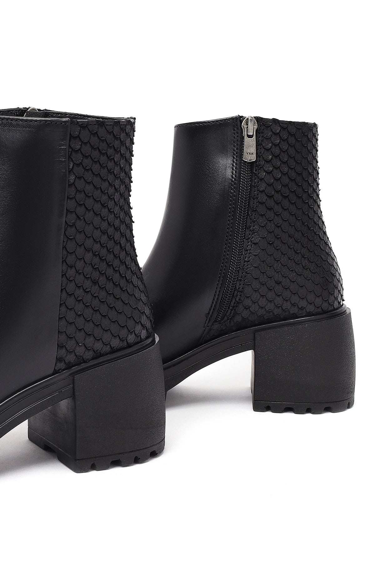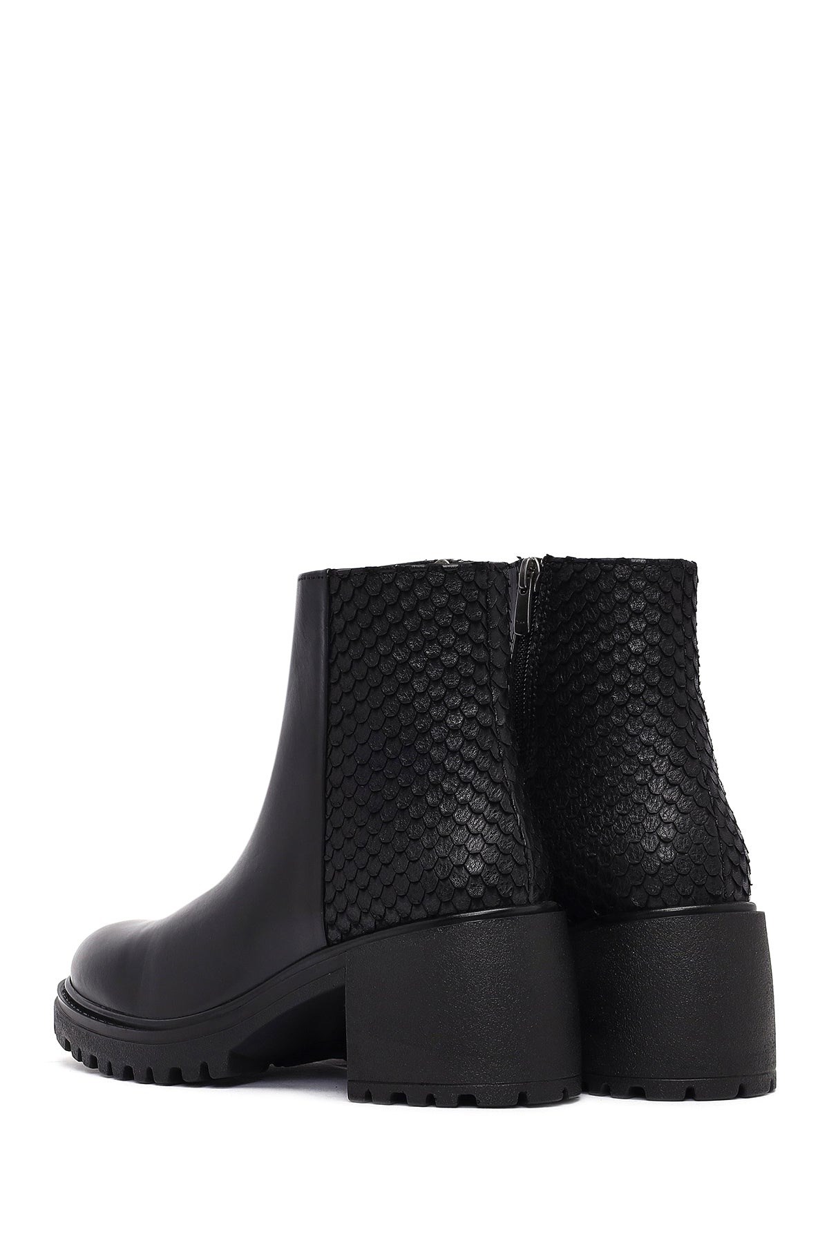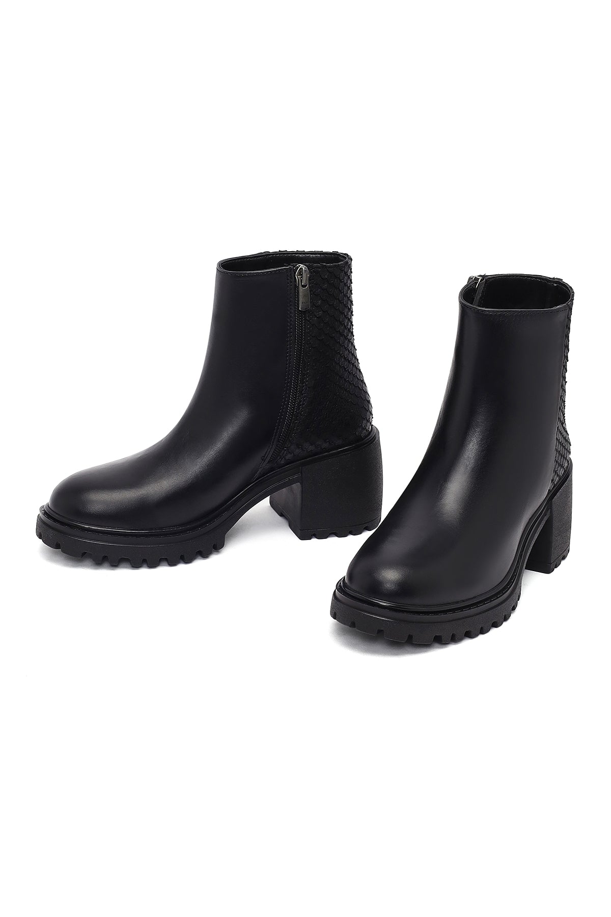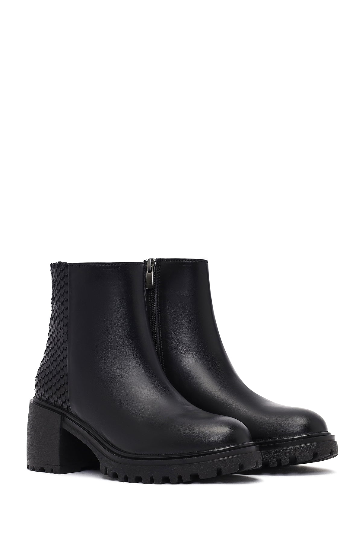Kadın Siyah Fermuarlı Kalın Topuklu Deri Bot