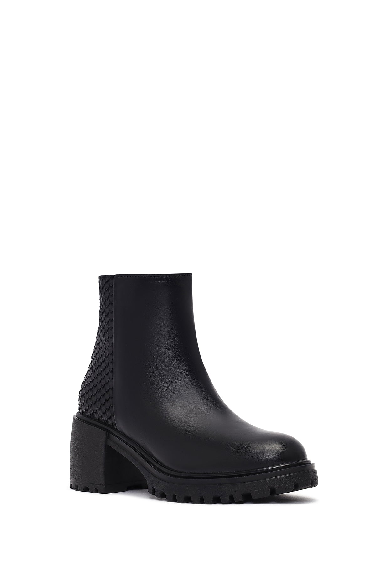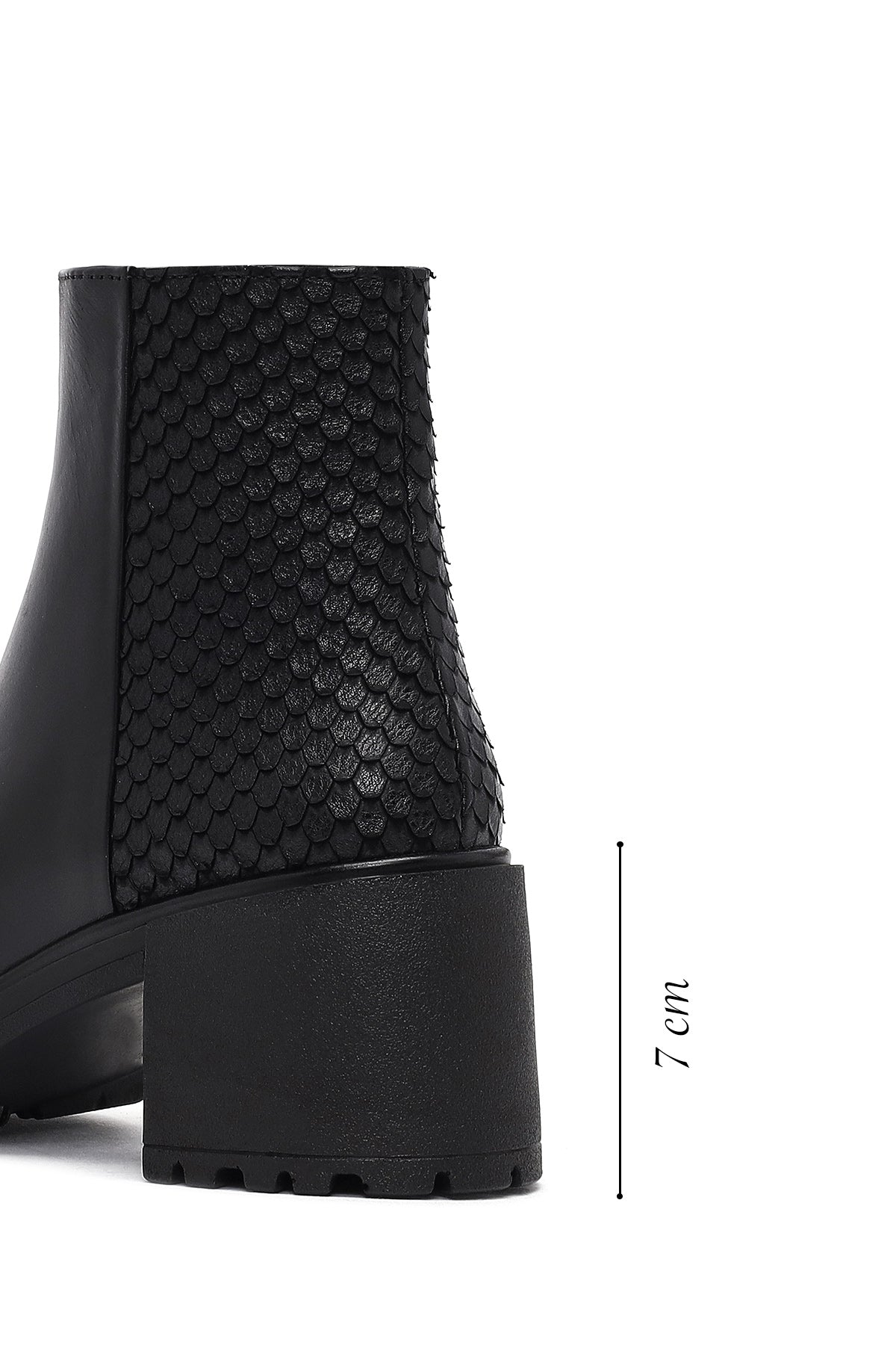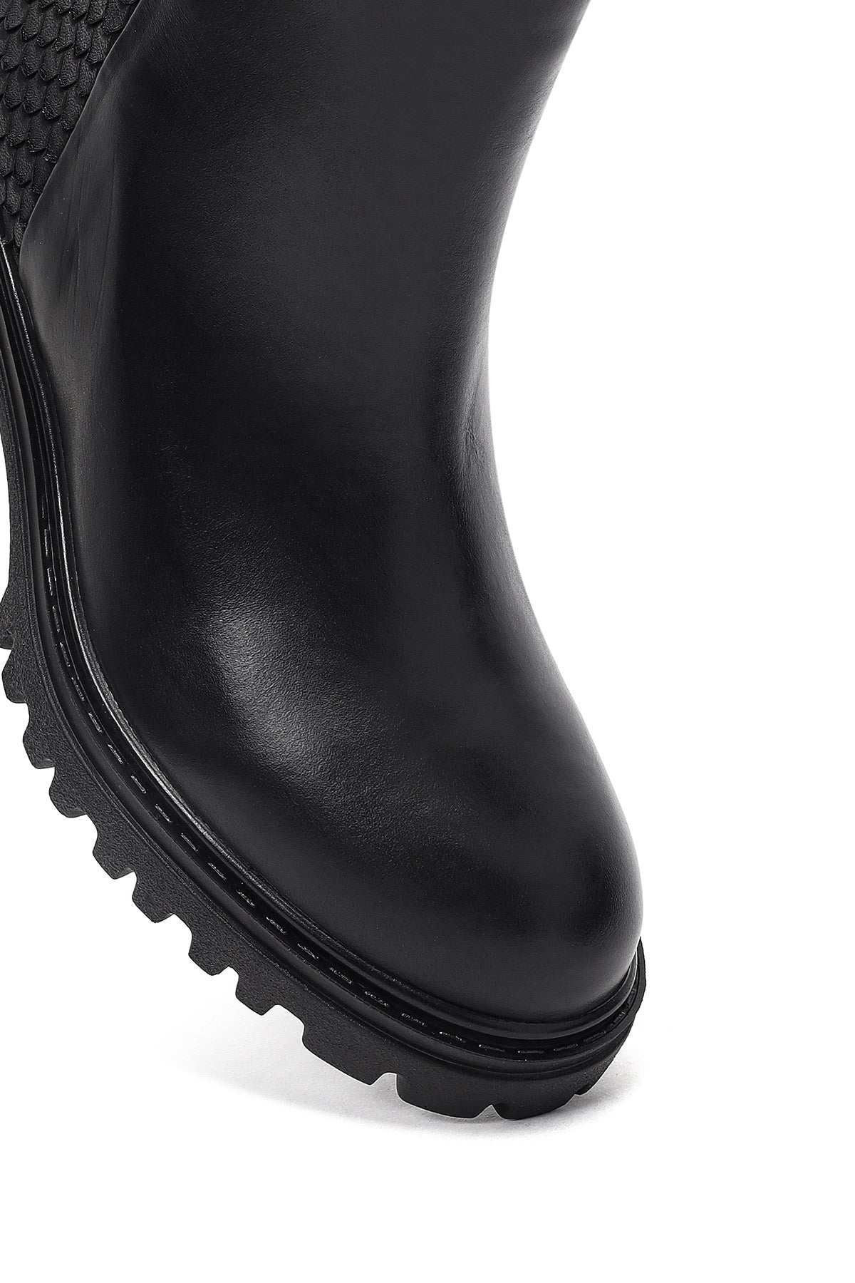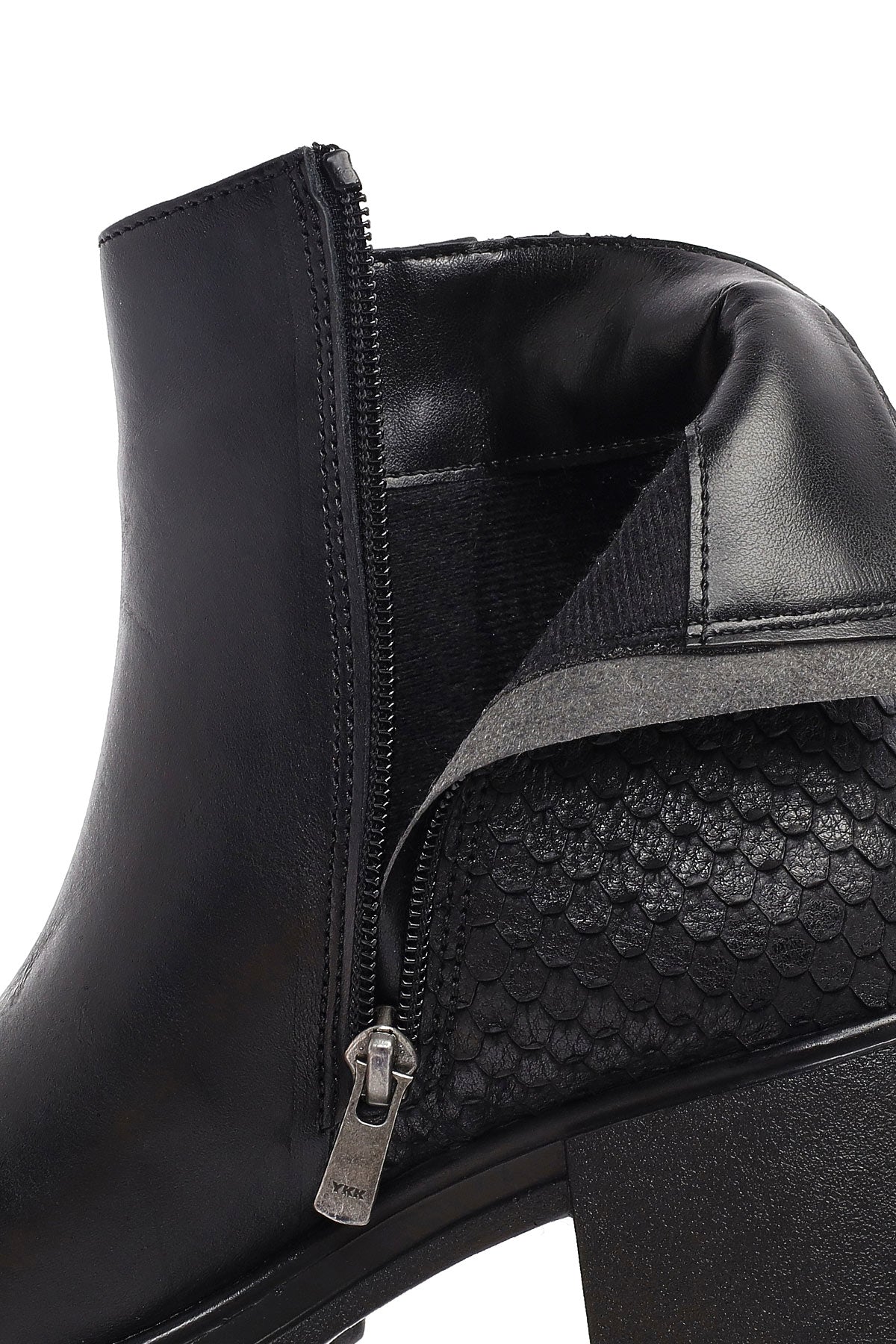 Kadın Siyah Fermuarlı Kalın Topuklu Deri Bot