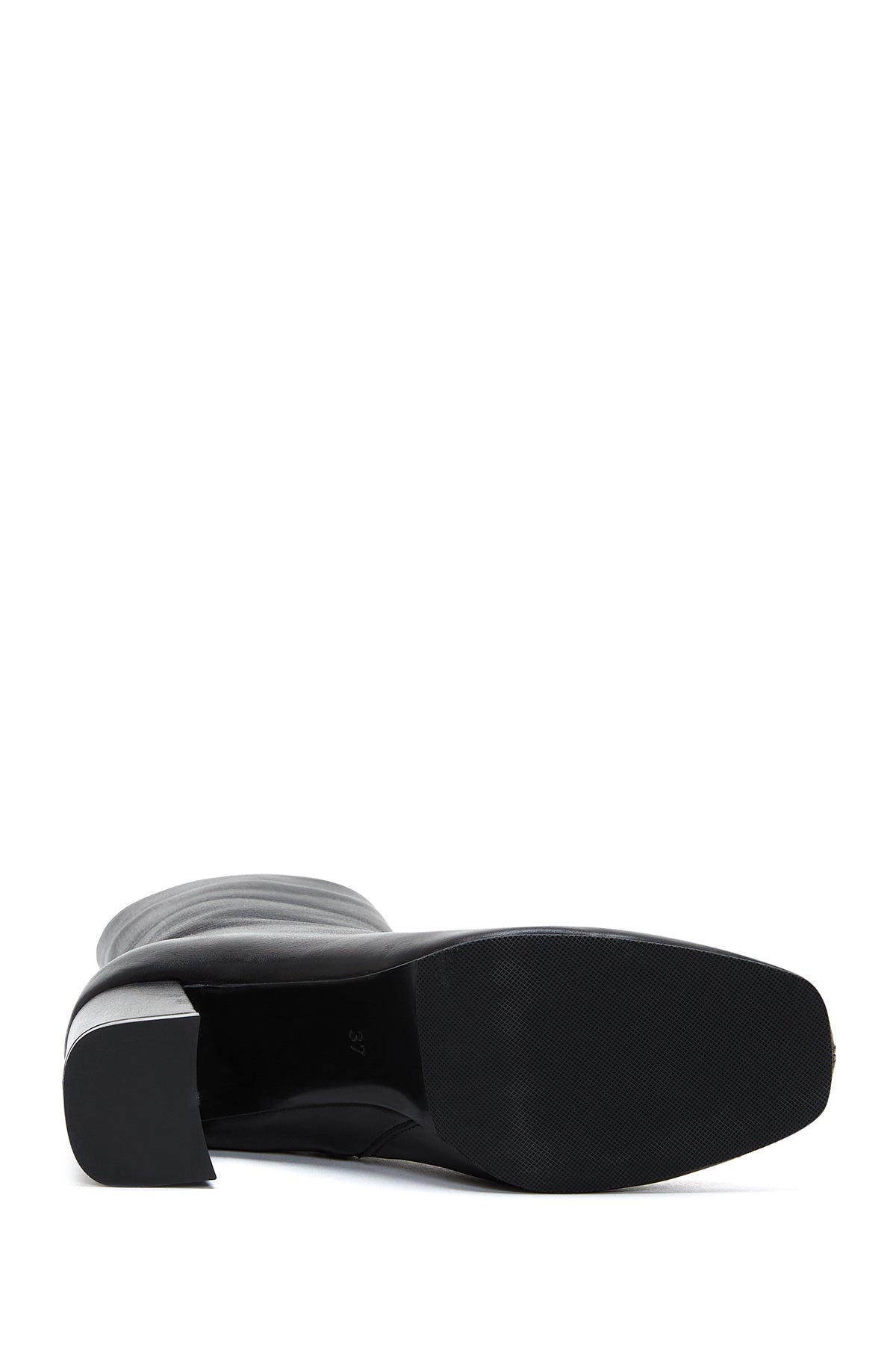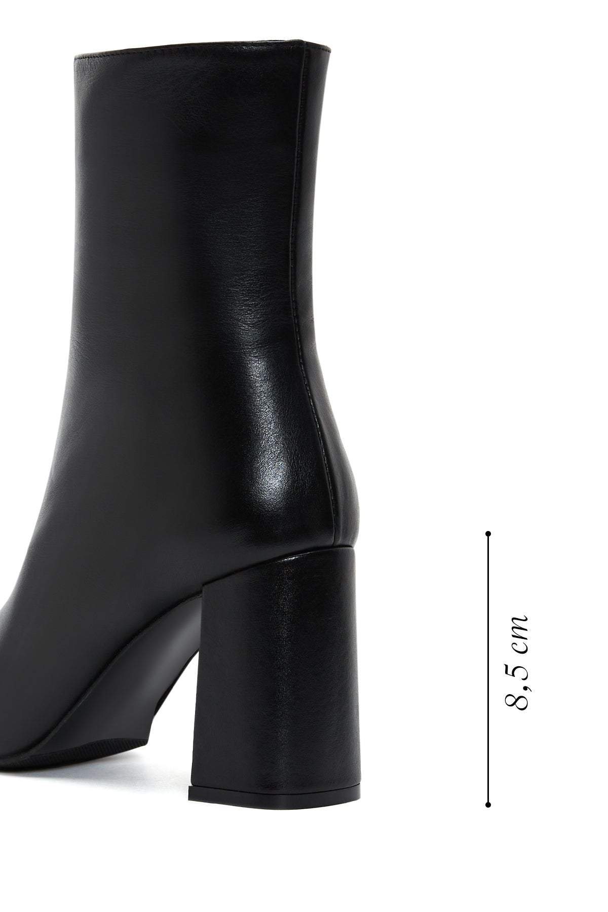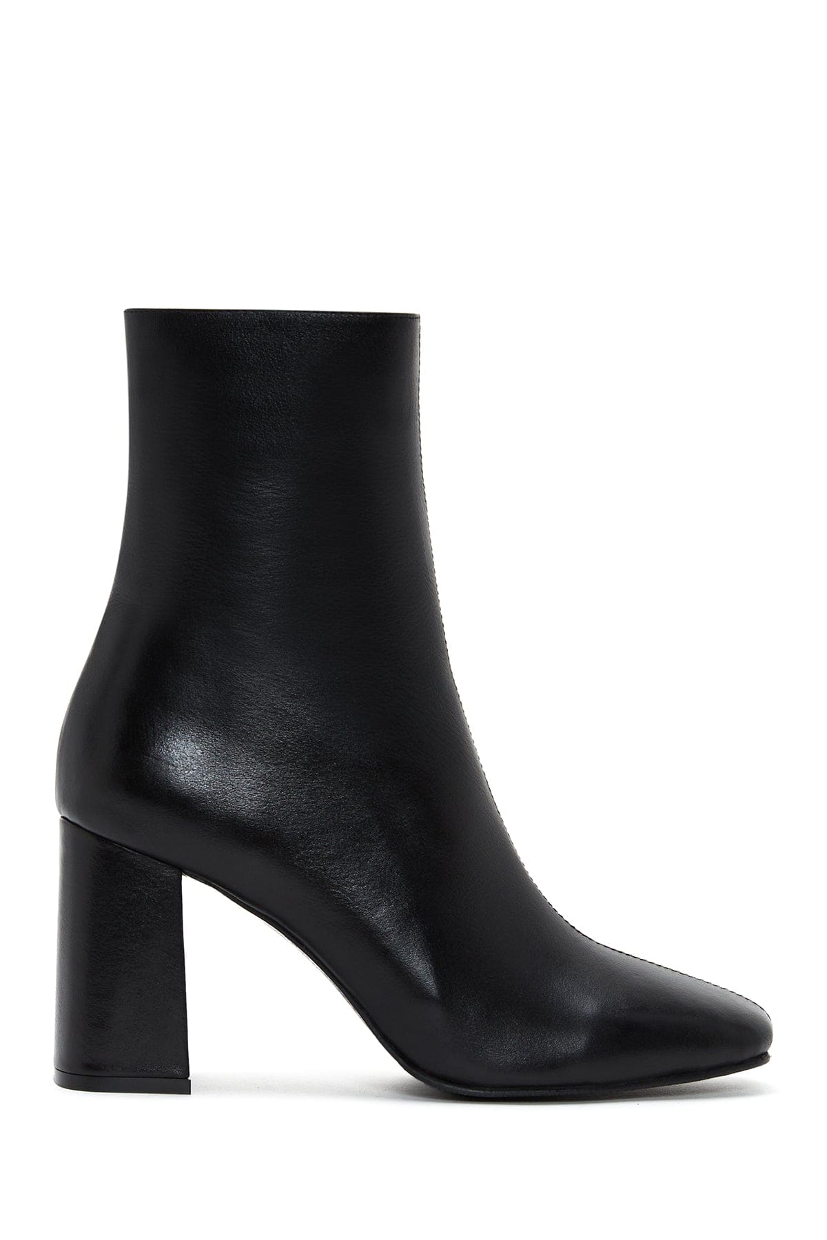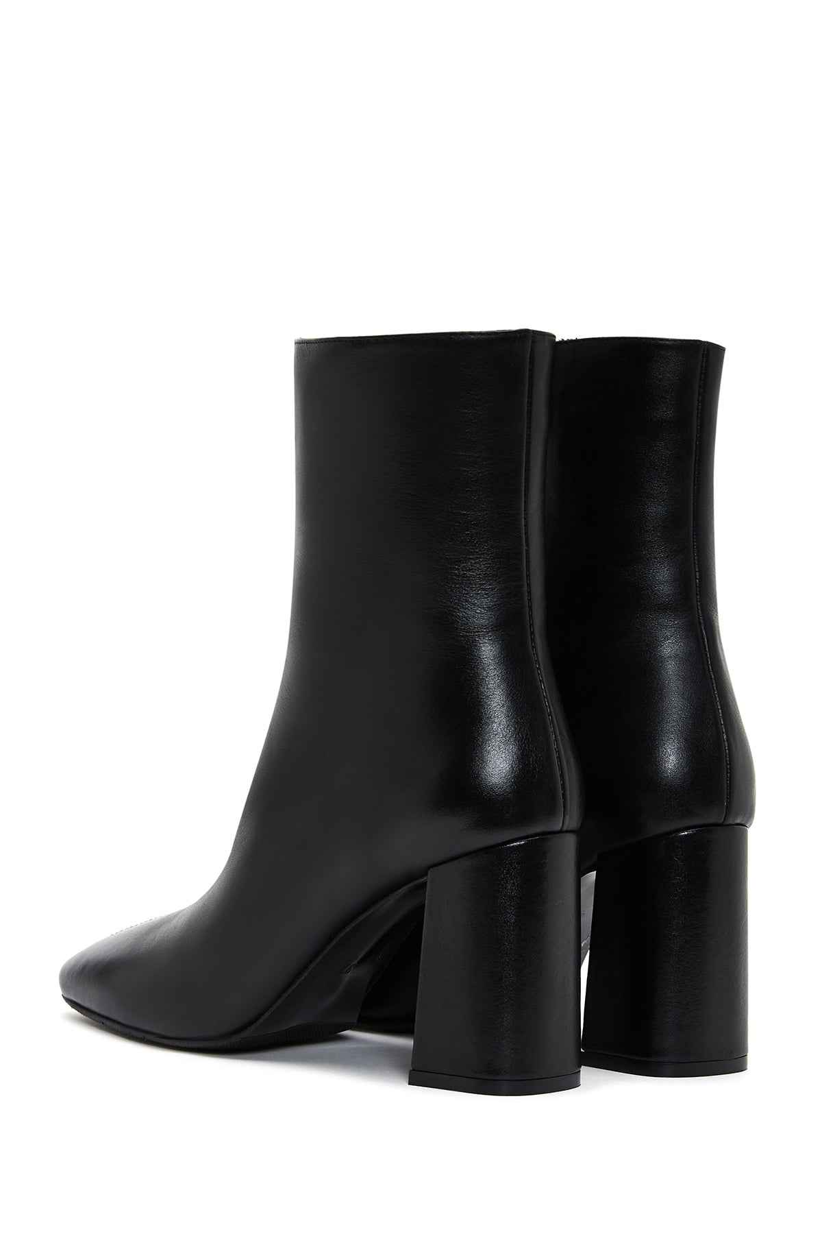 Kadın Siyah Fermuarlı Kalın Topuklu Deri Bot