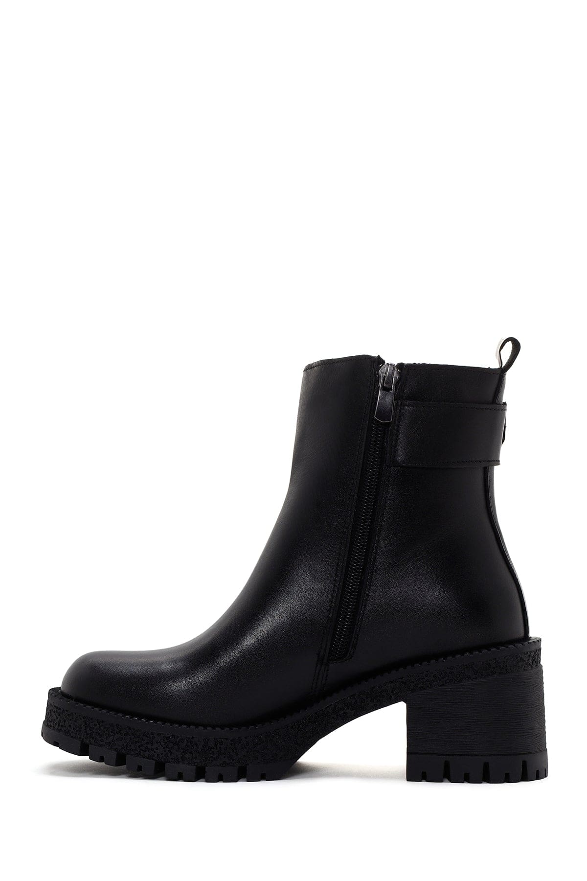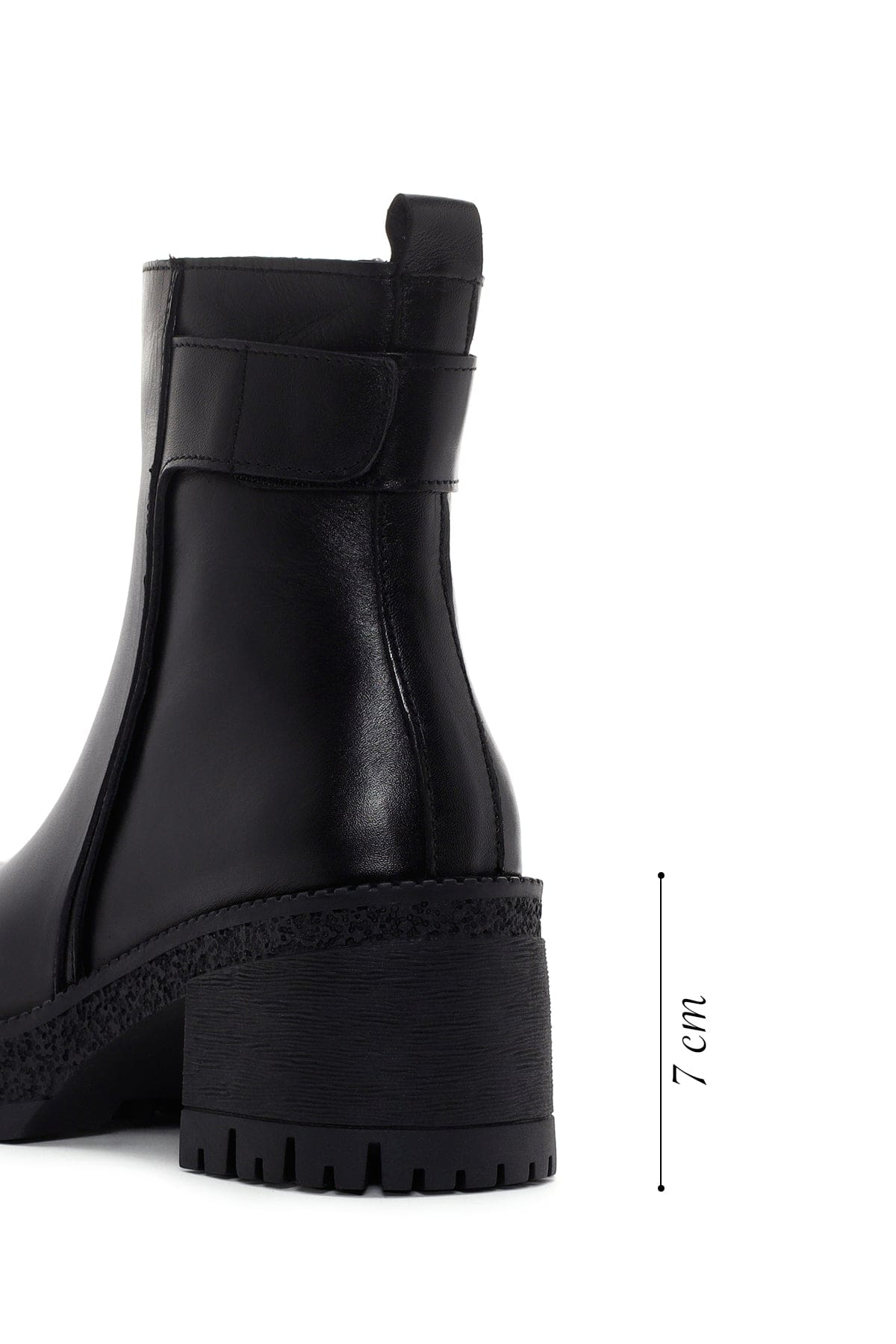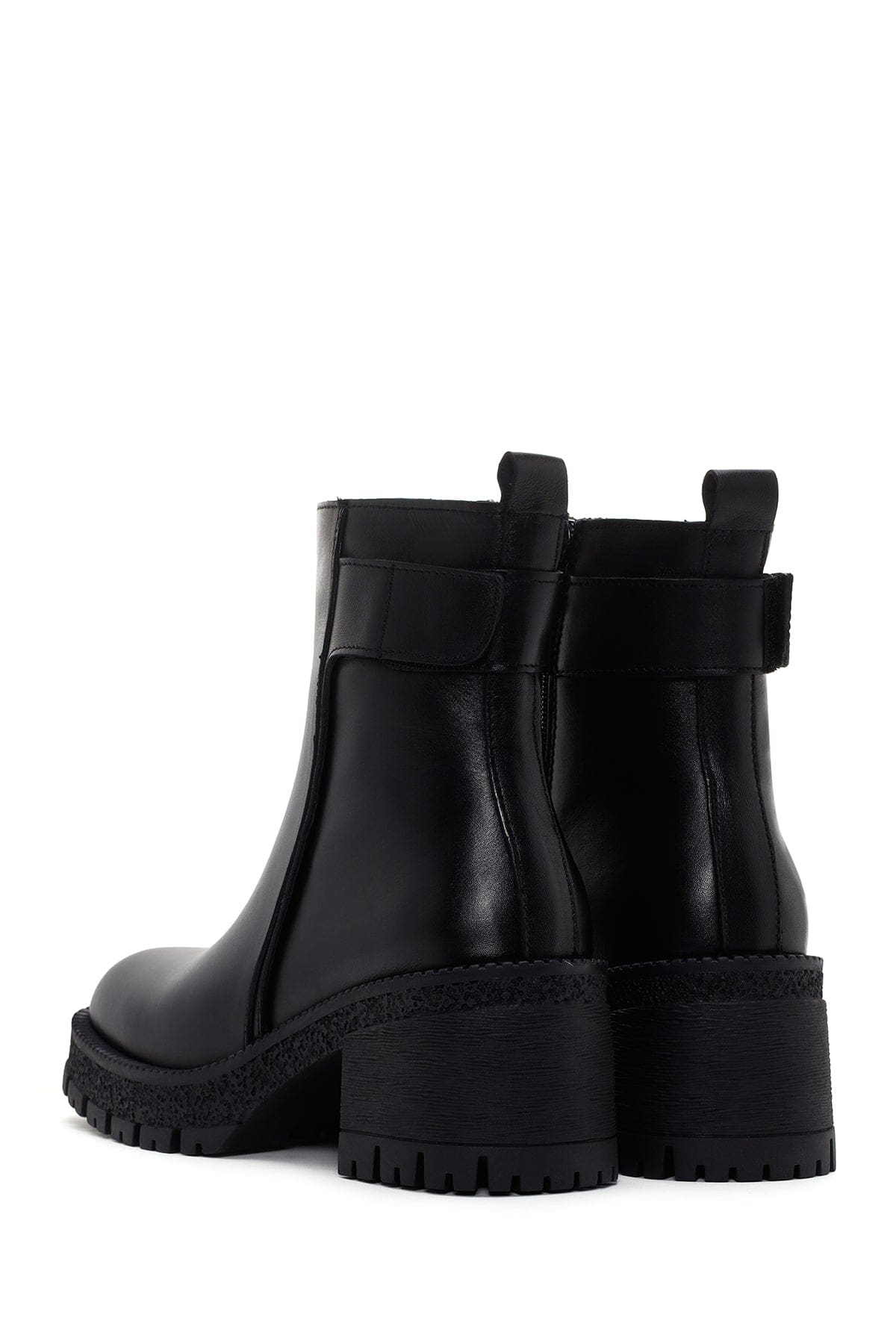Kadın Siyah Fermuarlı Kalın Topuklu Deri Bot