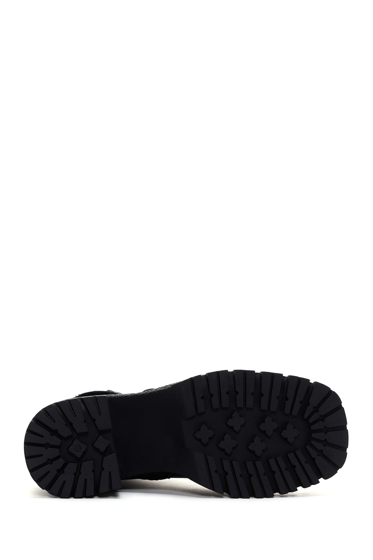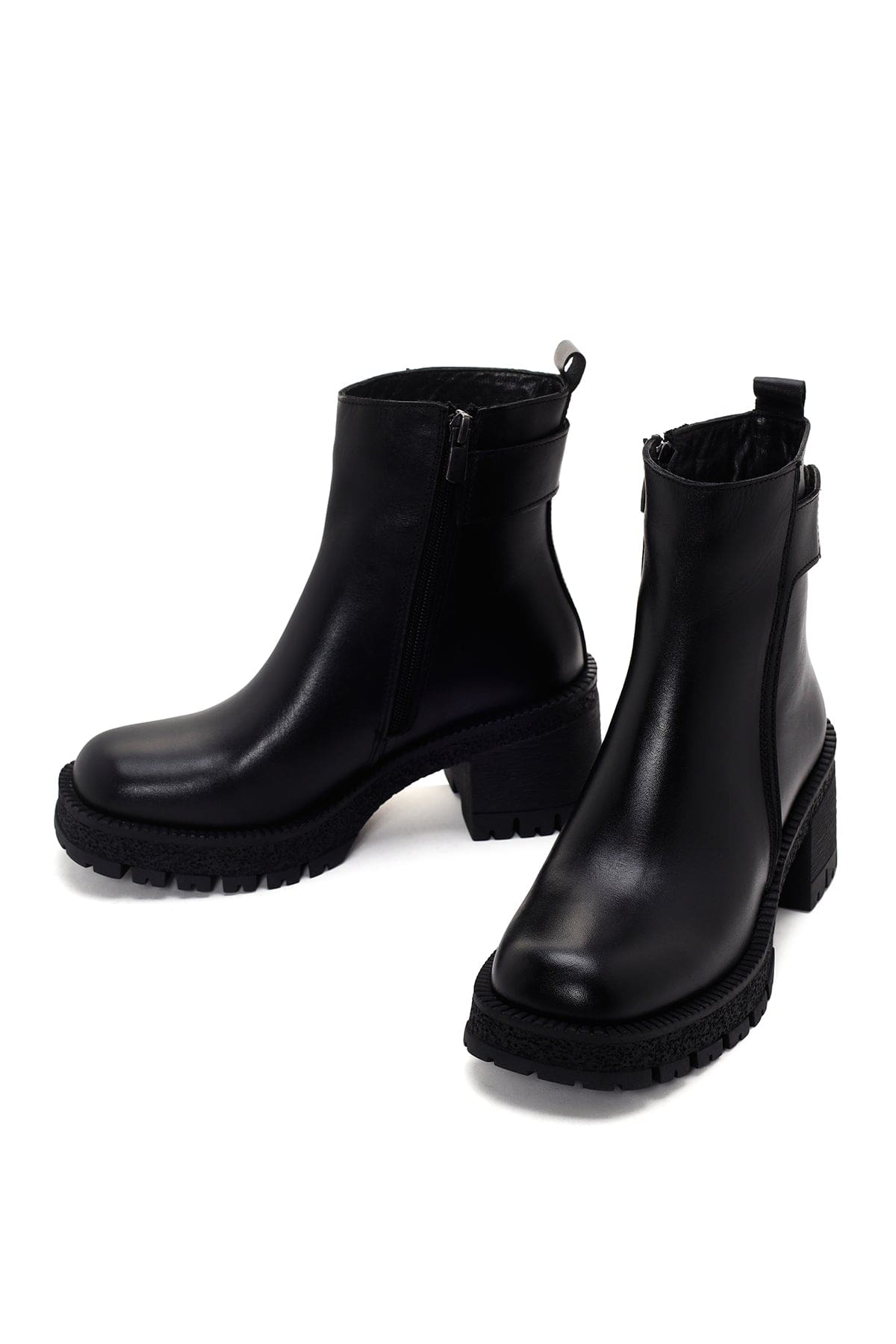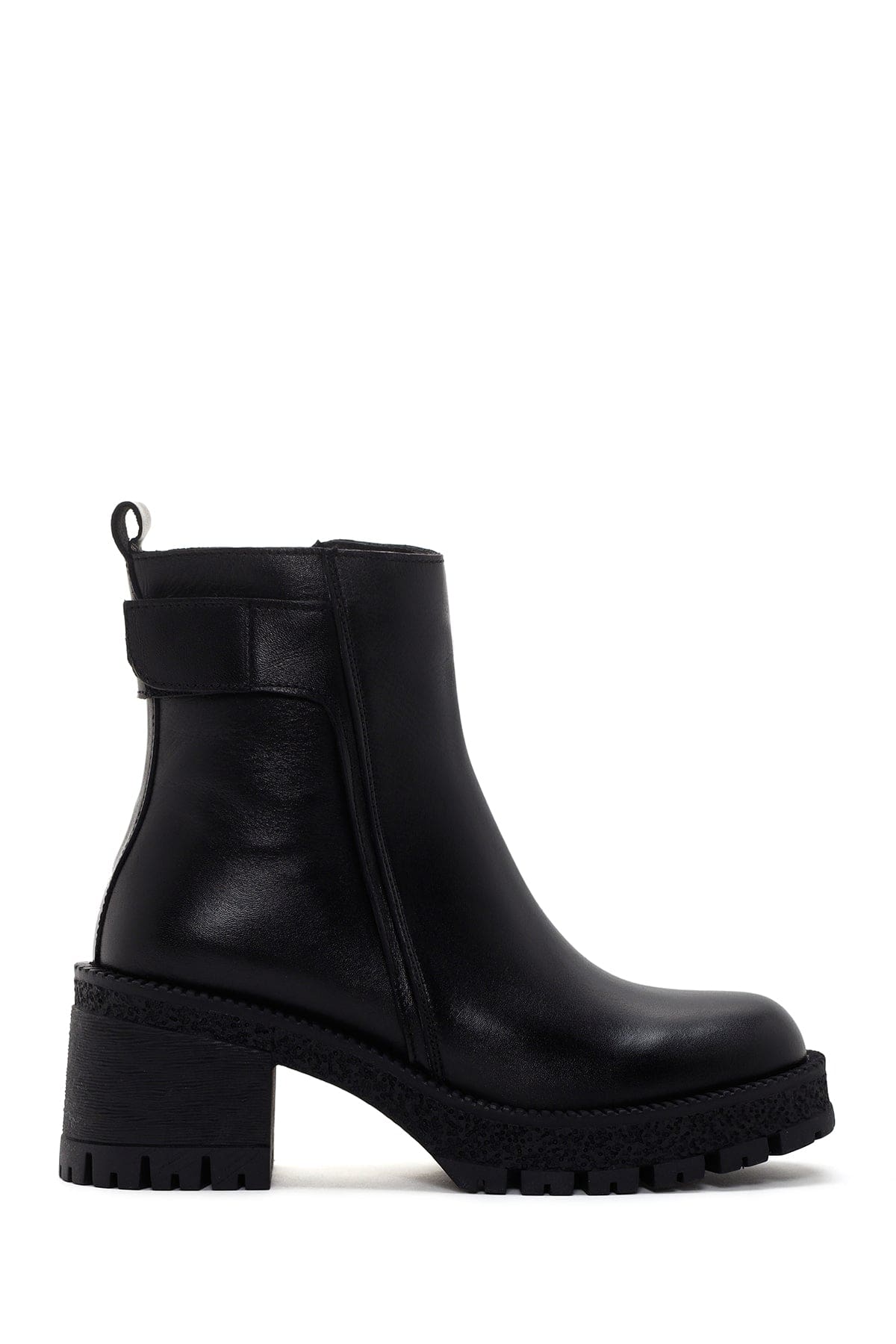 Kadın Siyah Fermuarlı Kalın Topuklu Deri Bot