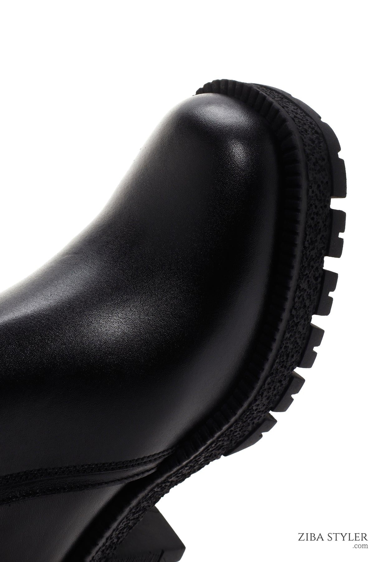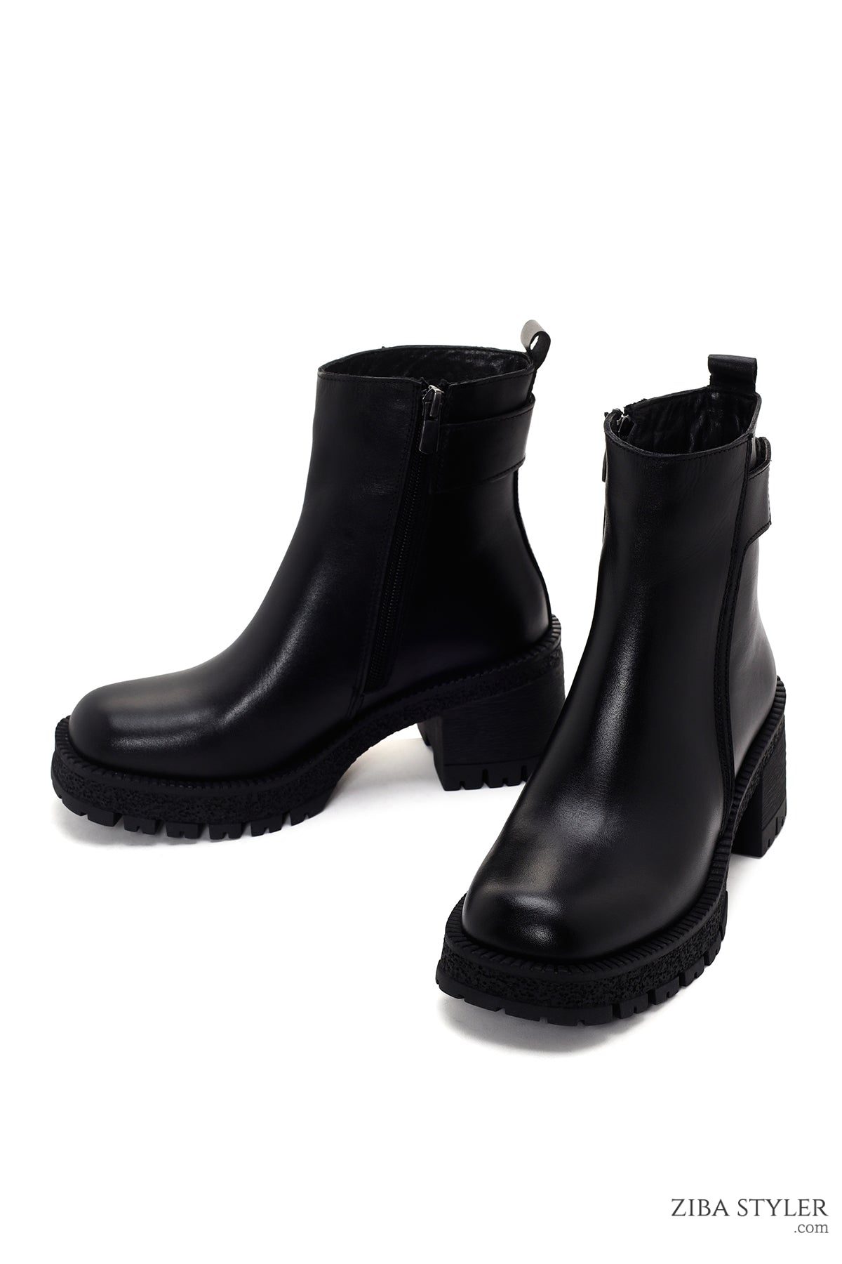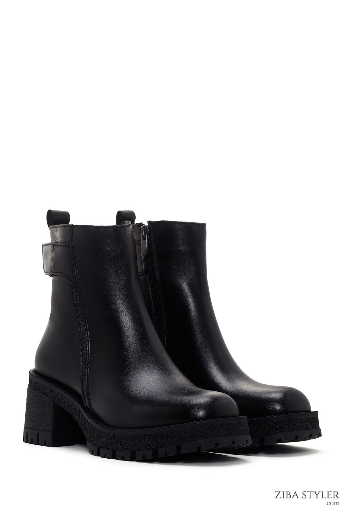 بوت زنانه چرمی مشکی پاشنه ضخیم زیپ دار دری مد