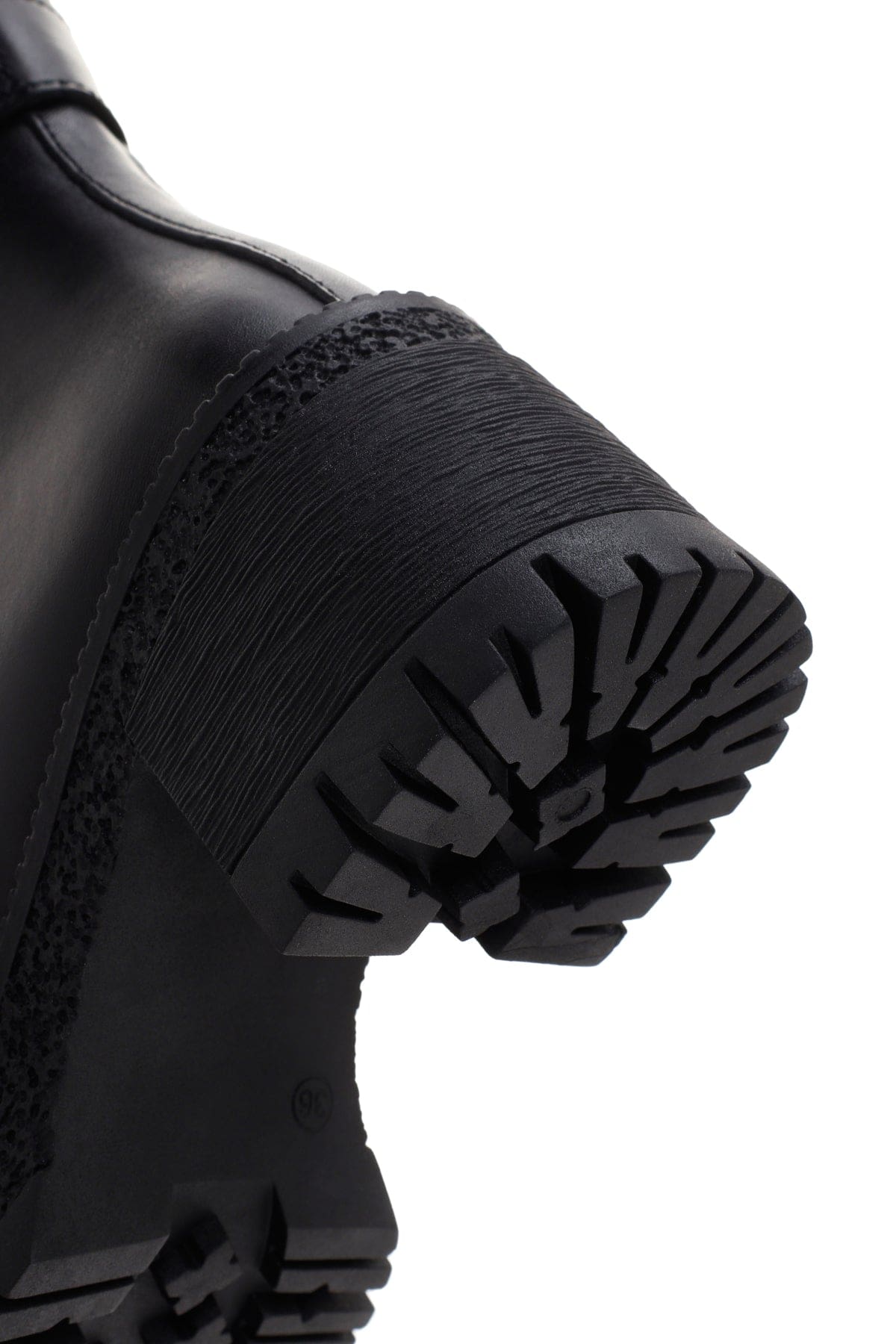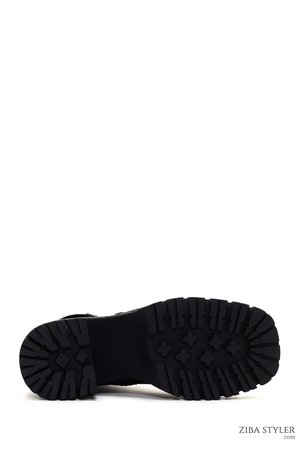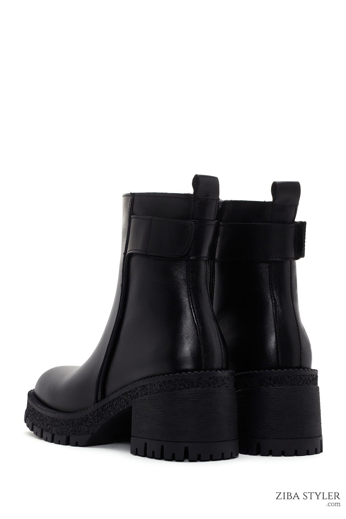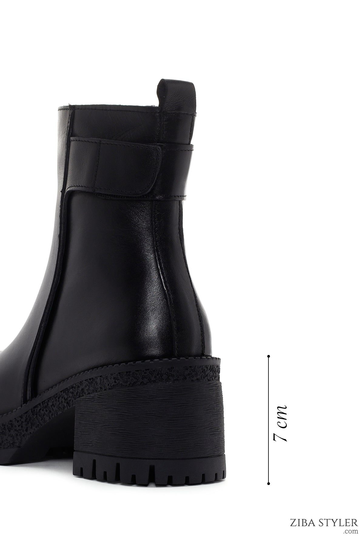 بوت زنانه چرمی مشکی پاشنه ضخیم زیپ دار دری مد