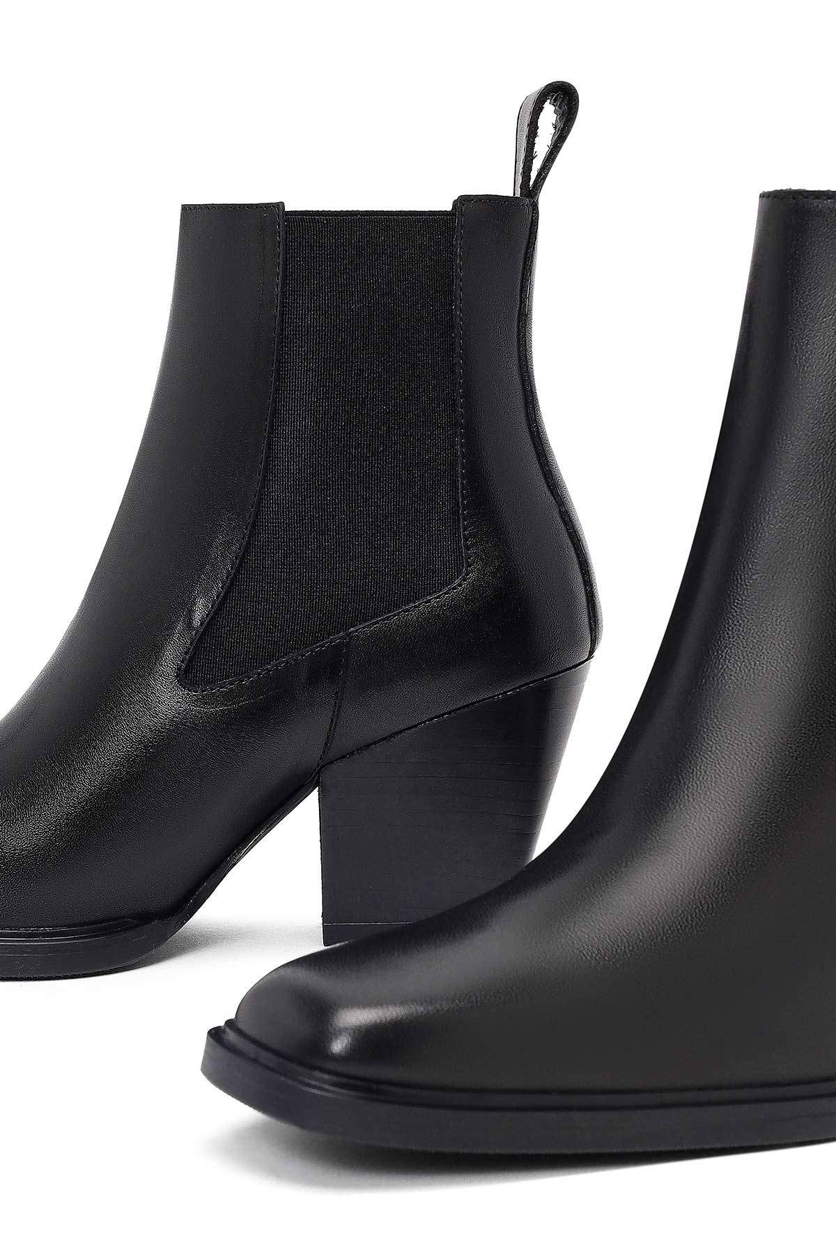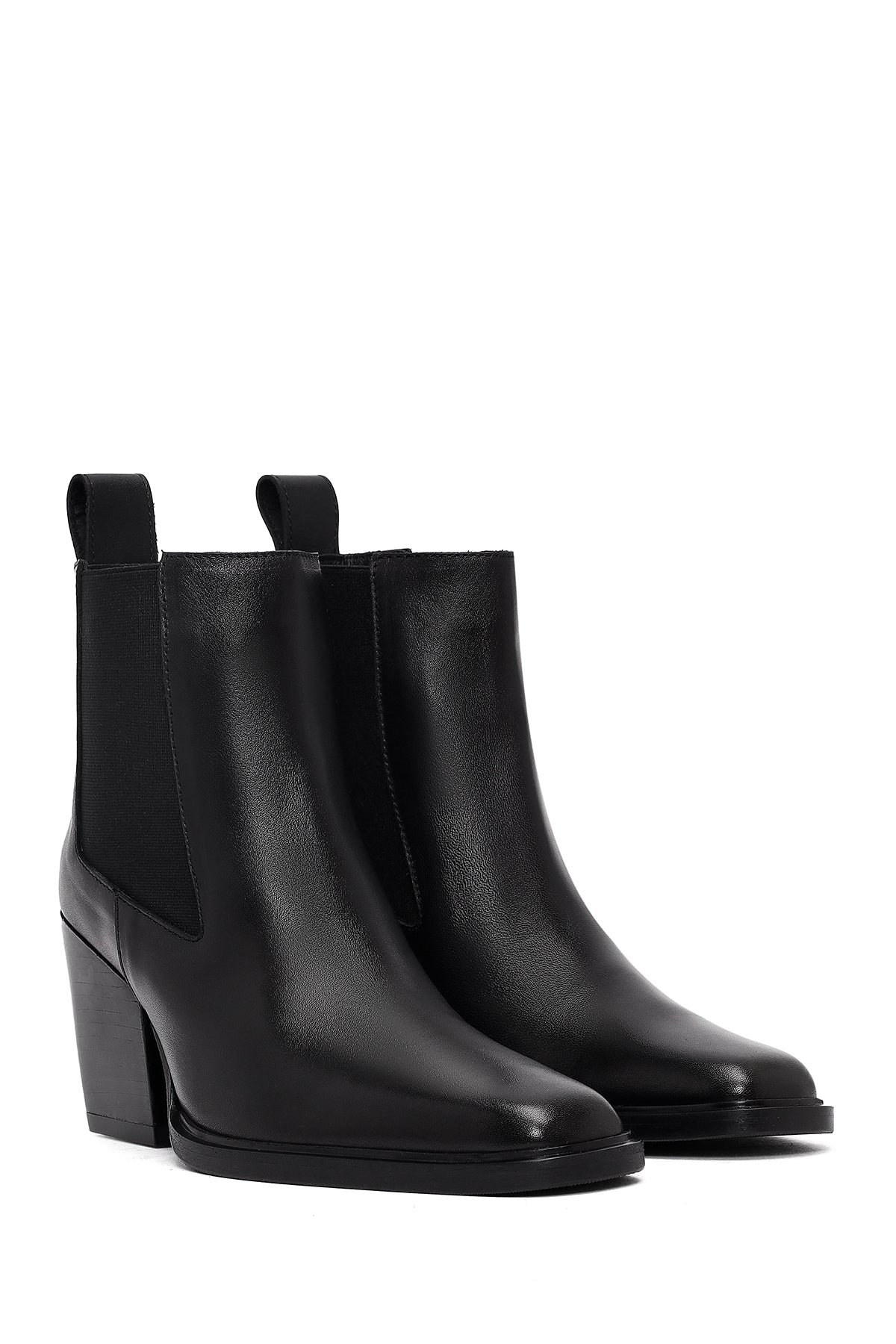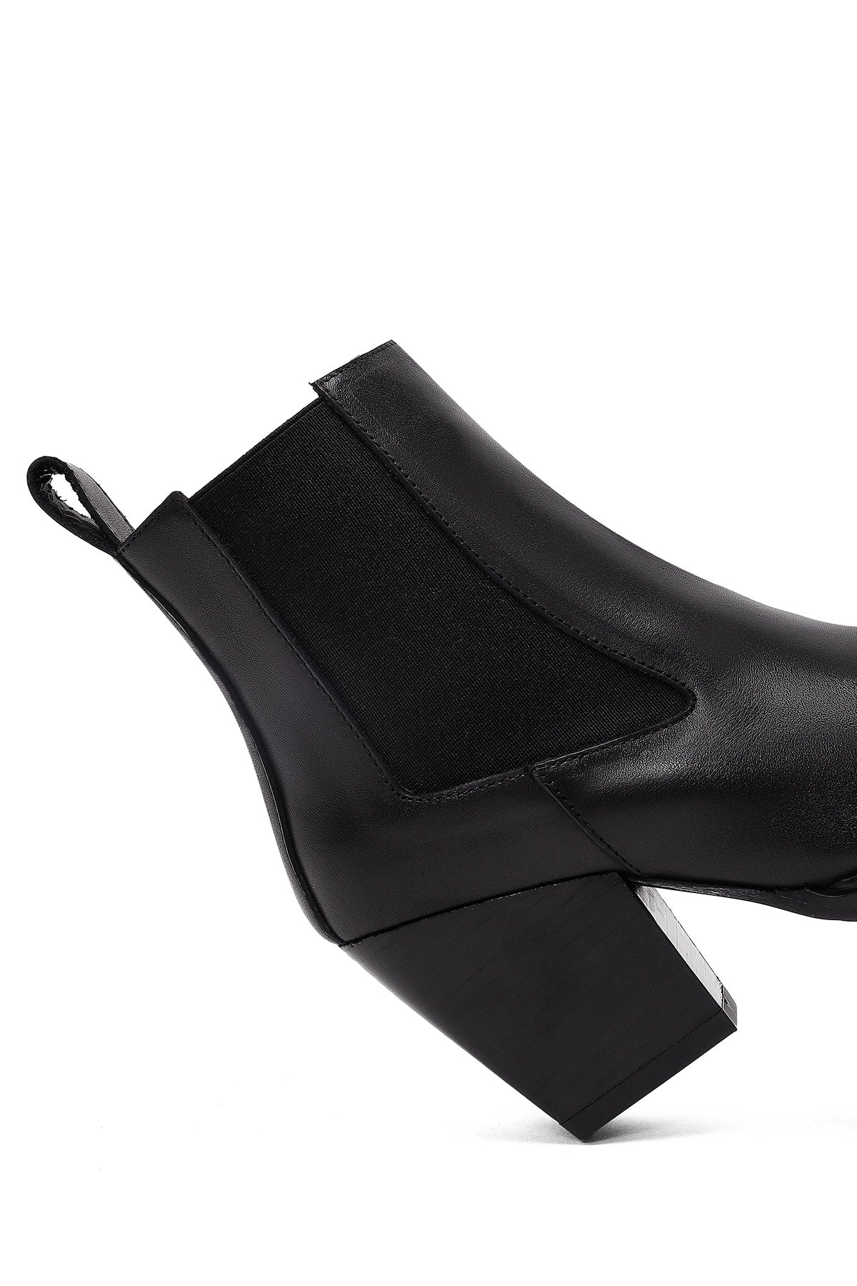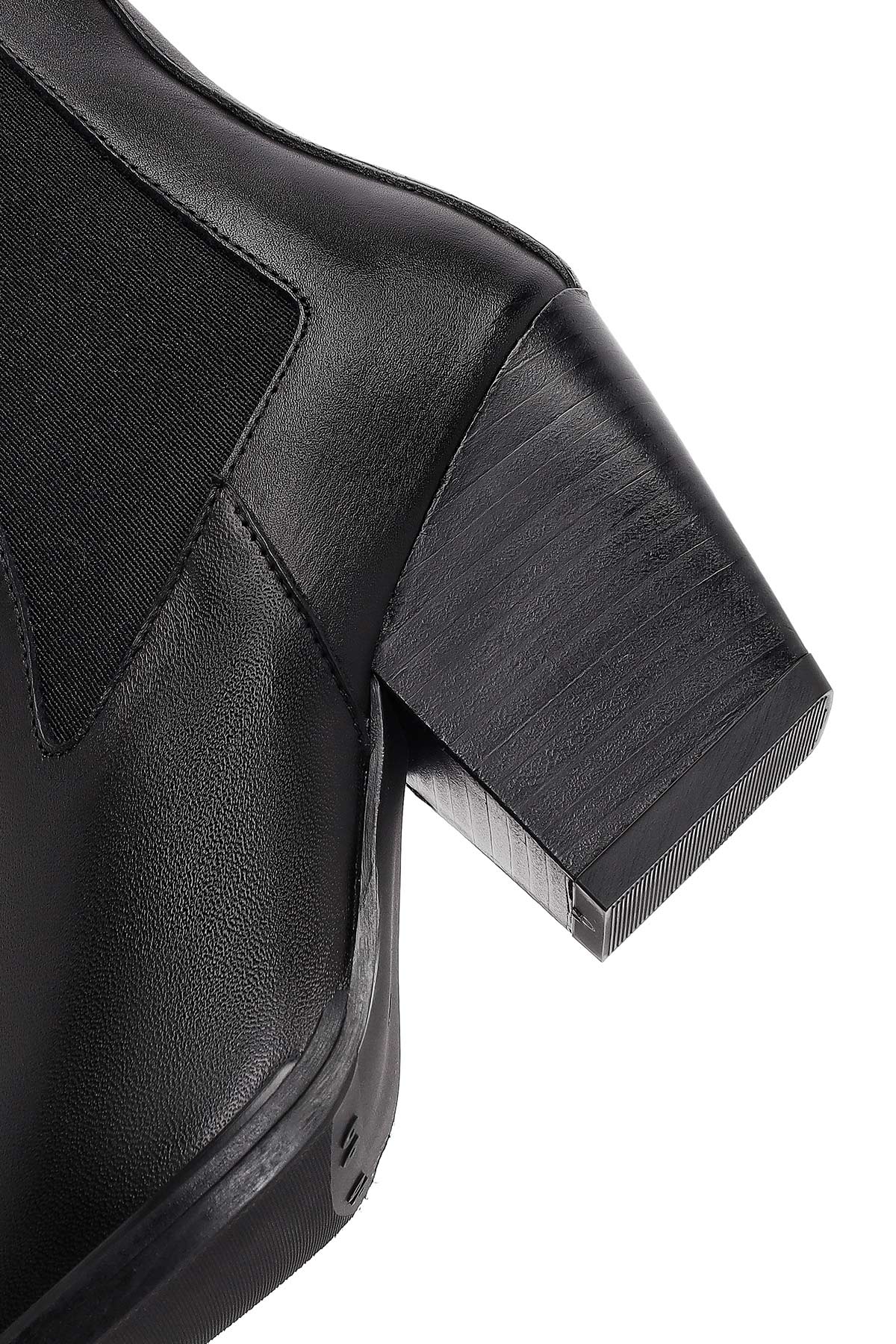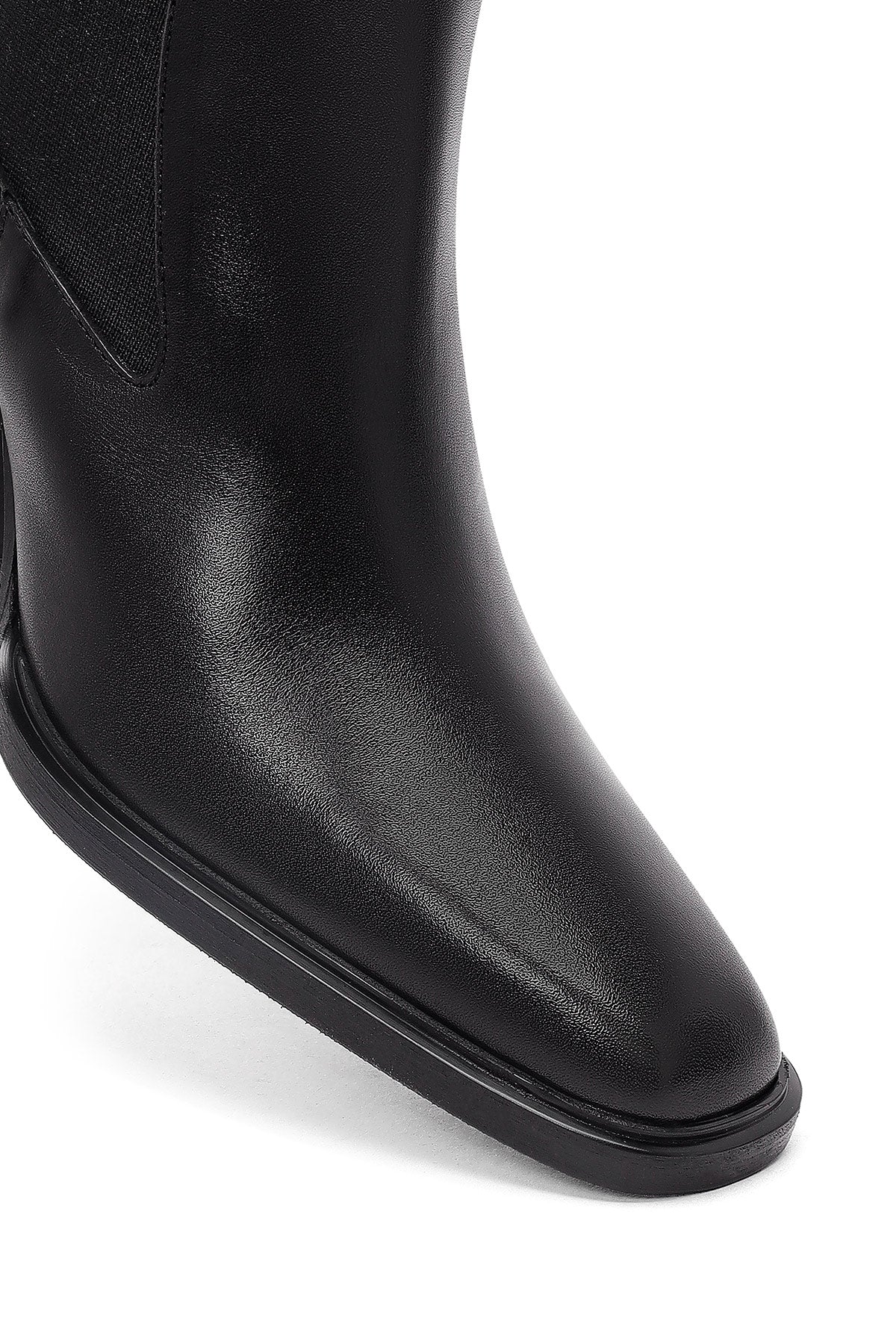 Kadın Siyah Kalın Topuklu Deri Chelsea Bot