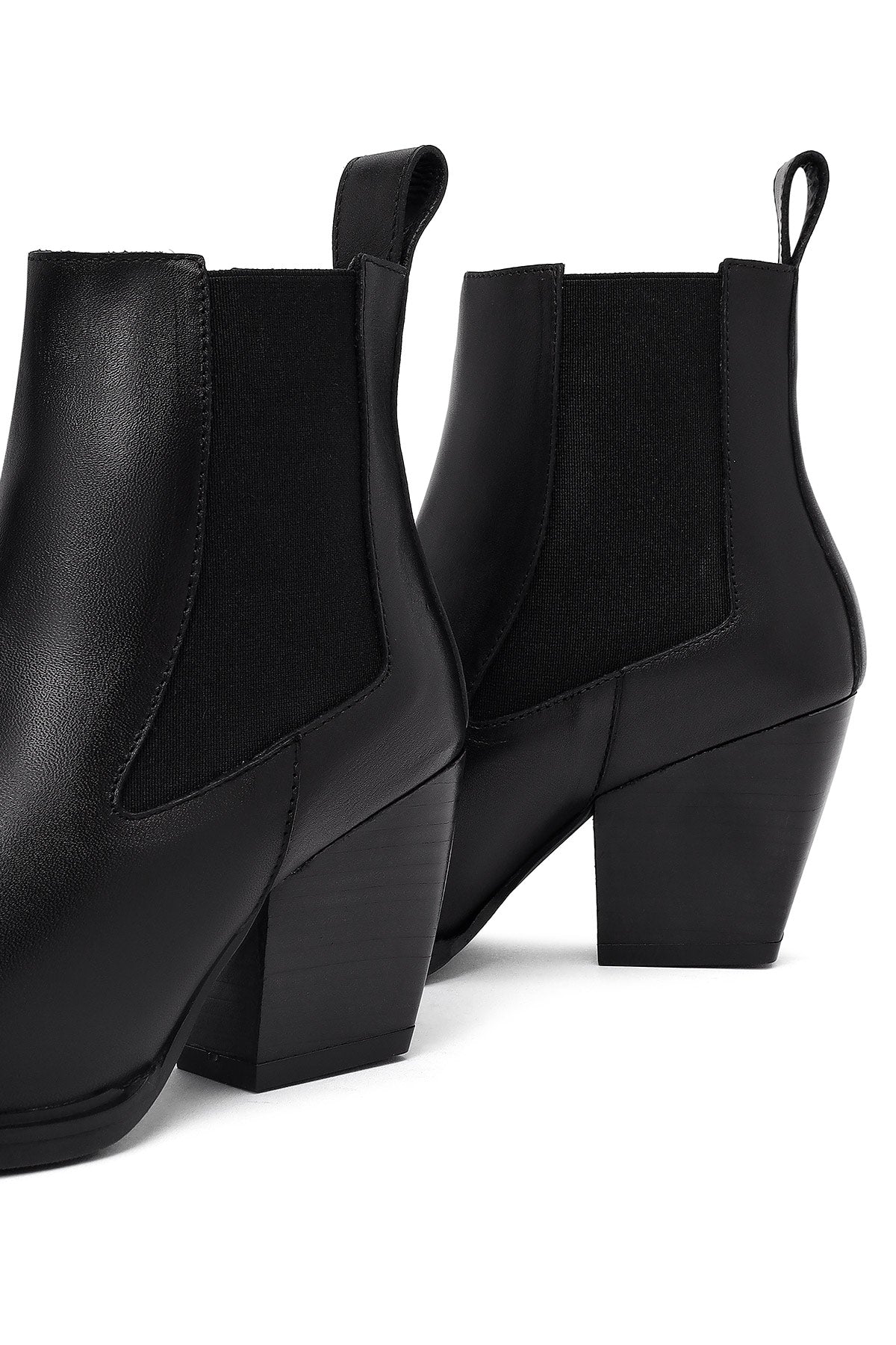 بوت چلسی زنانه چرمی مشکی پاشنه ضخیم دری مد