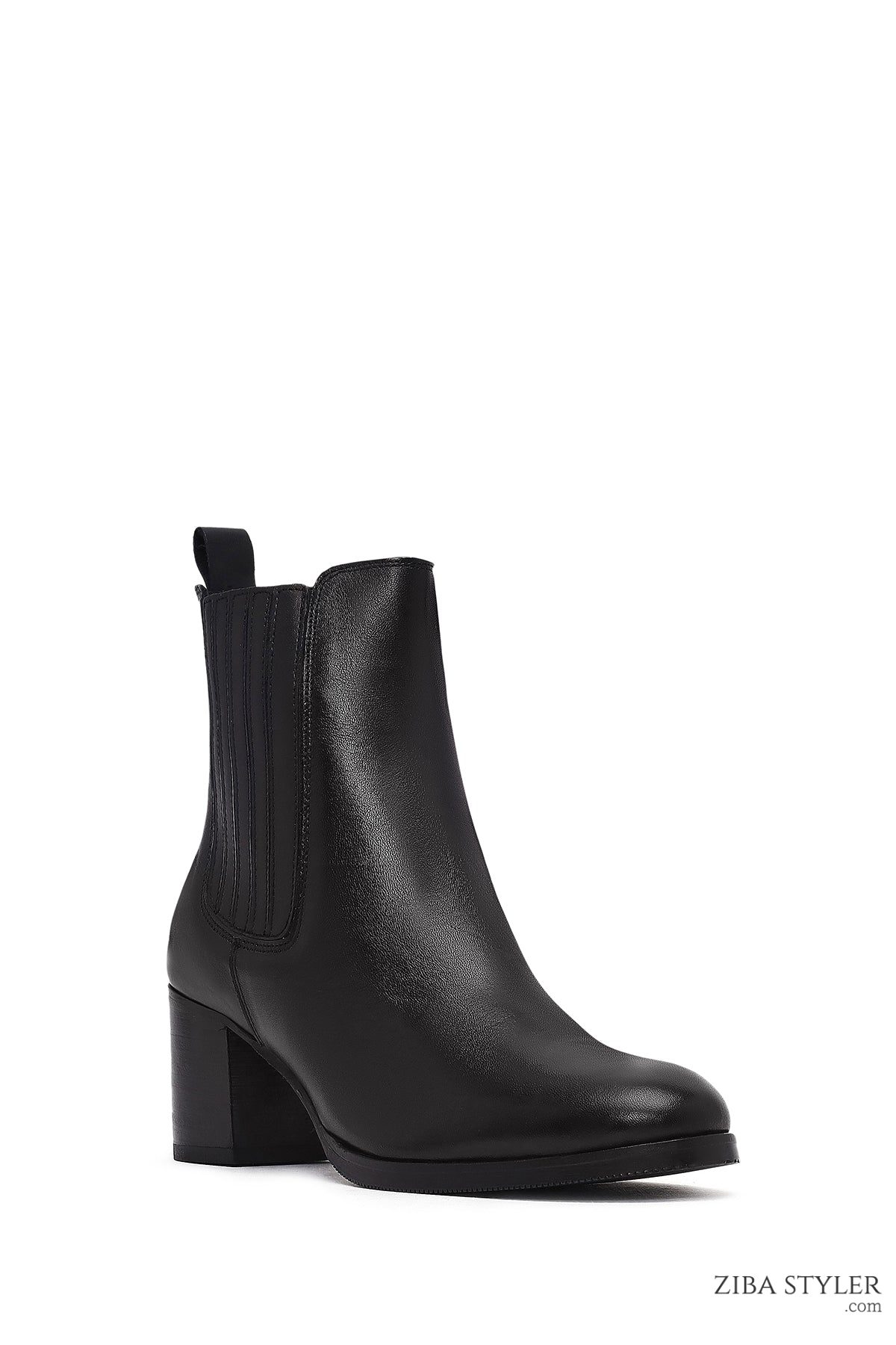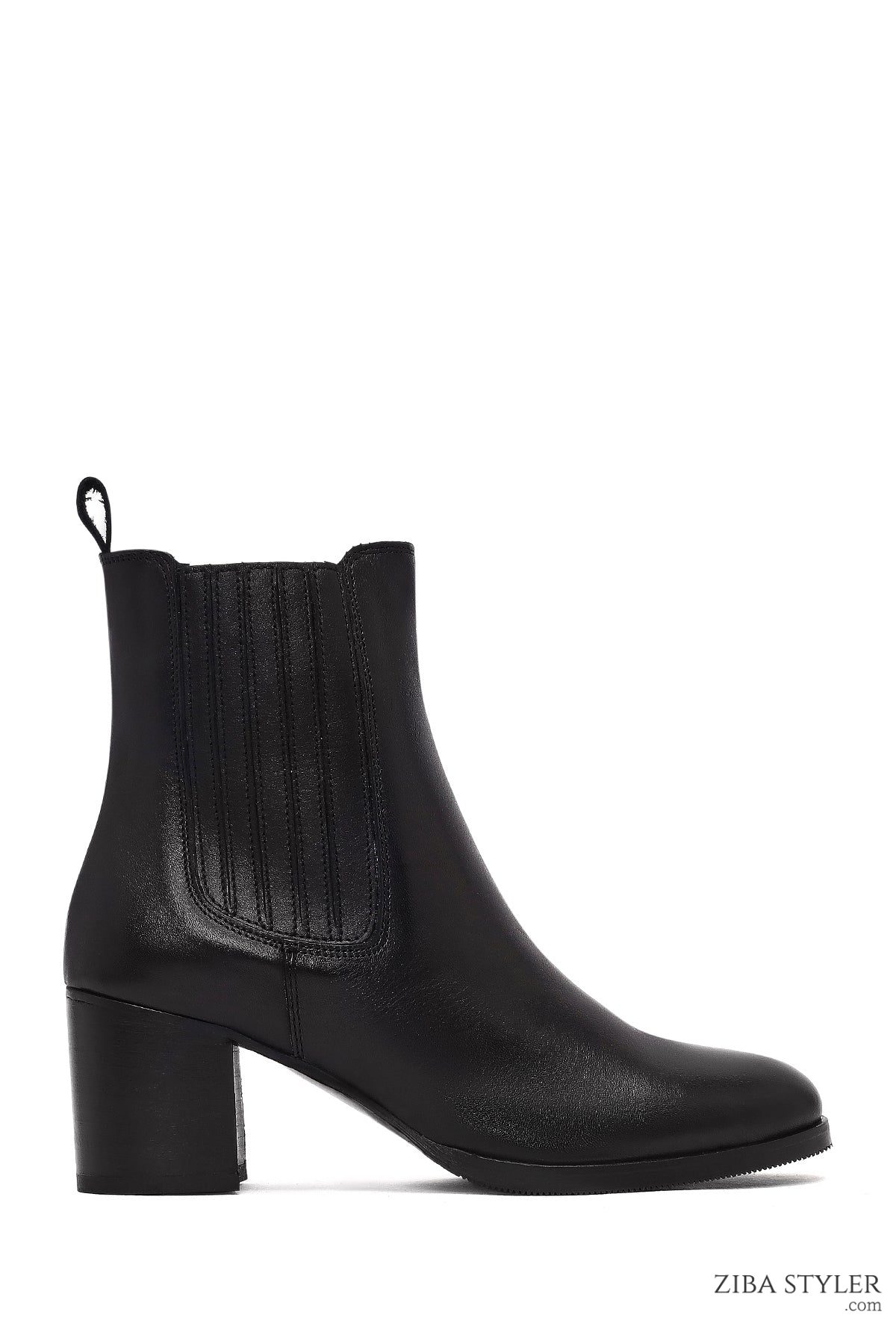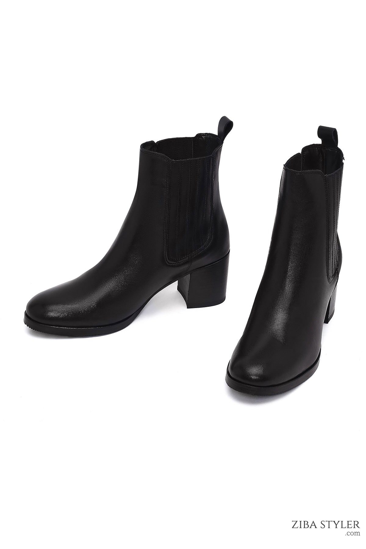 بوت چلسی زنانه چرمی مشکی پاشنه ضخیم دری مد