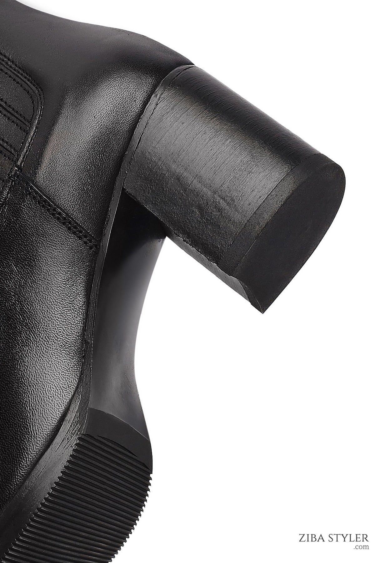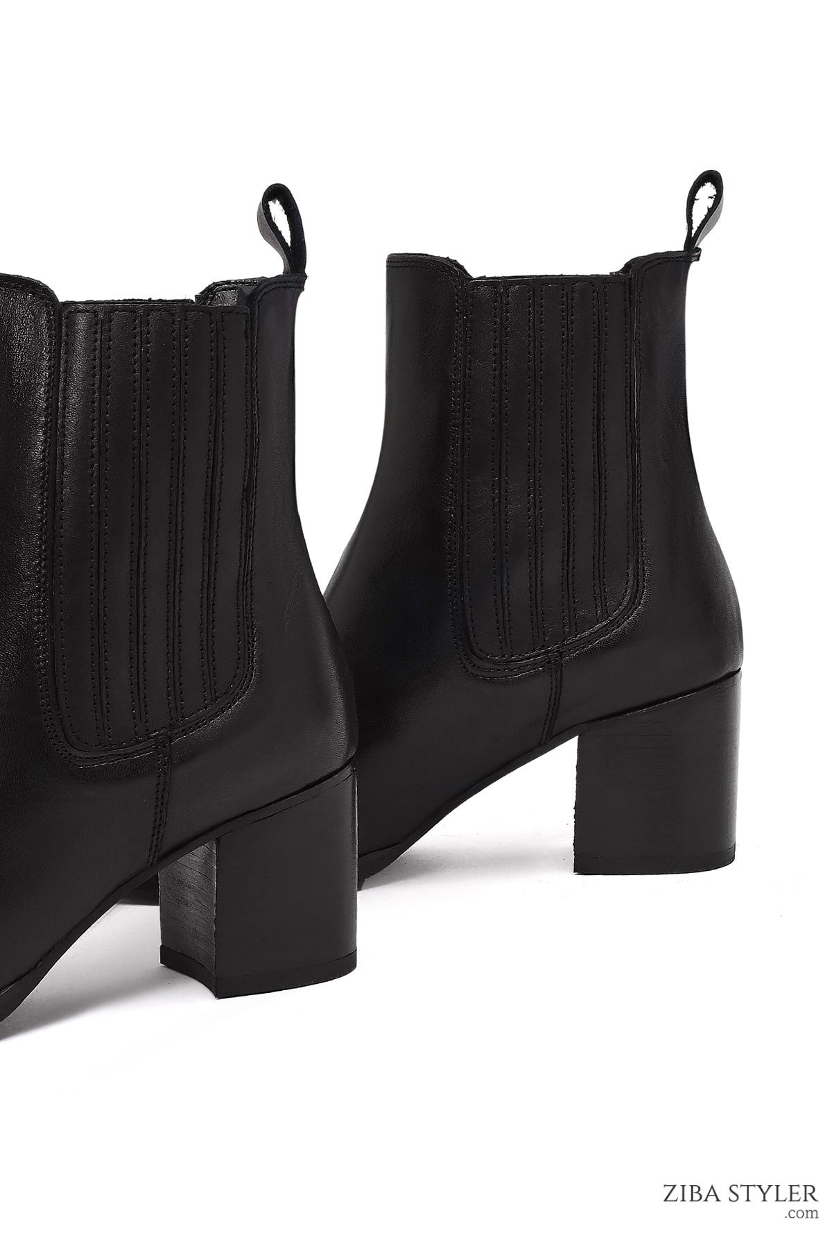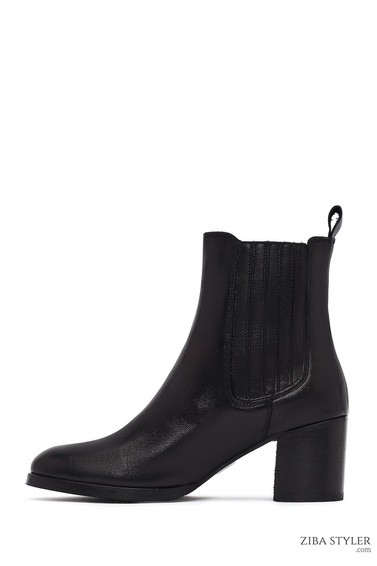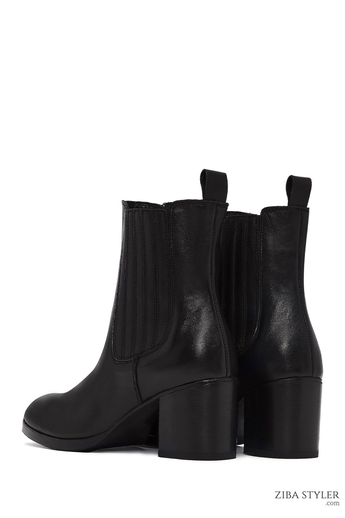 بوت چلسی زنانه چرمی مشکی پاشنه ضخیم دری مد