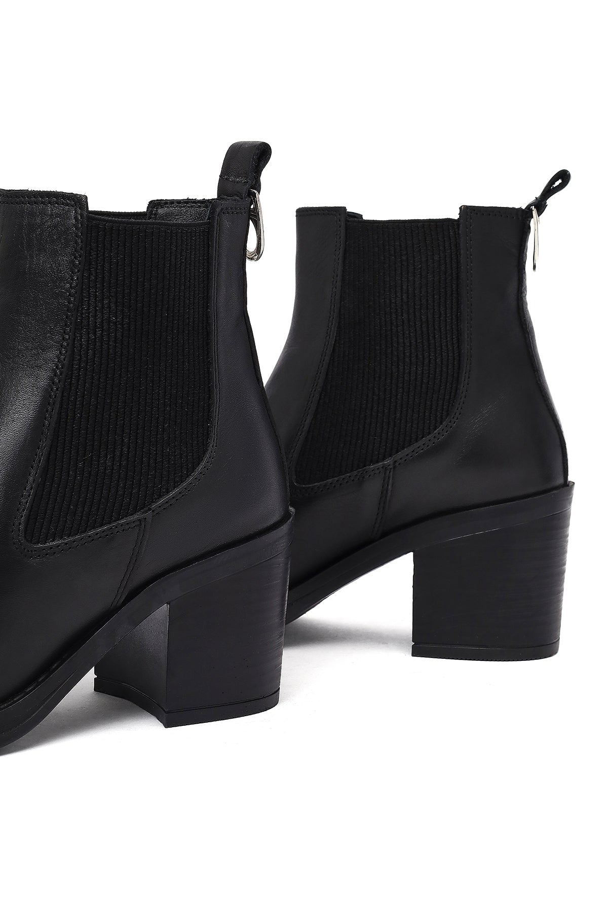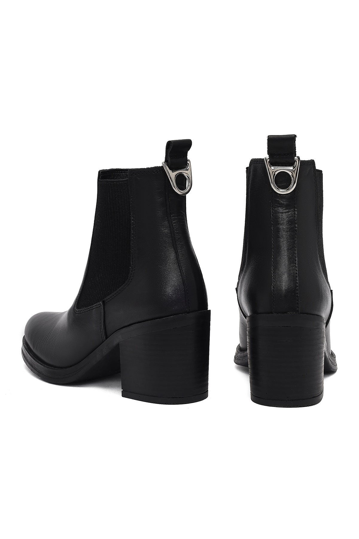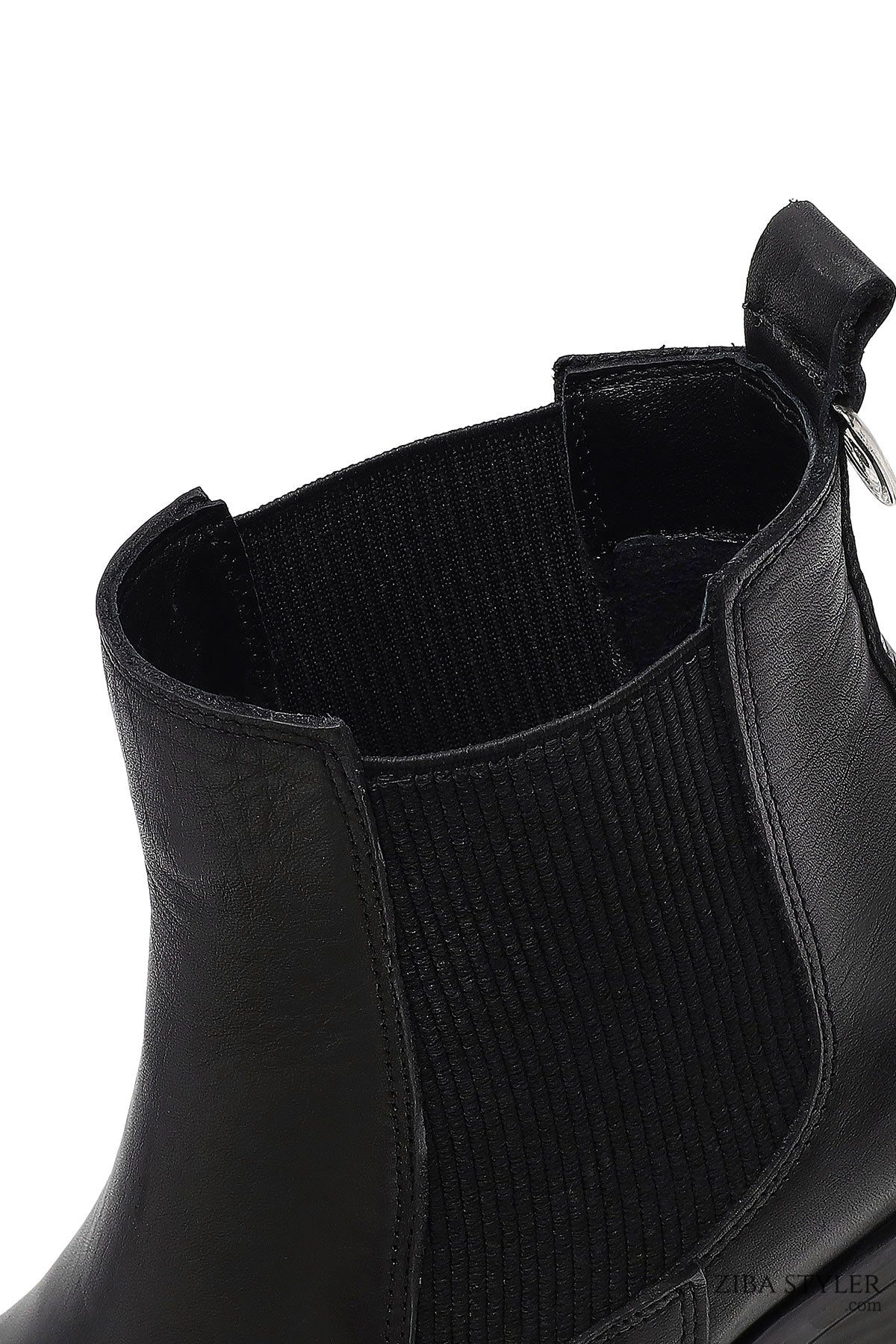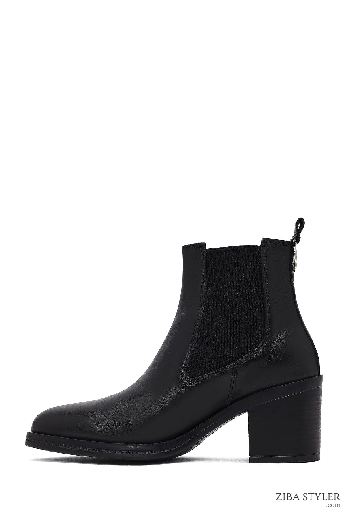 بوت زنانه چرمی مشکی پاشنه ضخیم کابوی دری مد