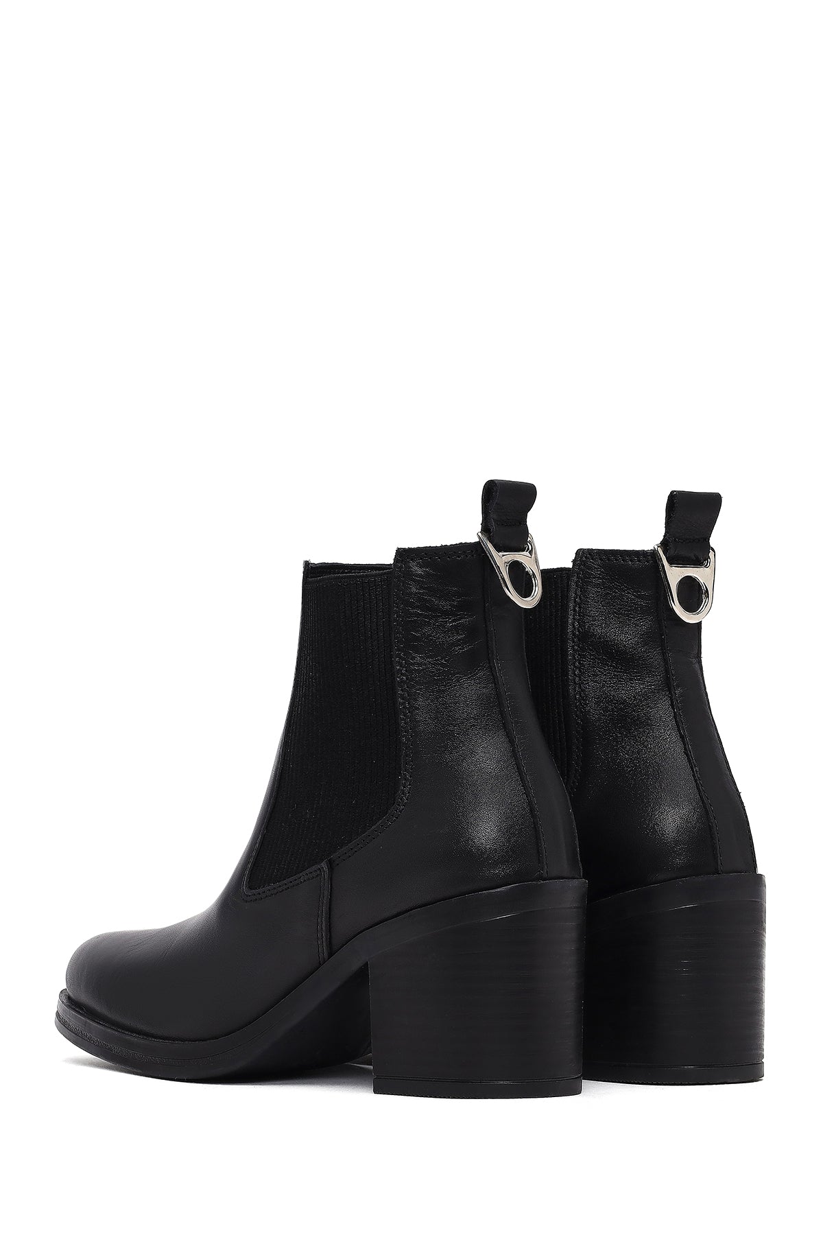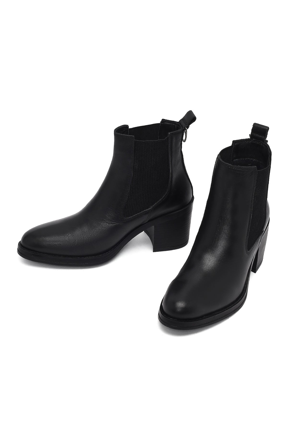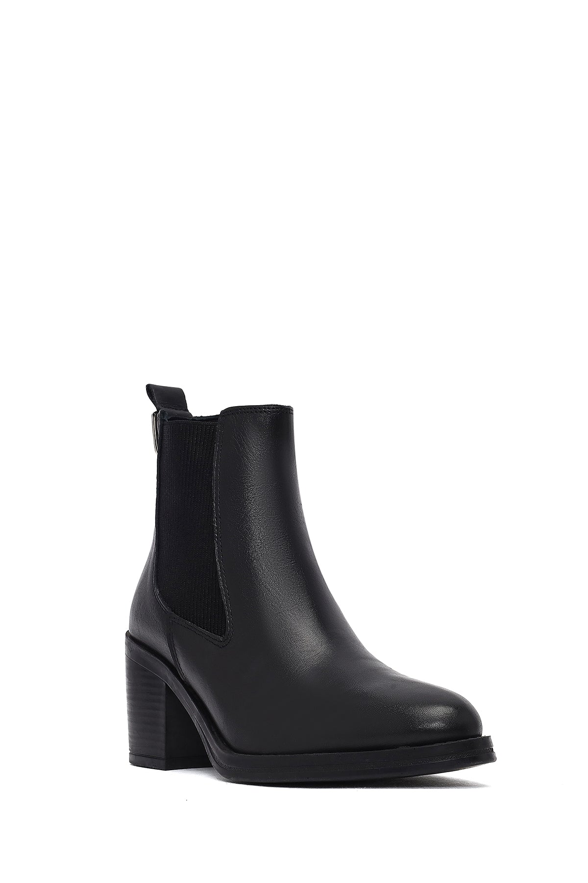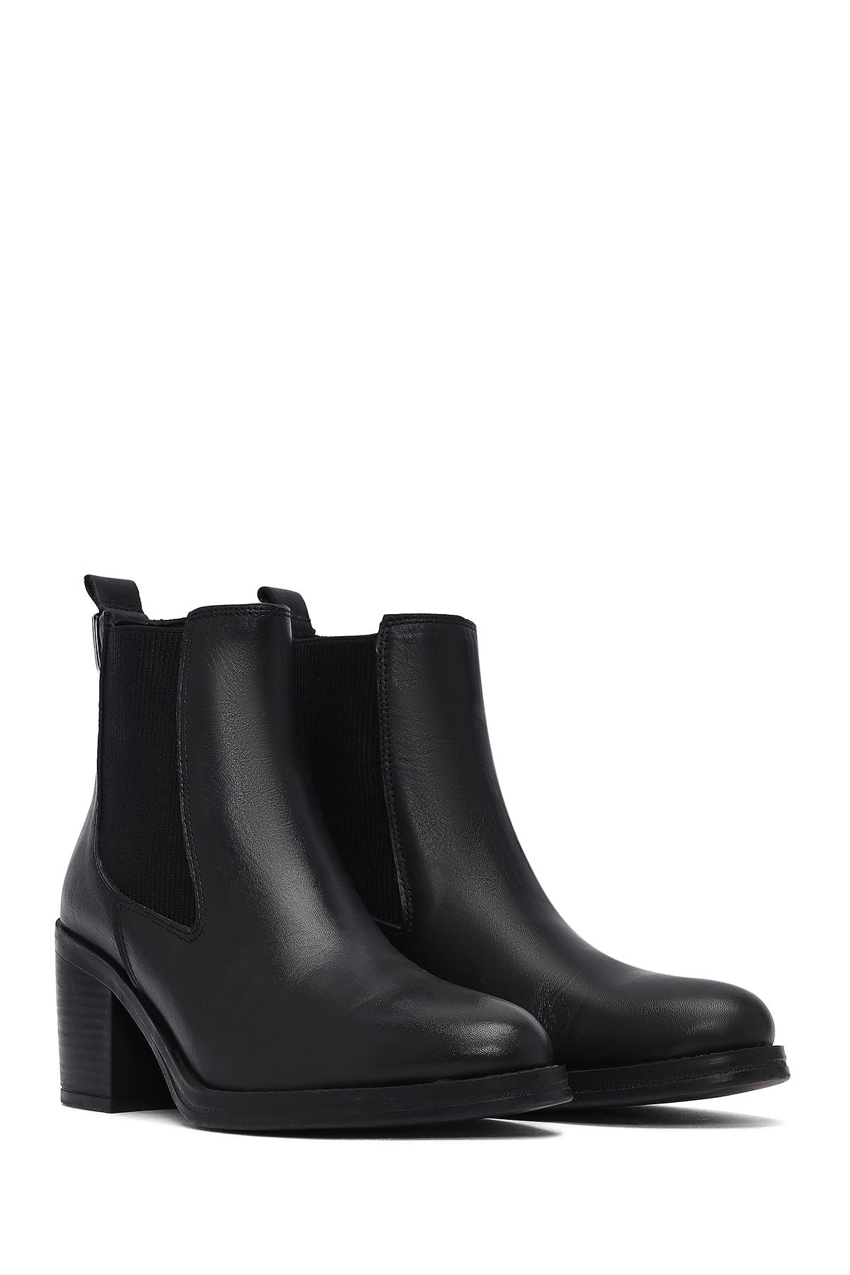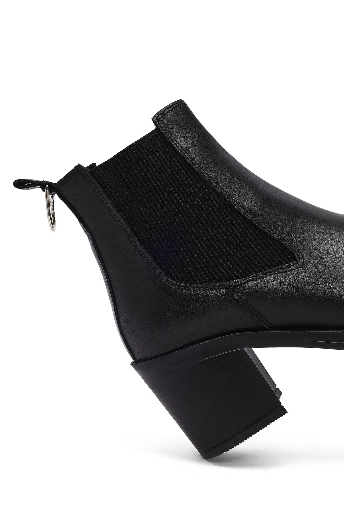 بوت زنانه چرمی مشکی پاشنه ضخیم کابوی دری مد