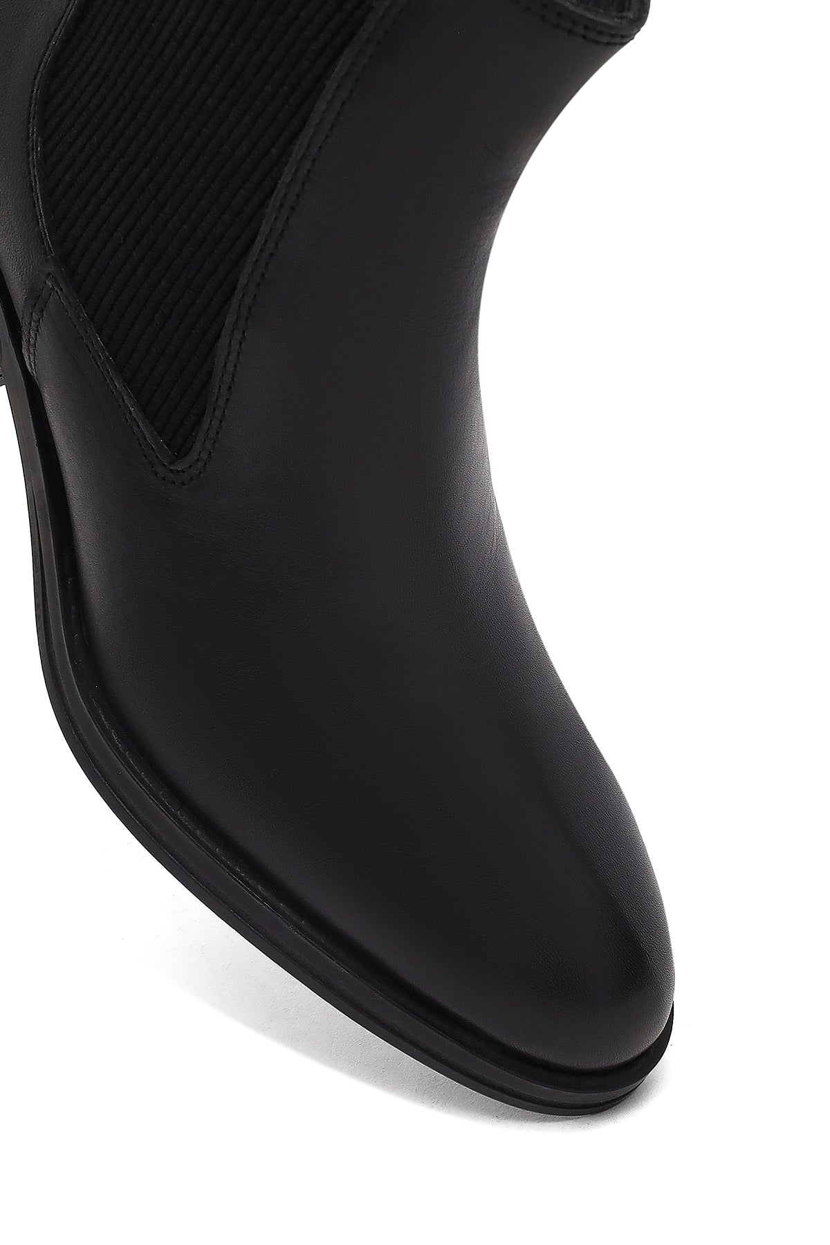 Kadın Siyah Kalın Topuklu Deri Kovboy Bot
