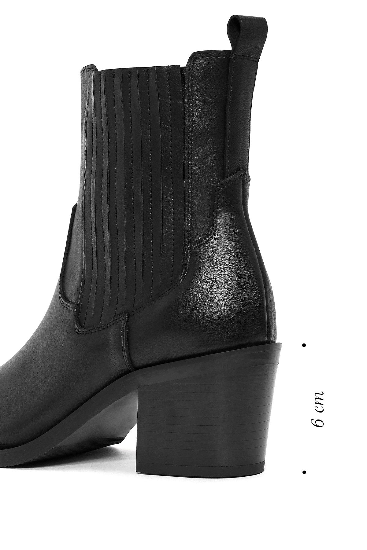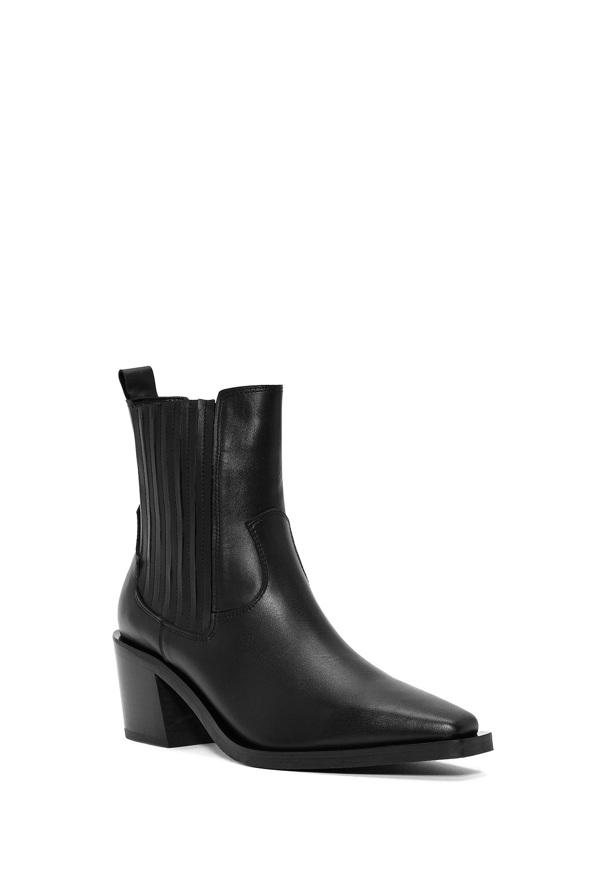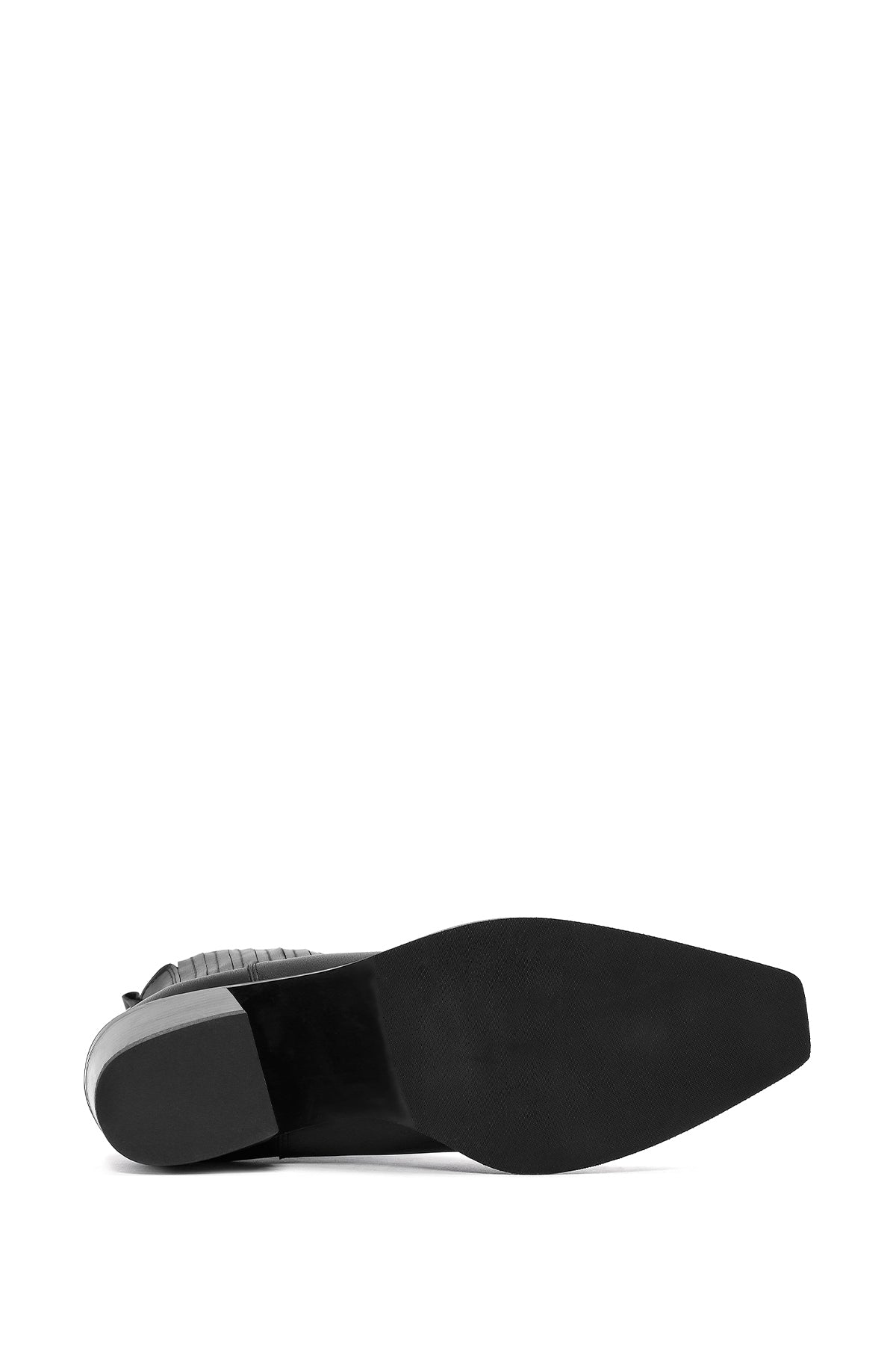 Kadın Siyah Kalın Topuklu Deri Kovboy Bot
