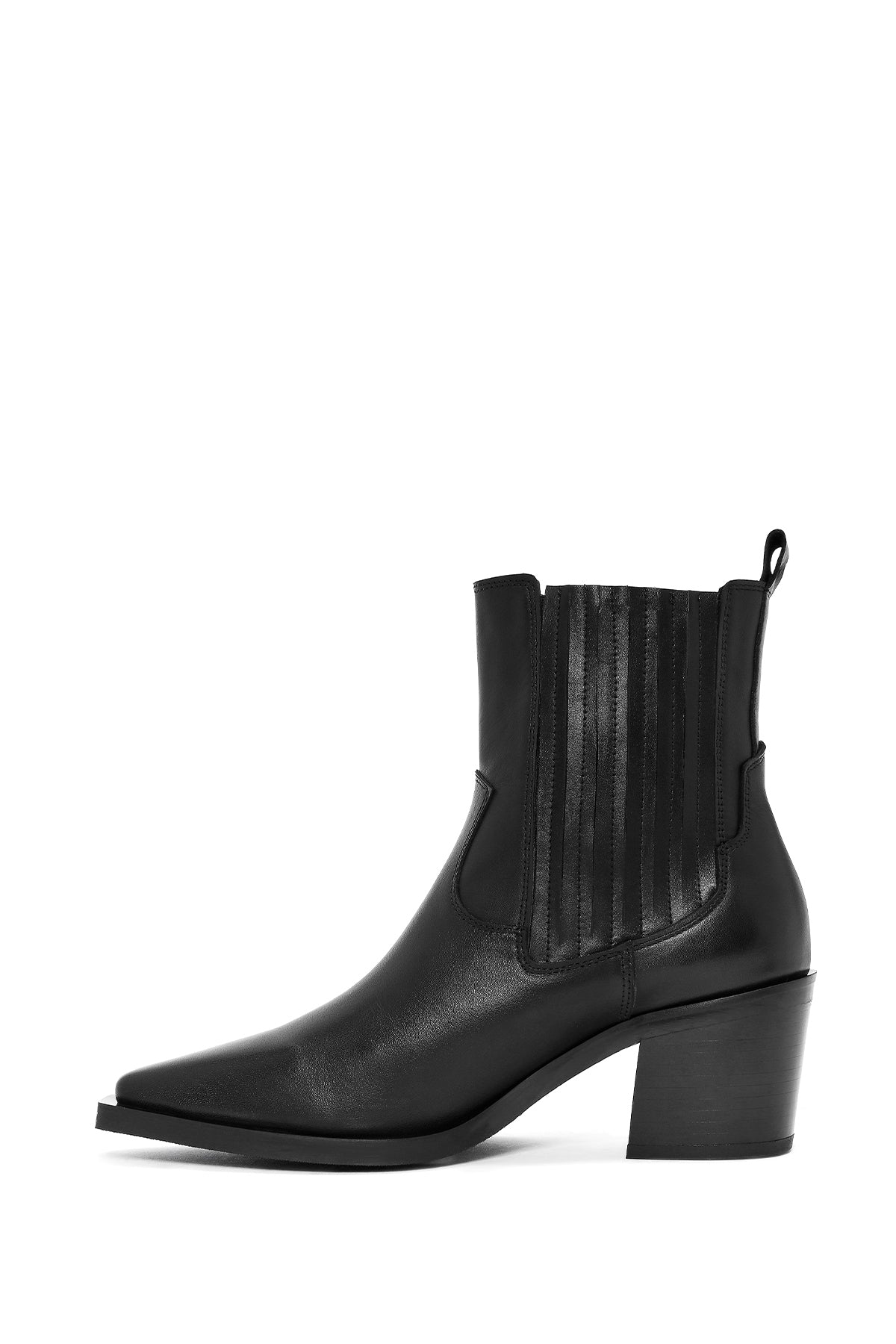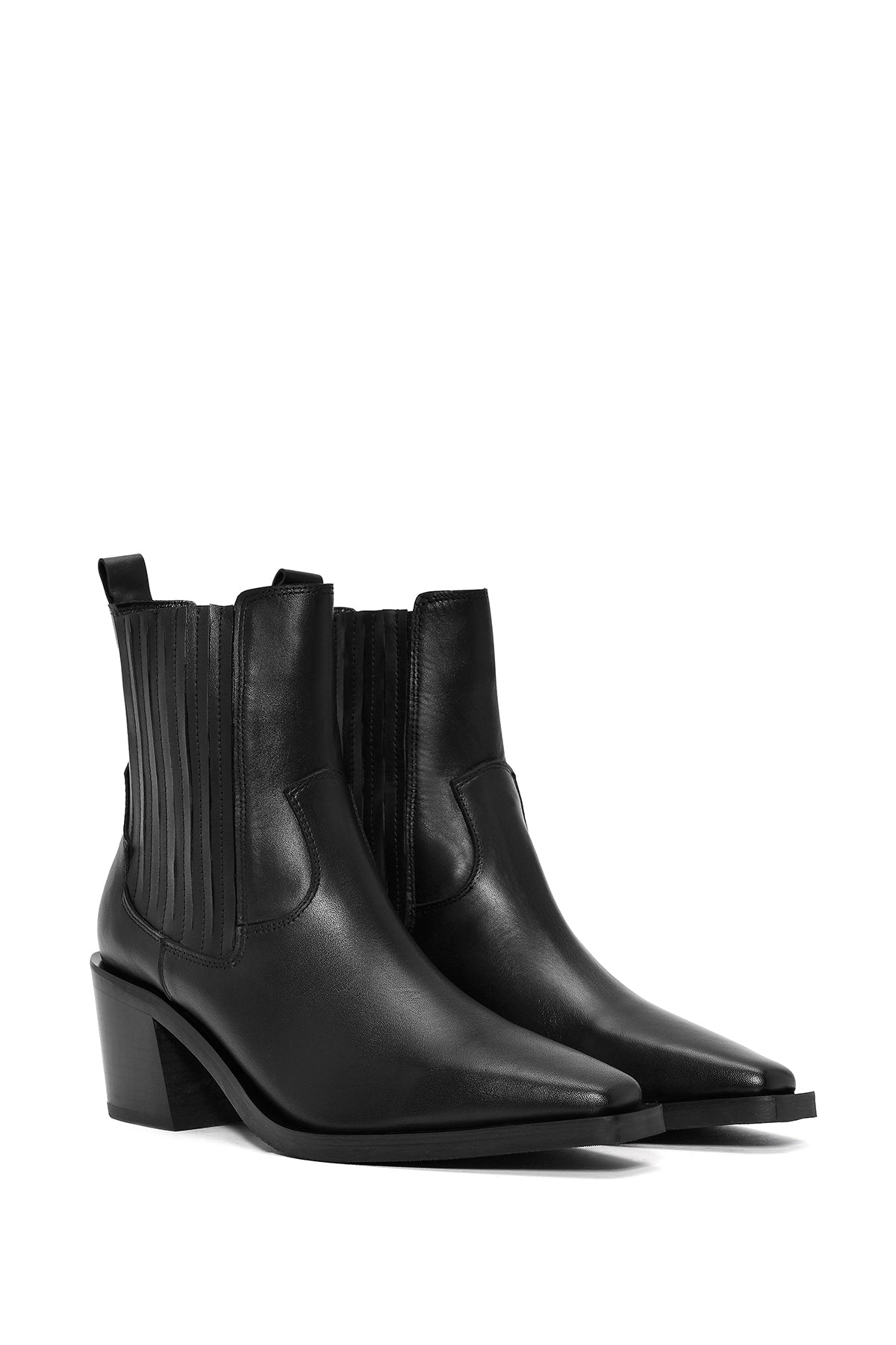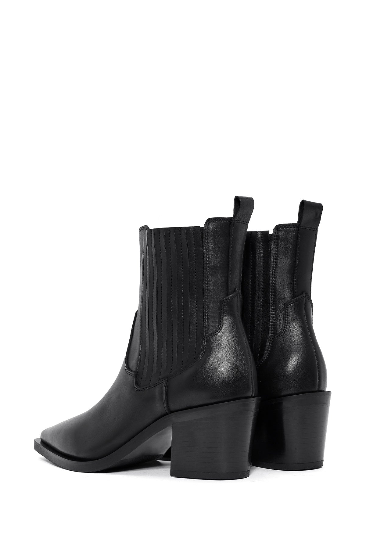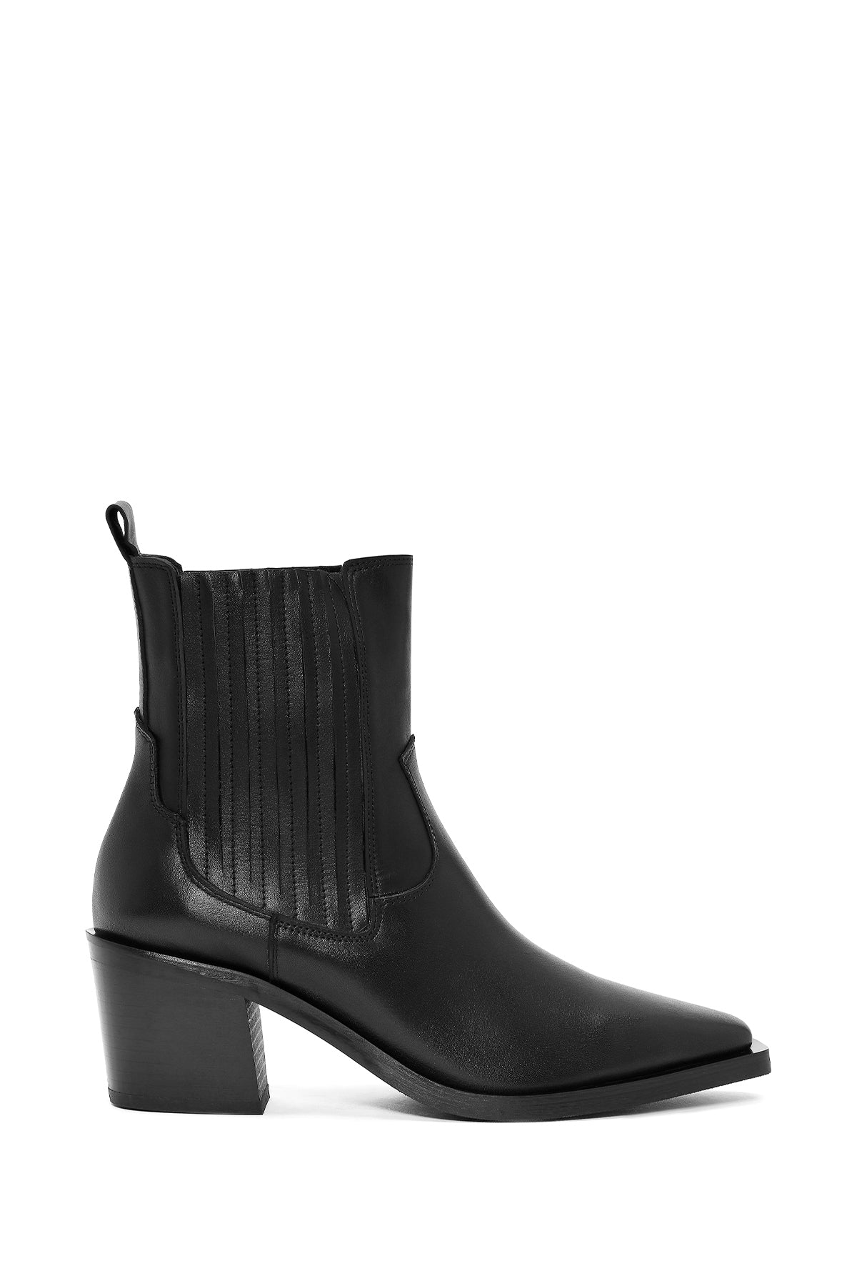 Kadın Siyah Kalın Topuklu Deri Kovboy Bot