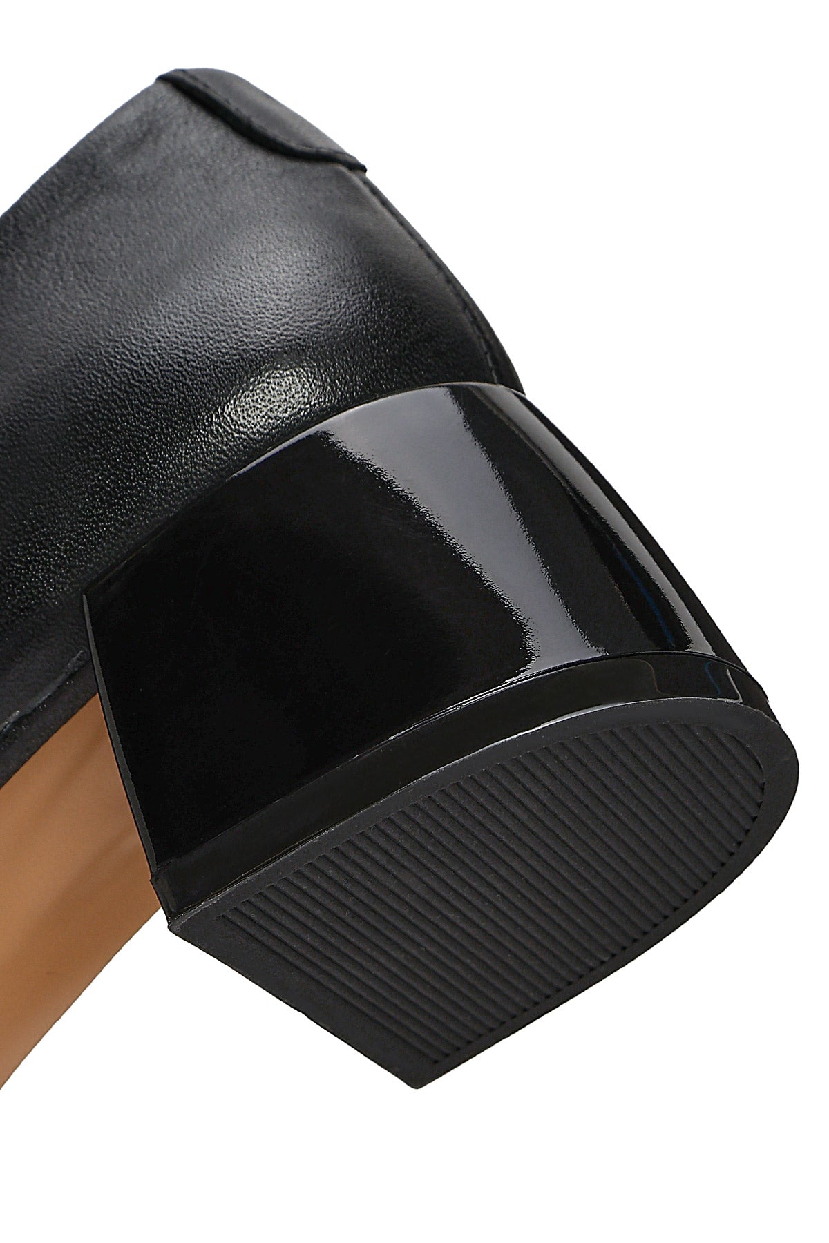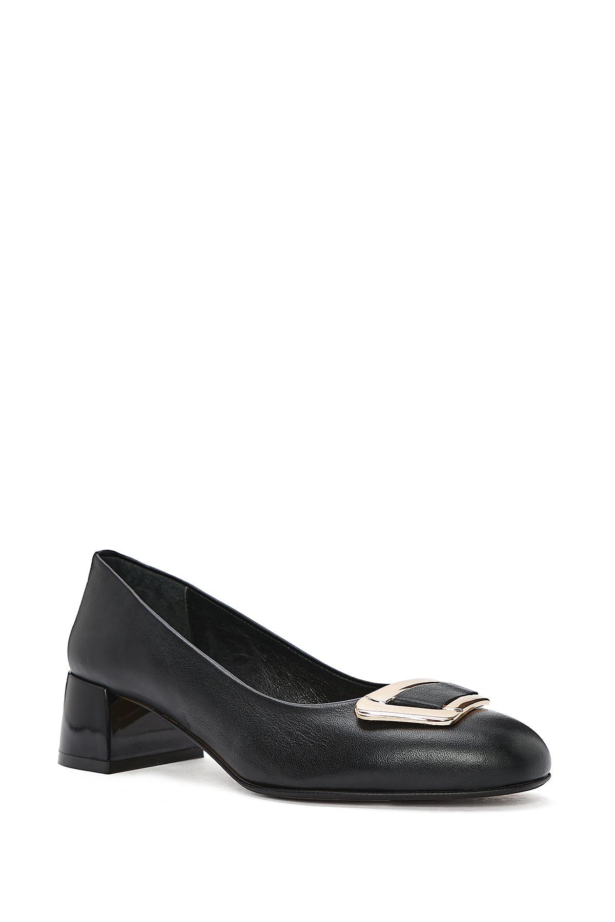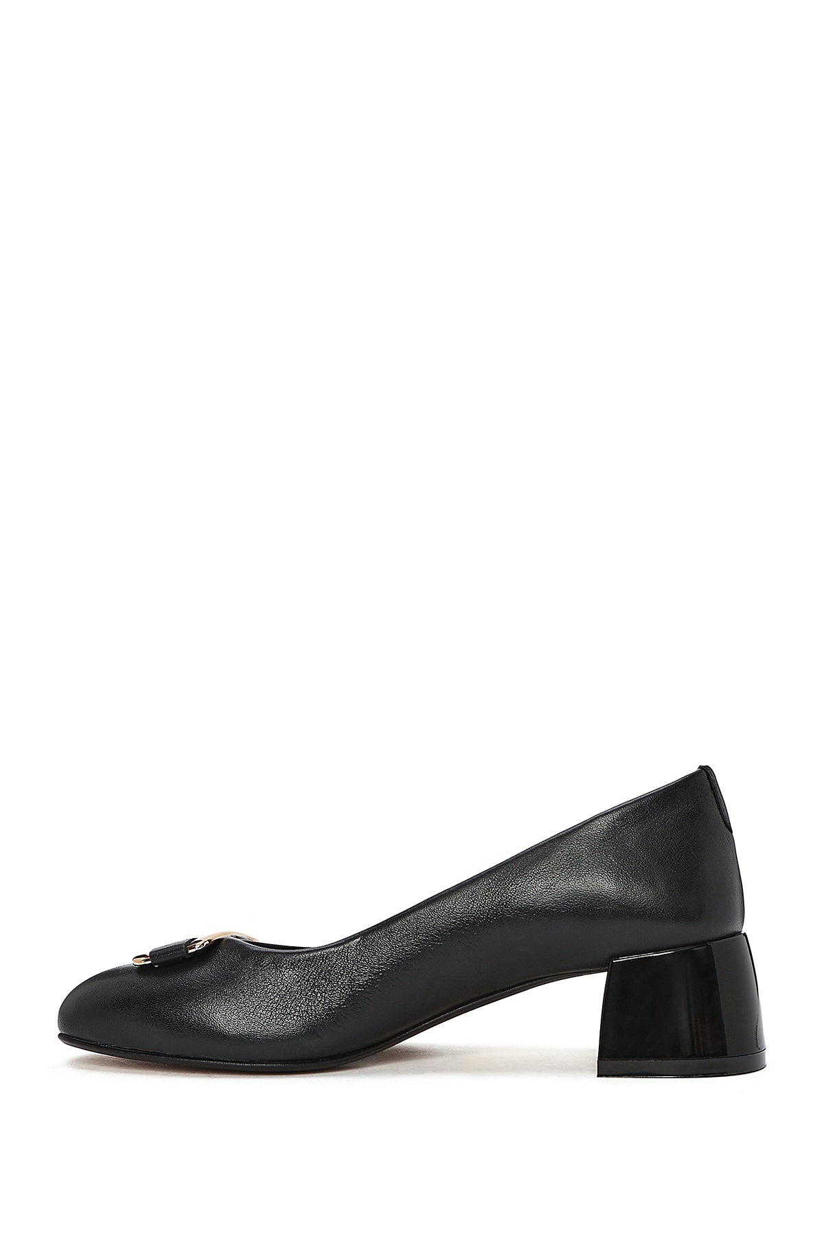 Kadın Siyah Kısa Kalın Topuklu Deri Ayakkabı