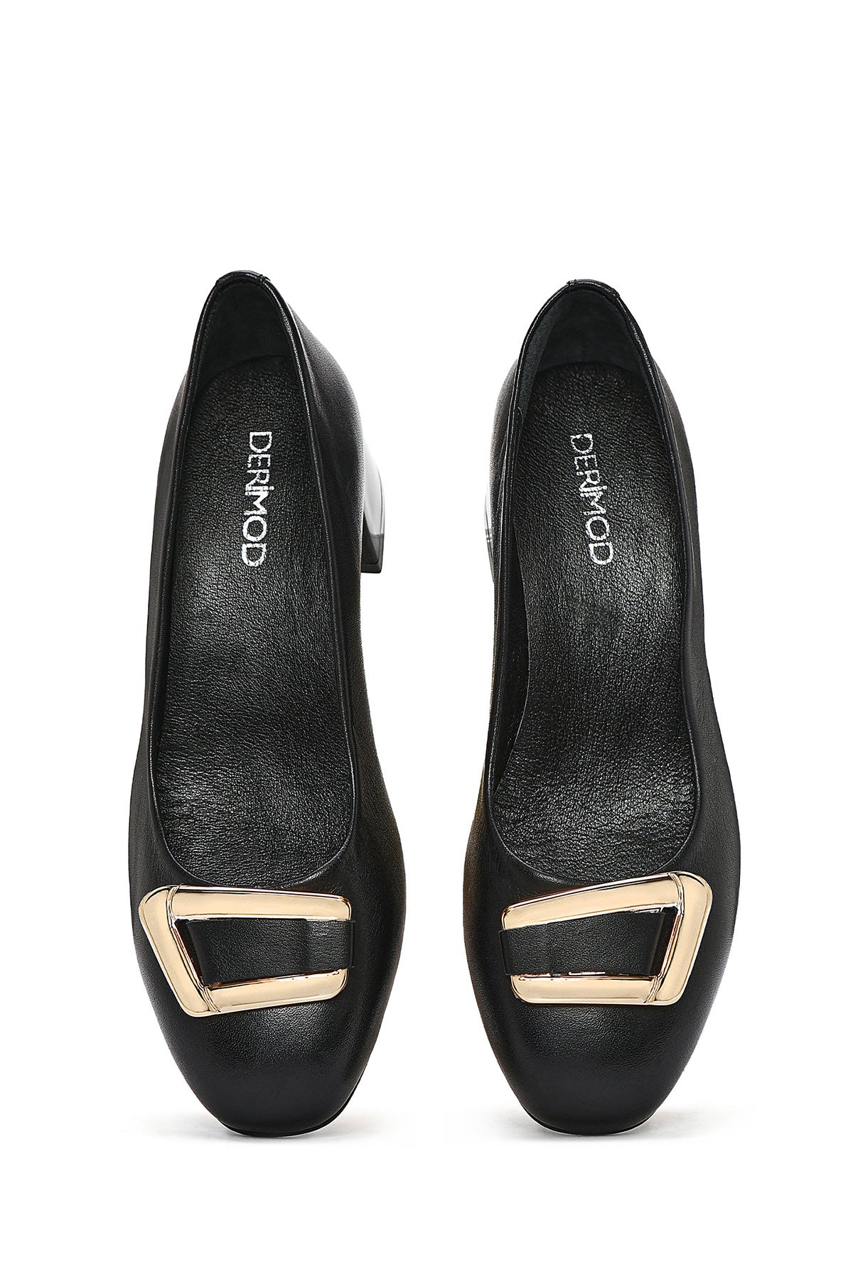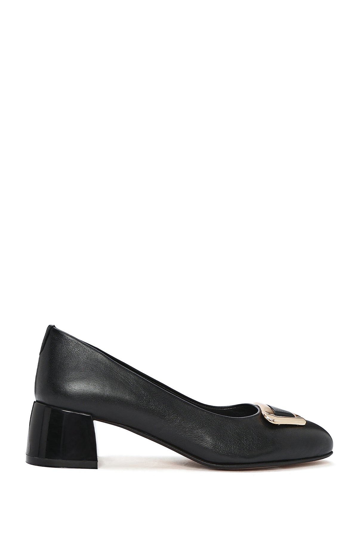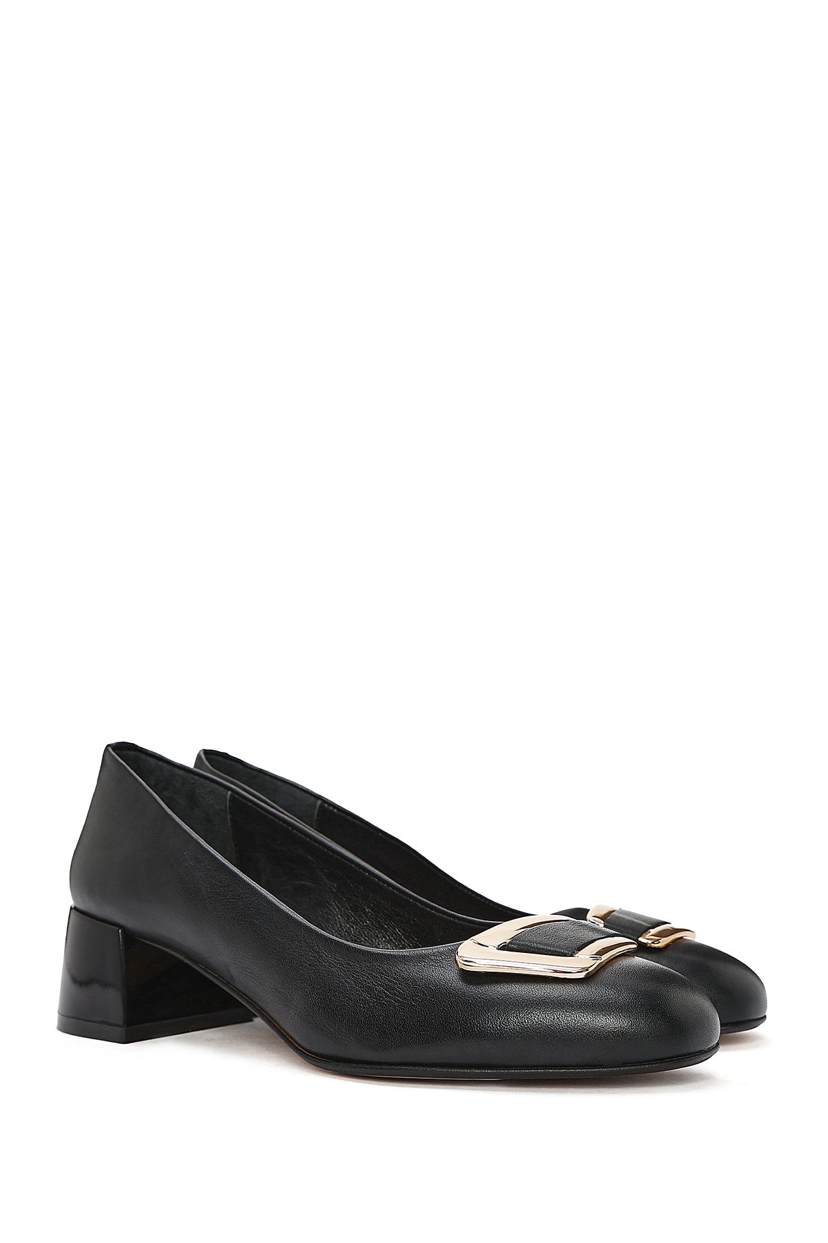 Kadın Siyah Kısa Kalın Topuklu Deri Ayakkabı