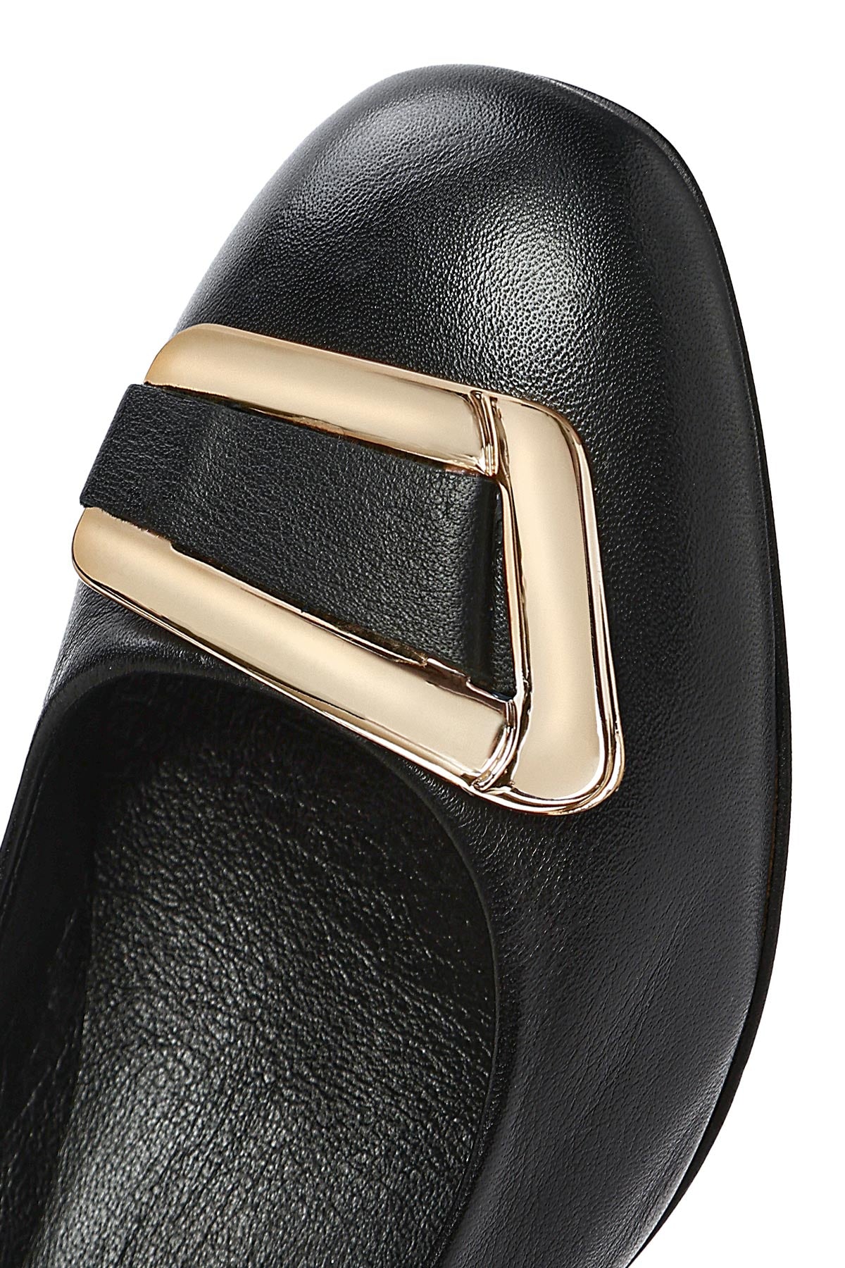 کفش زنانه چرم مشکی پاشنهکوتاه ضخیم دری مد