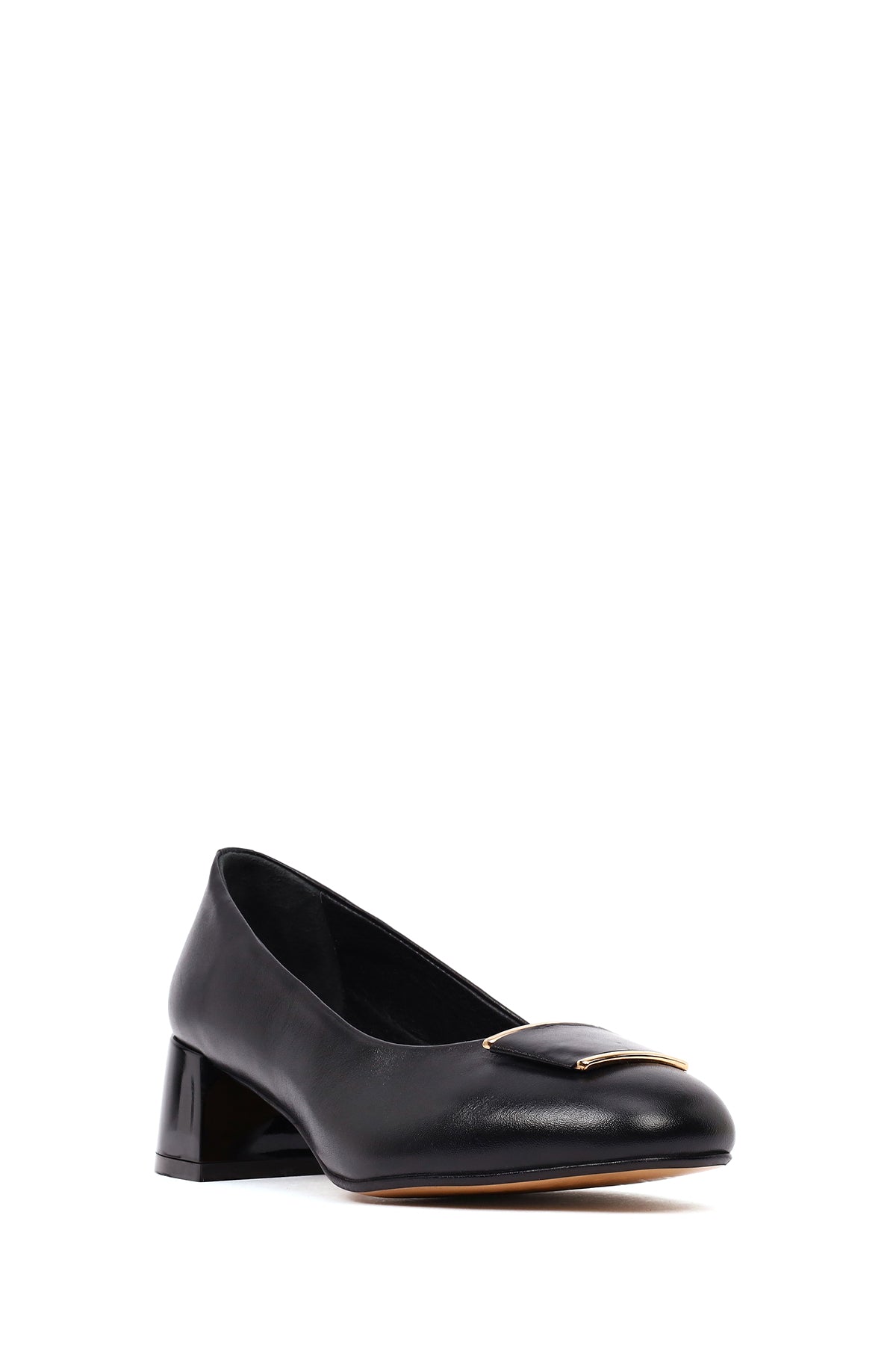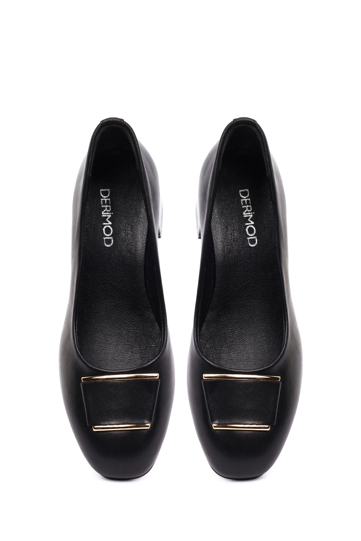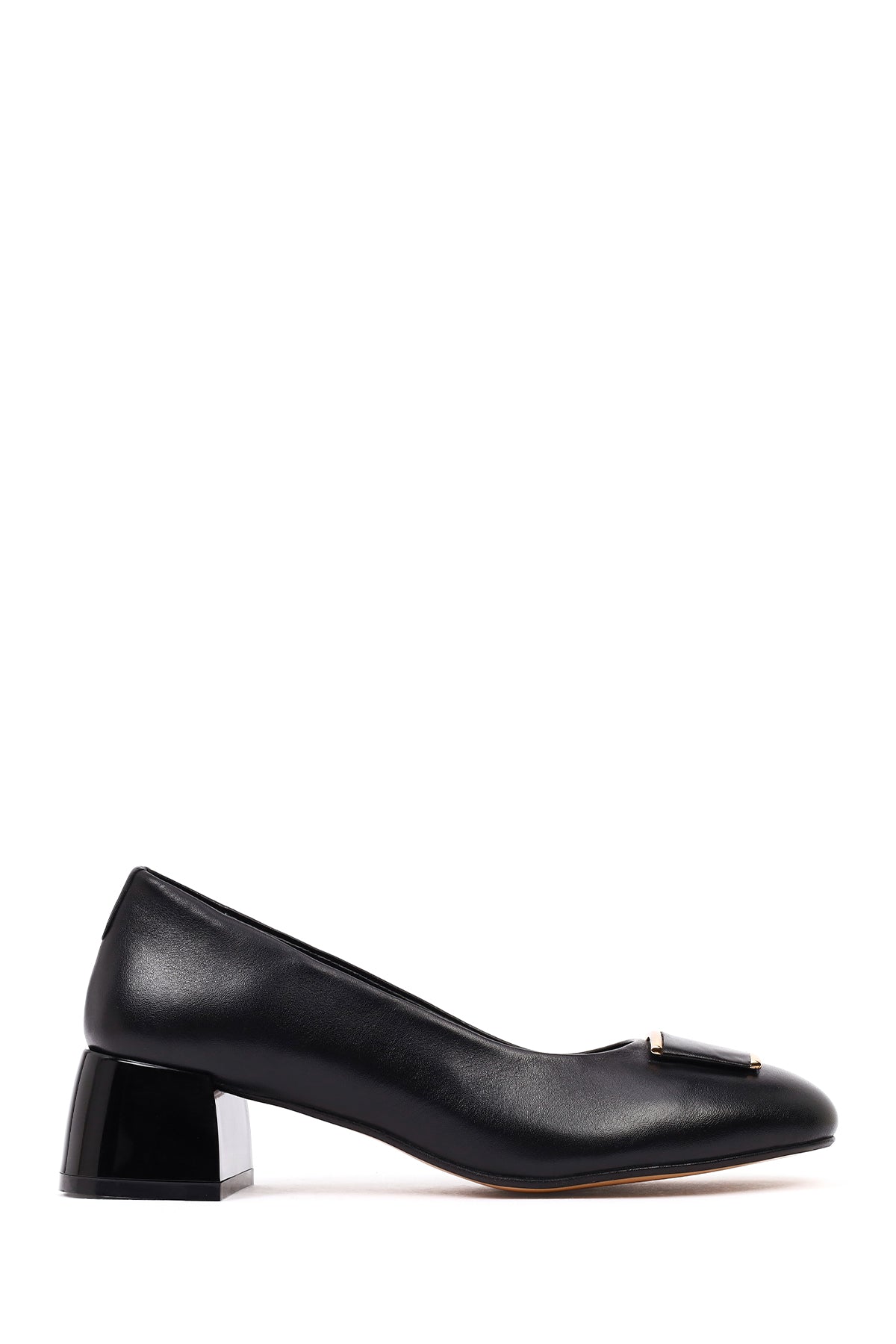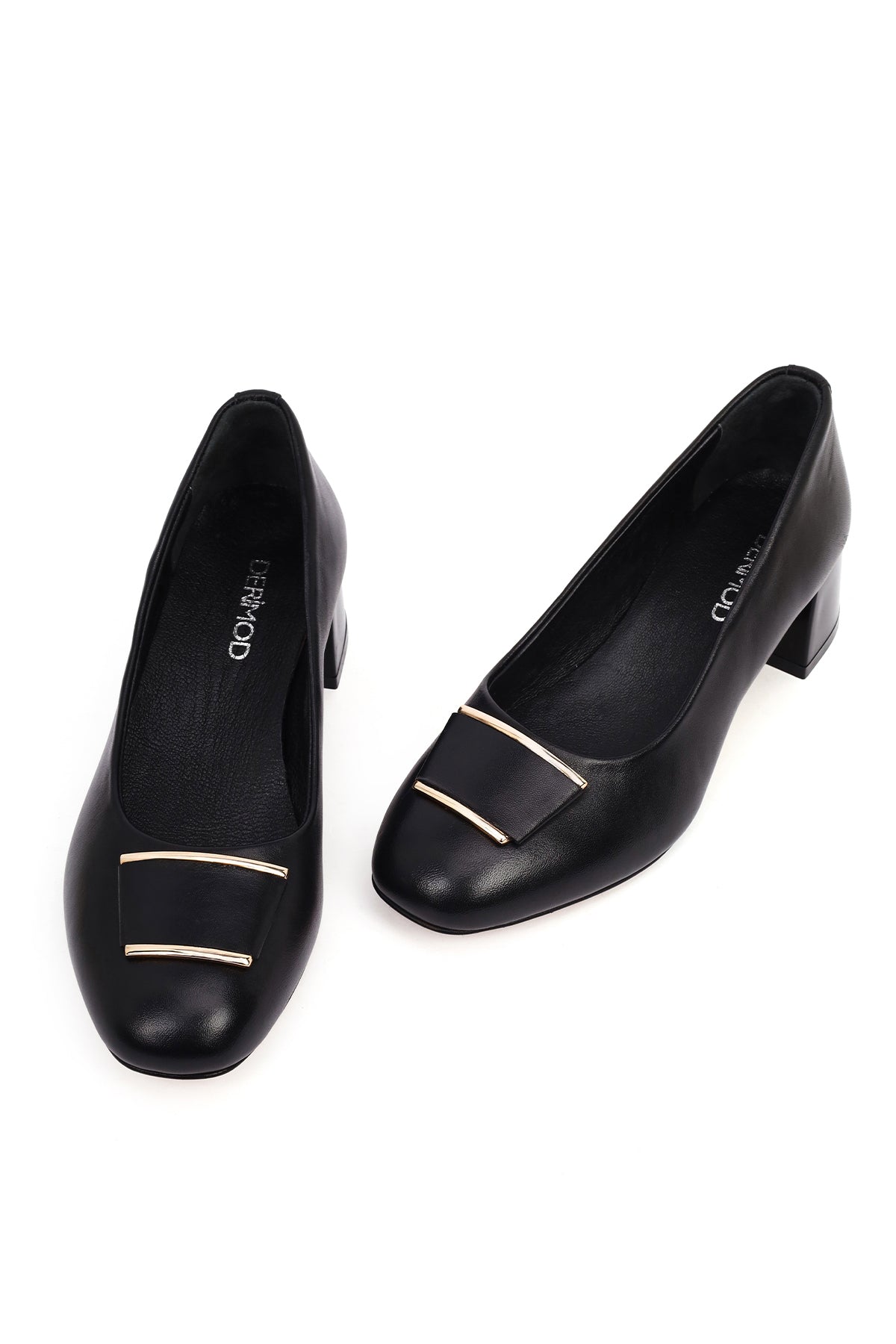 Kadın Siyah Kısa Kalın Topuklu Deri Topuklu Ayakkabı