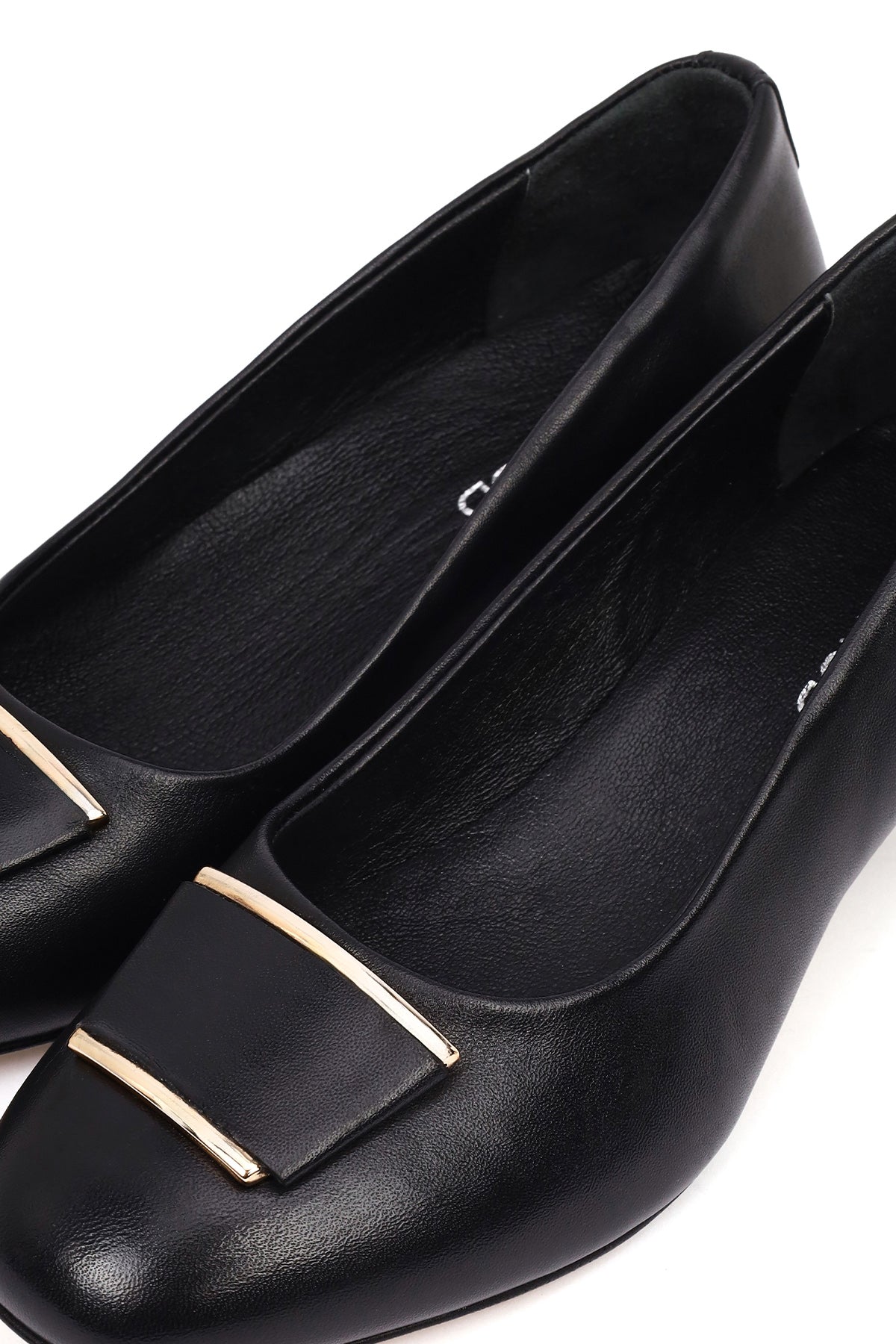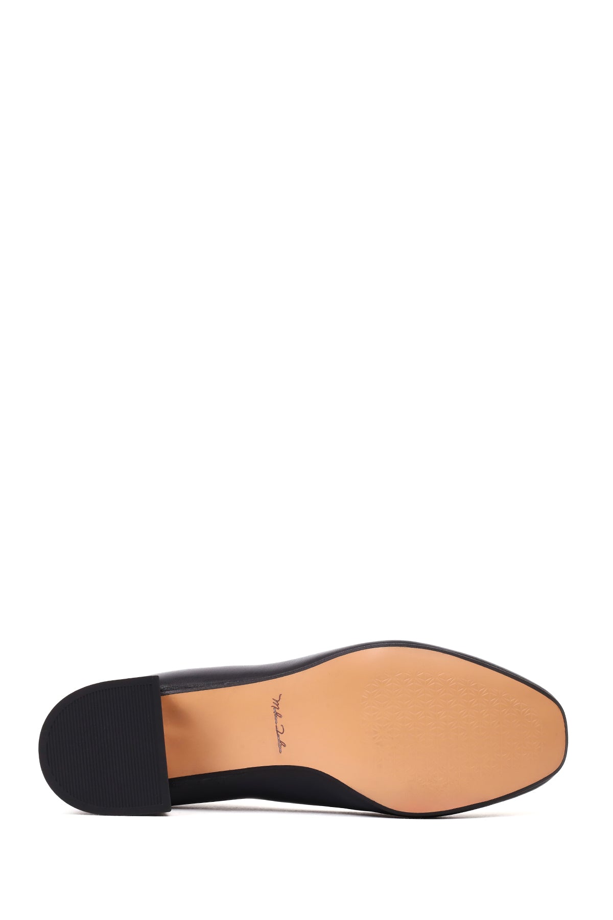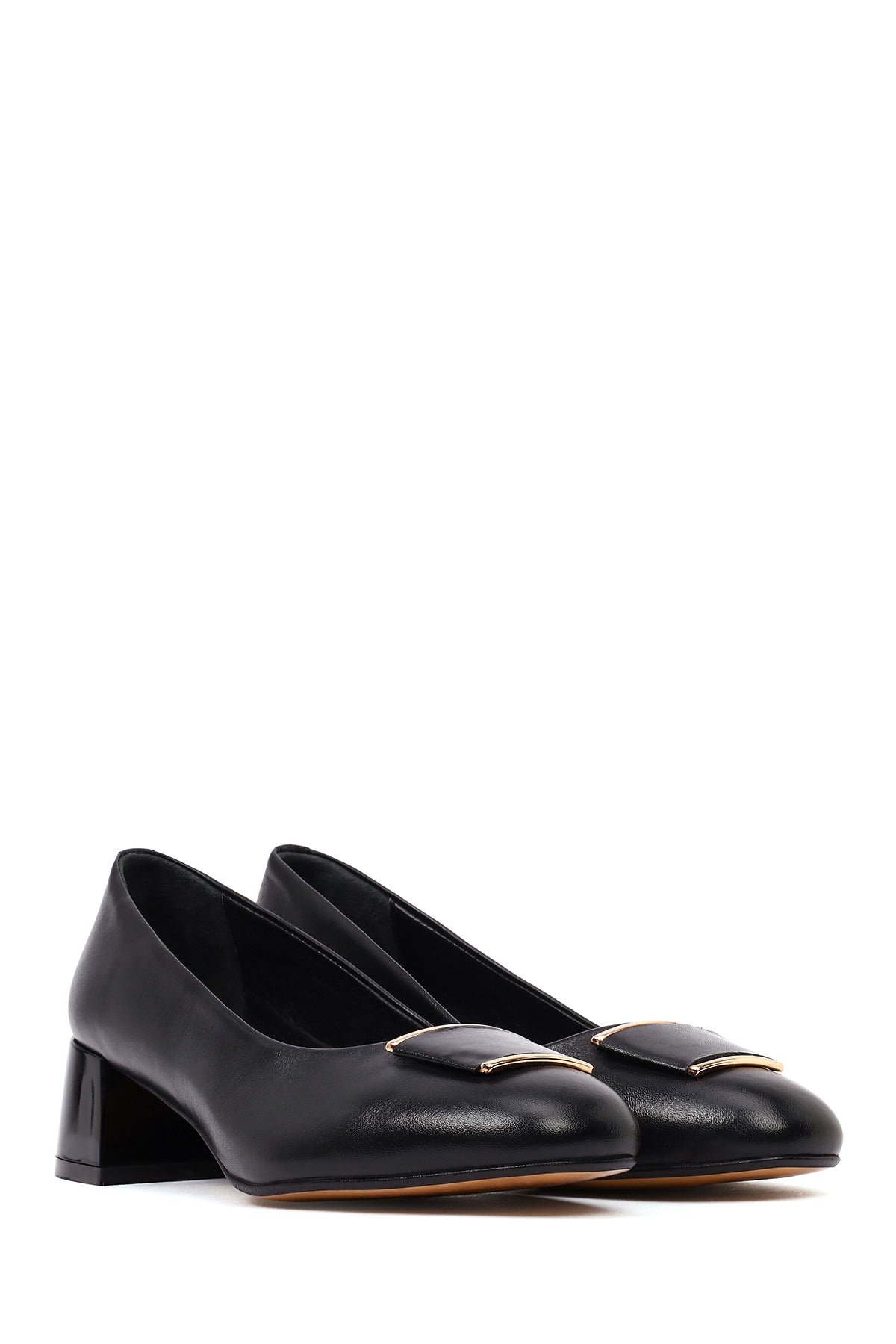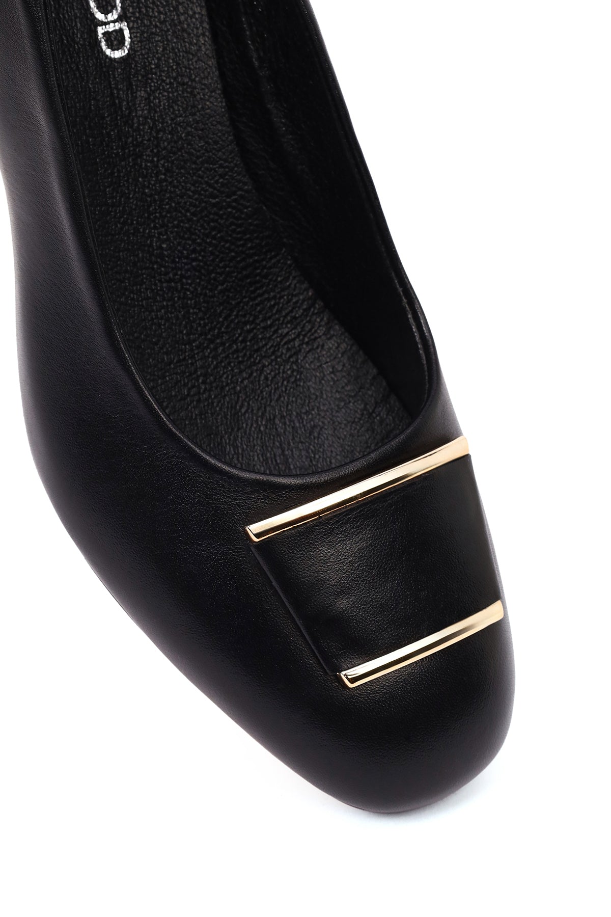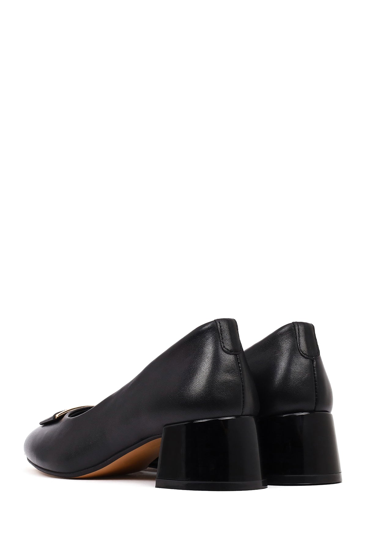 Kadın Siyah Kısa Kalın Topuklu Deri Topuklu Ayakkabı