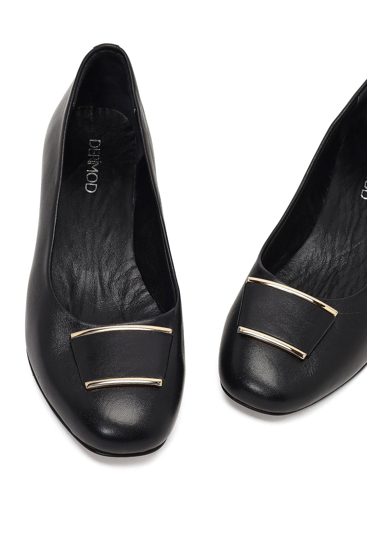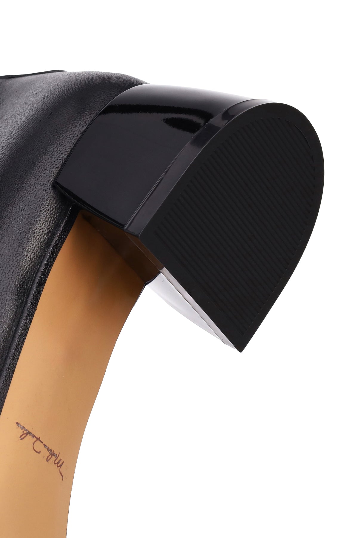کفش زنانه چرم مشکی پاشنهکوتاه ضخیم دری مد