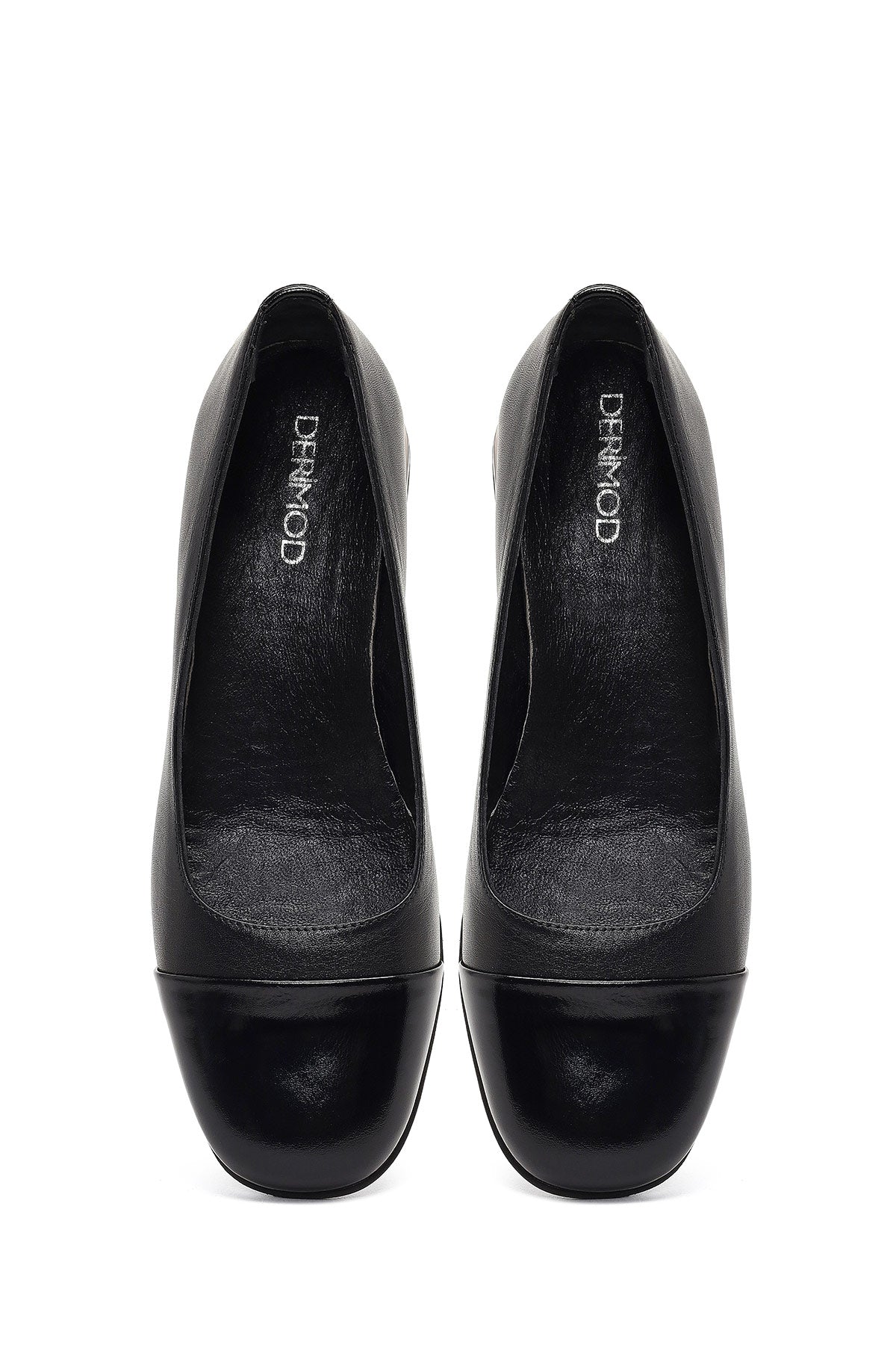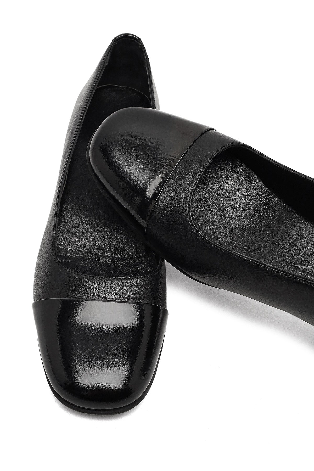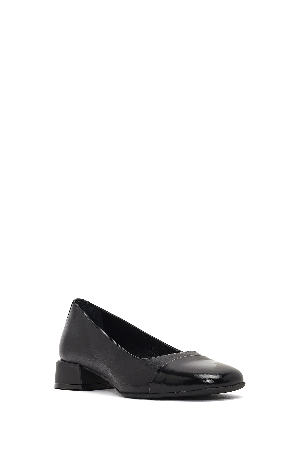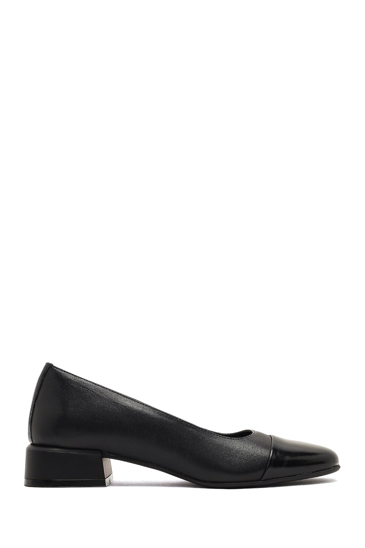 Kadın Siyah Kısa Kalın Topuklu Deri Ayakkabı
