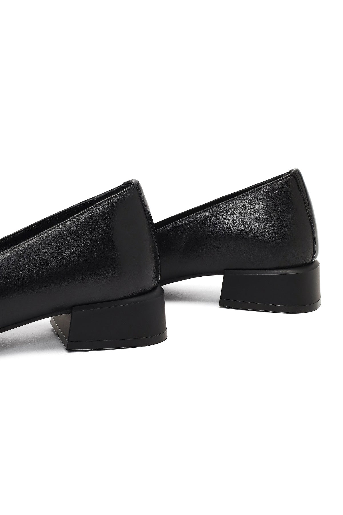 کفش زنانه چرم مشکی پاشنهکوتاه ضخیم دری مد