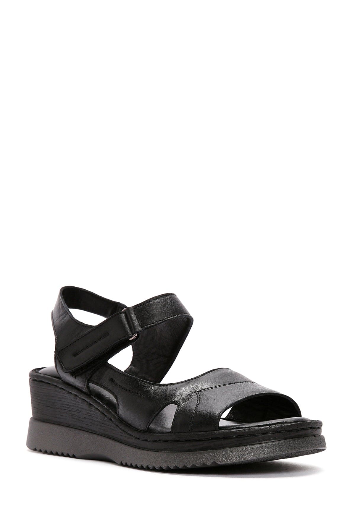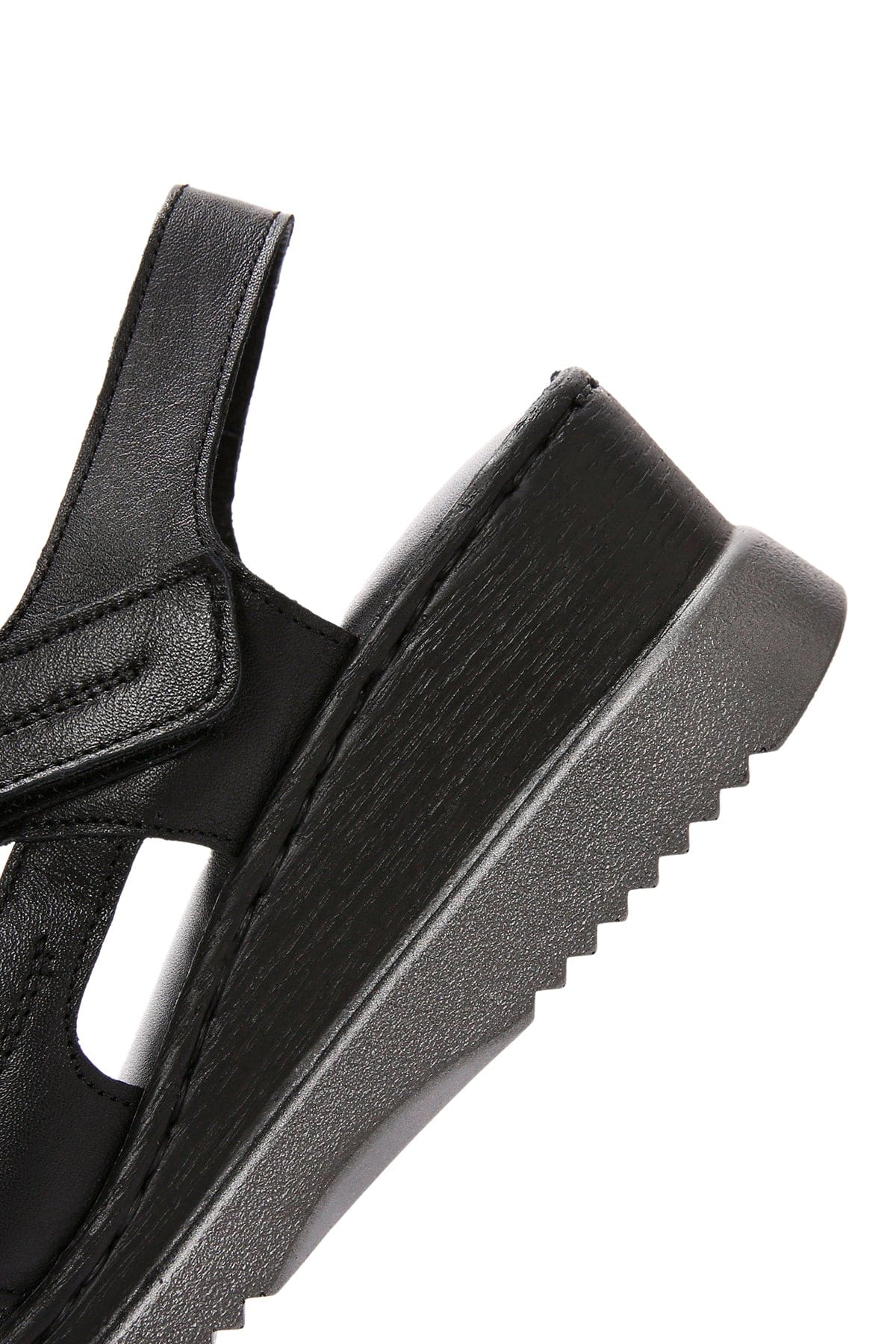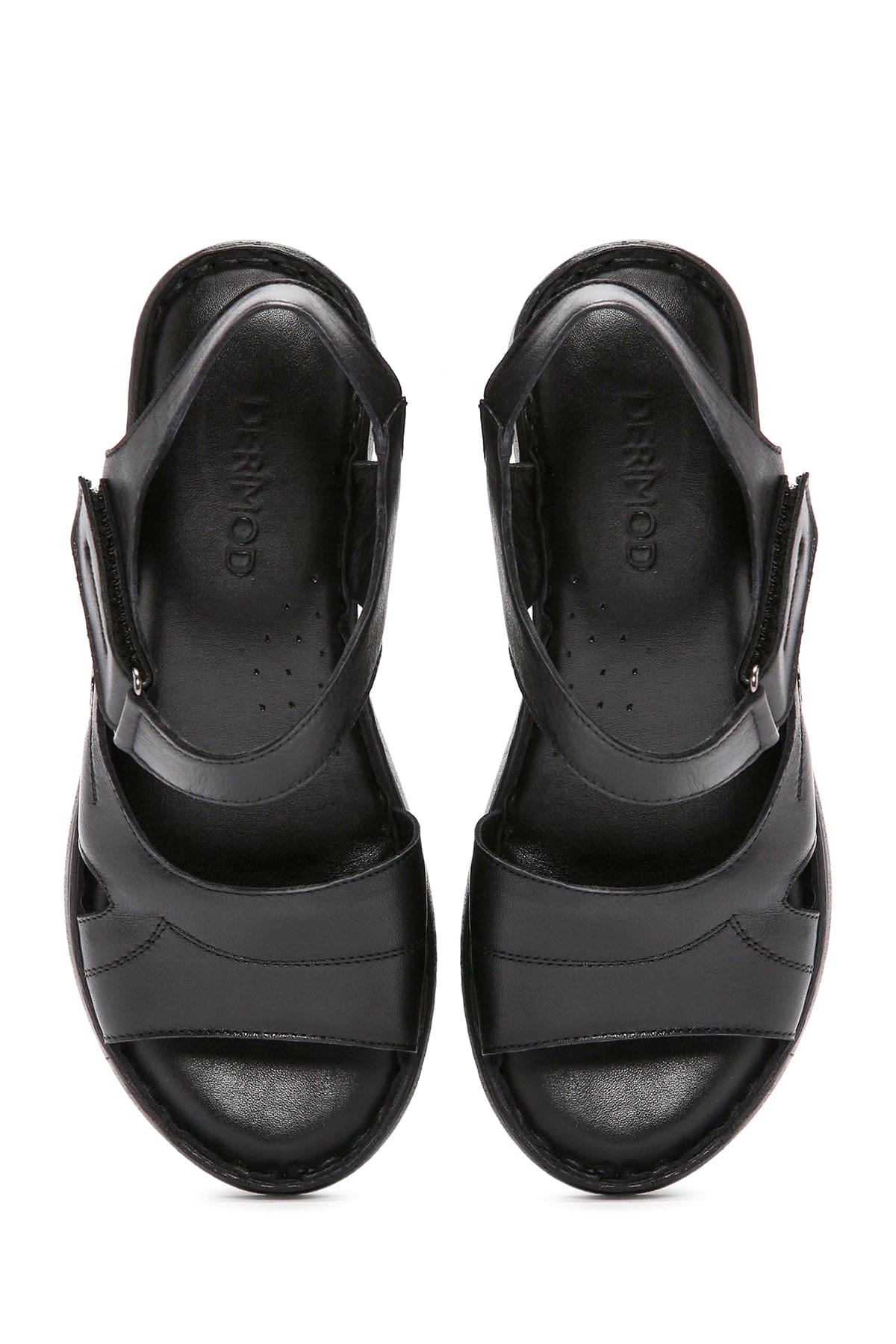 Kadın Siyah Kalın Tabanlı Bilekten Bantlı Deri Comfort Sandalet