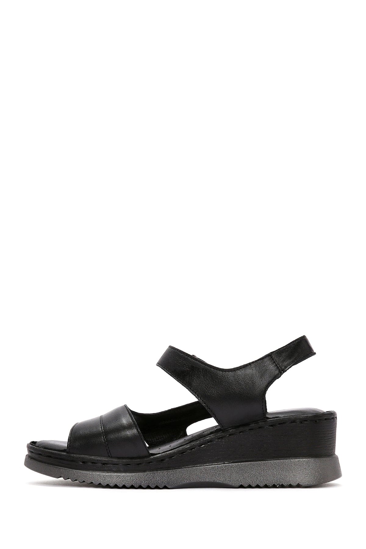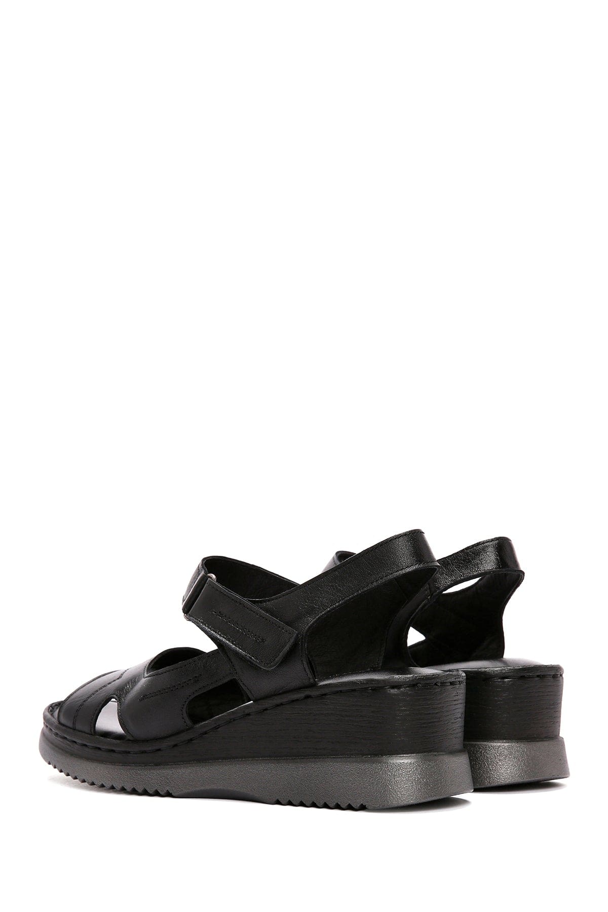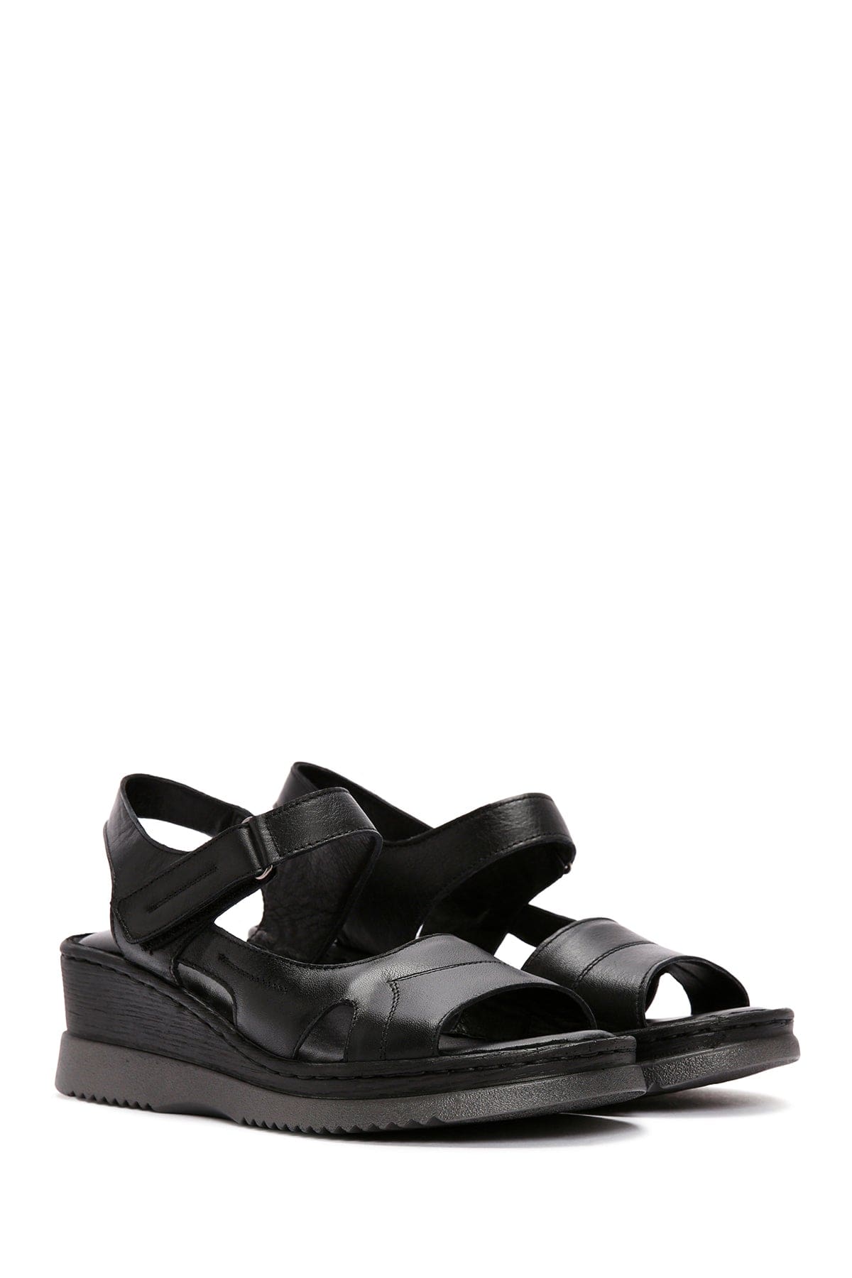 Kadın Siyah Kalın Tabanlı Bilekten Bantlı Deri Comfort Sandalet