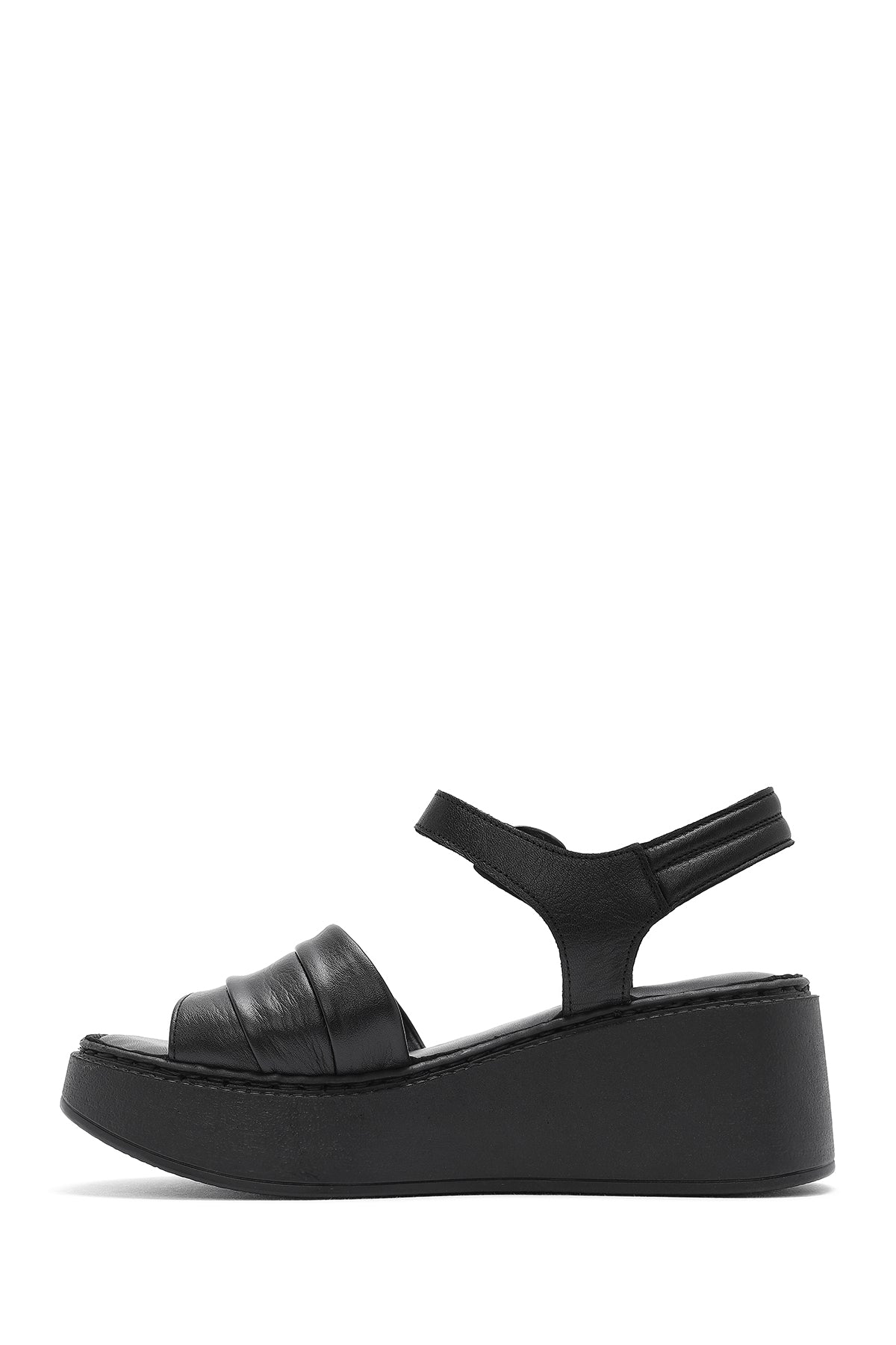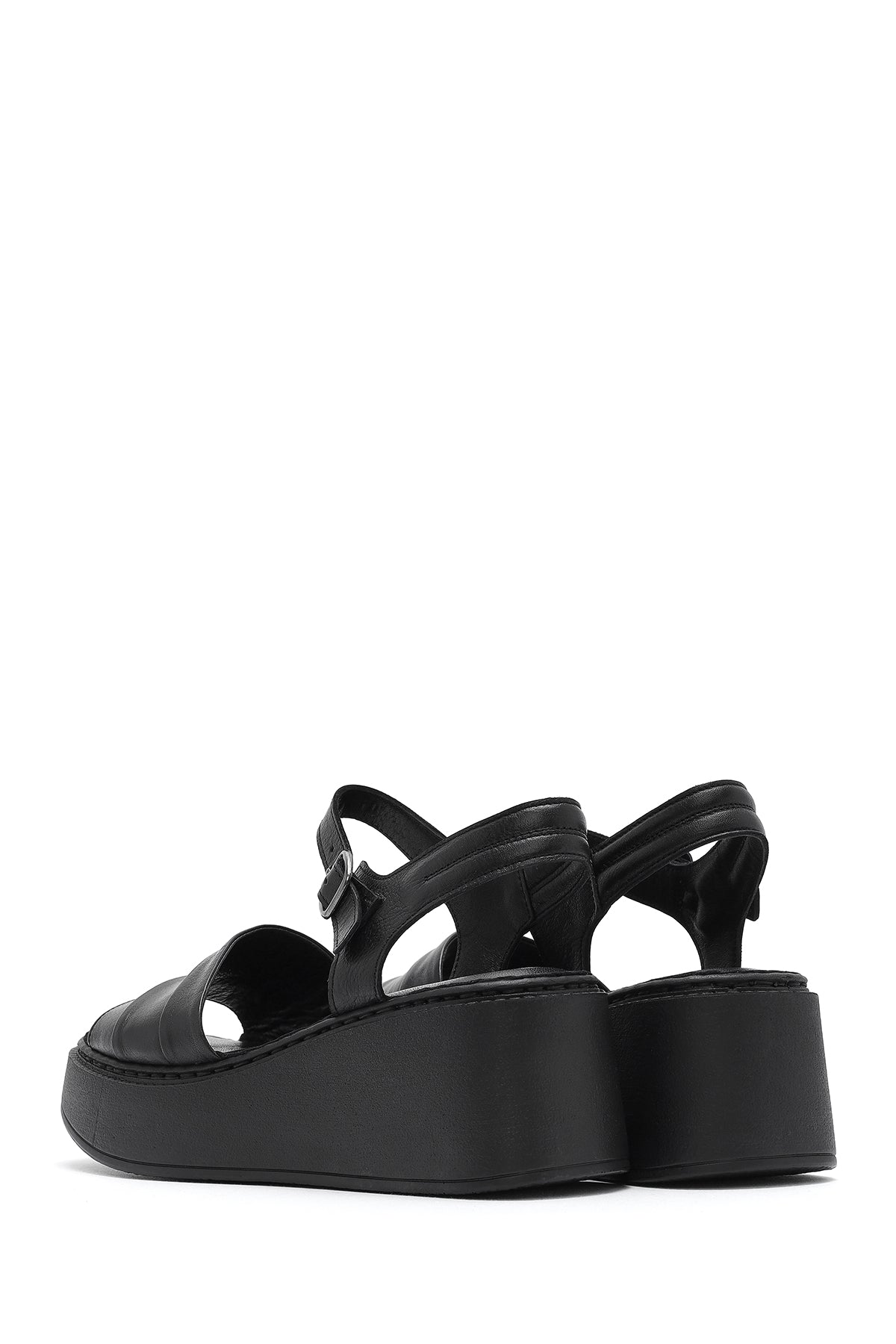 Kadın Siyah Kalın Tabanlı Deri Comfort Sandalet