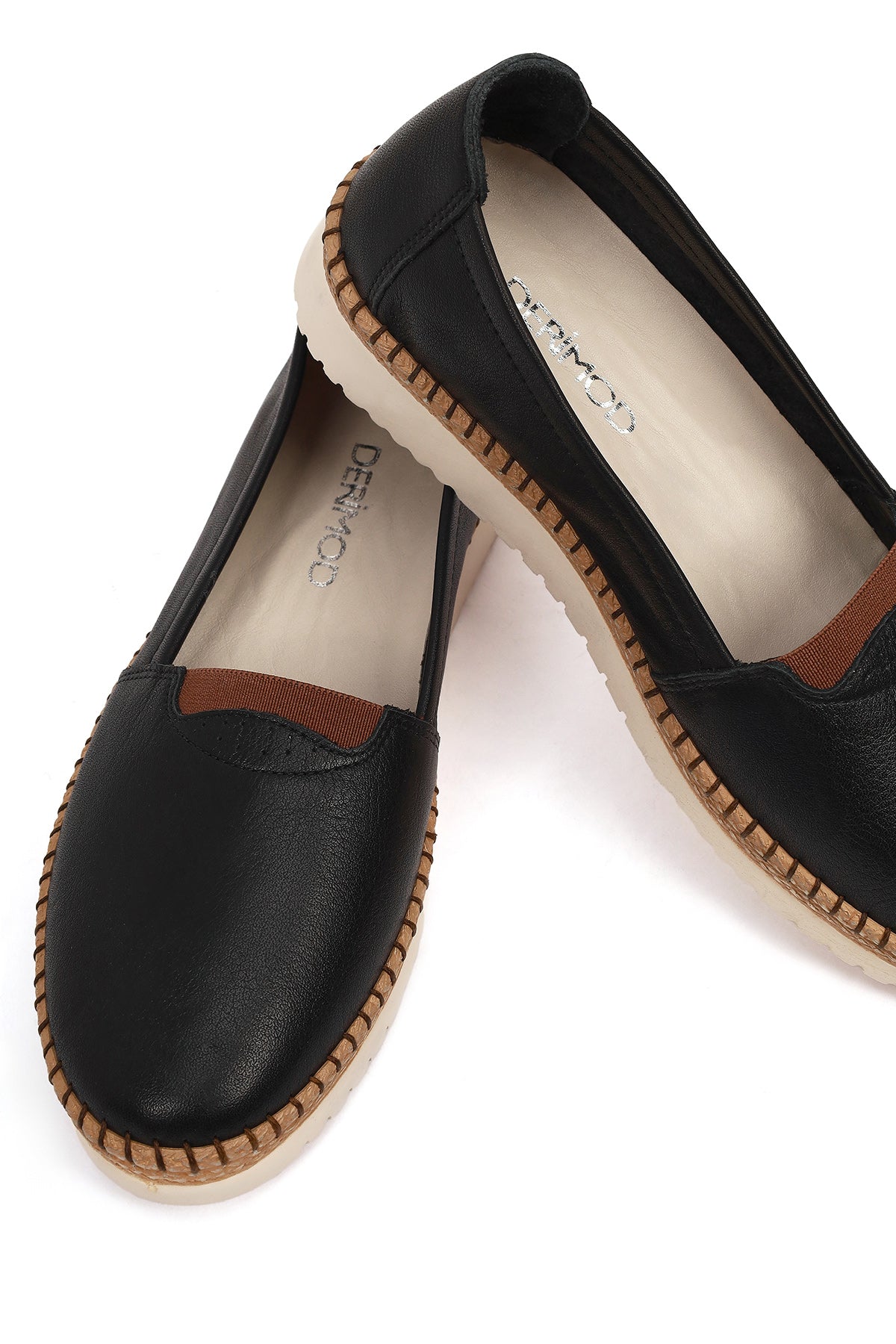 کفش زنانه چرم مشکی لژدار راحتی دری مد